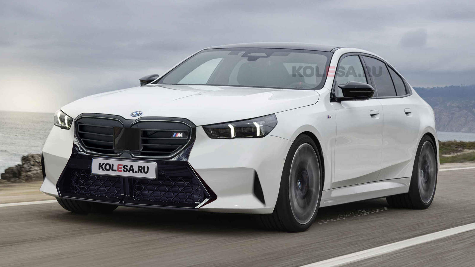 The grille is adapted from the i5 M60 as BMW has already announced the upcoming crown jewel of the 5 Series lineup will have a front grille derived from the electric M Performance model. The rendering ticks the usual M boxes such as the carbon fiber roof and trunk lid spoiler, along with the quad exhaust tips, and the sporty-looking side mirror caps. Some of these goodies have now trickled down on M Performance cars, but not the wider hips.