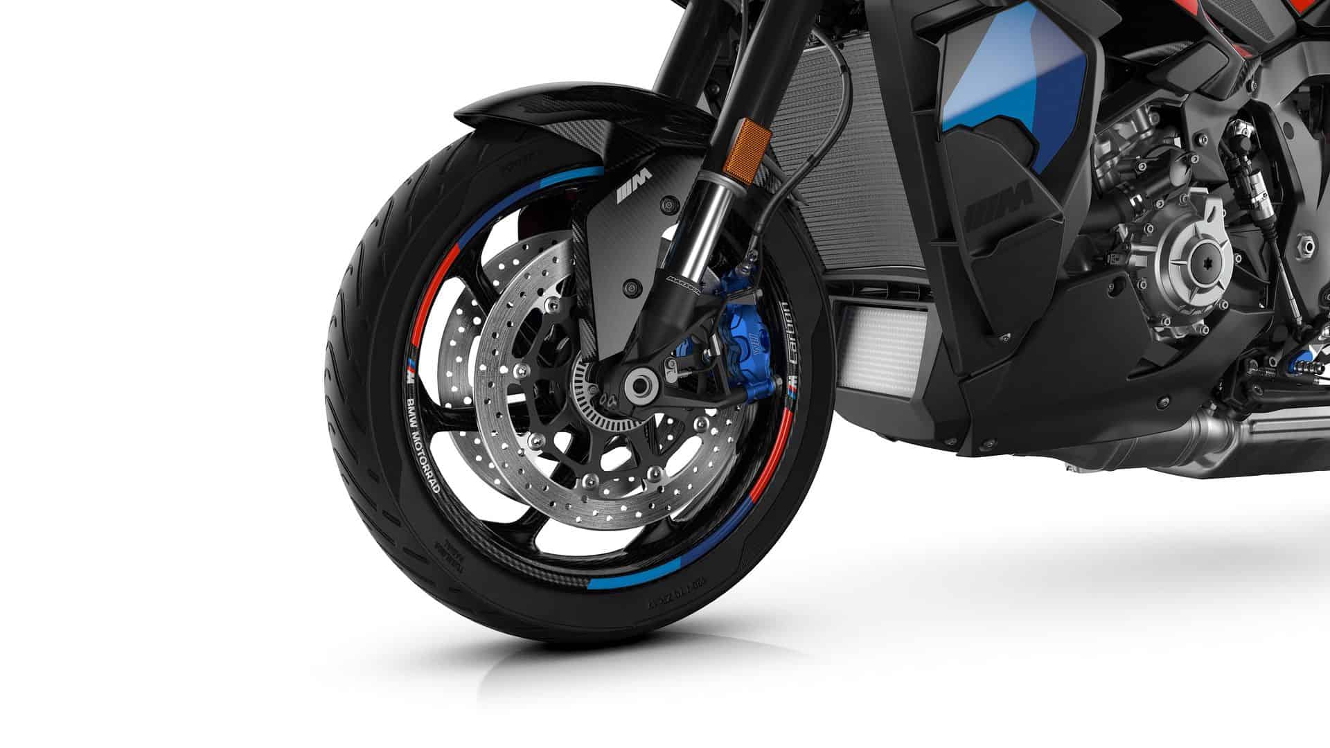 The suspension and chassis, rooted in the S 1000 XR’s aluminum bridge frame, are optimized for country roads and racetracks. Dynamic Damping Control (DDC), adjustable spring base, and a front-oriented tubular handlebar labeled with “BMW M XR” provide a sporty feel. New M brake callipers and lightweight forged aluminum wheels further enhance the bike’s performance.