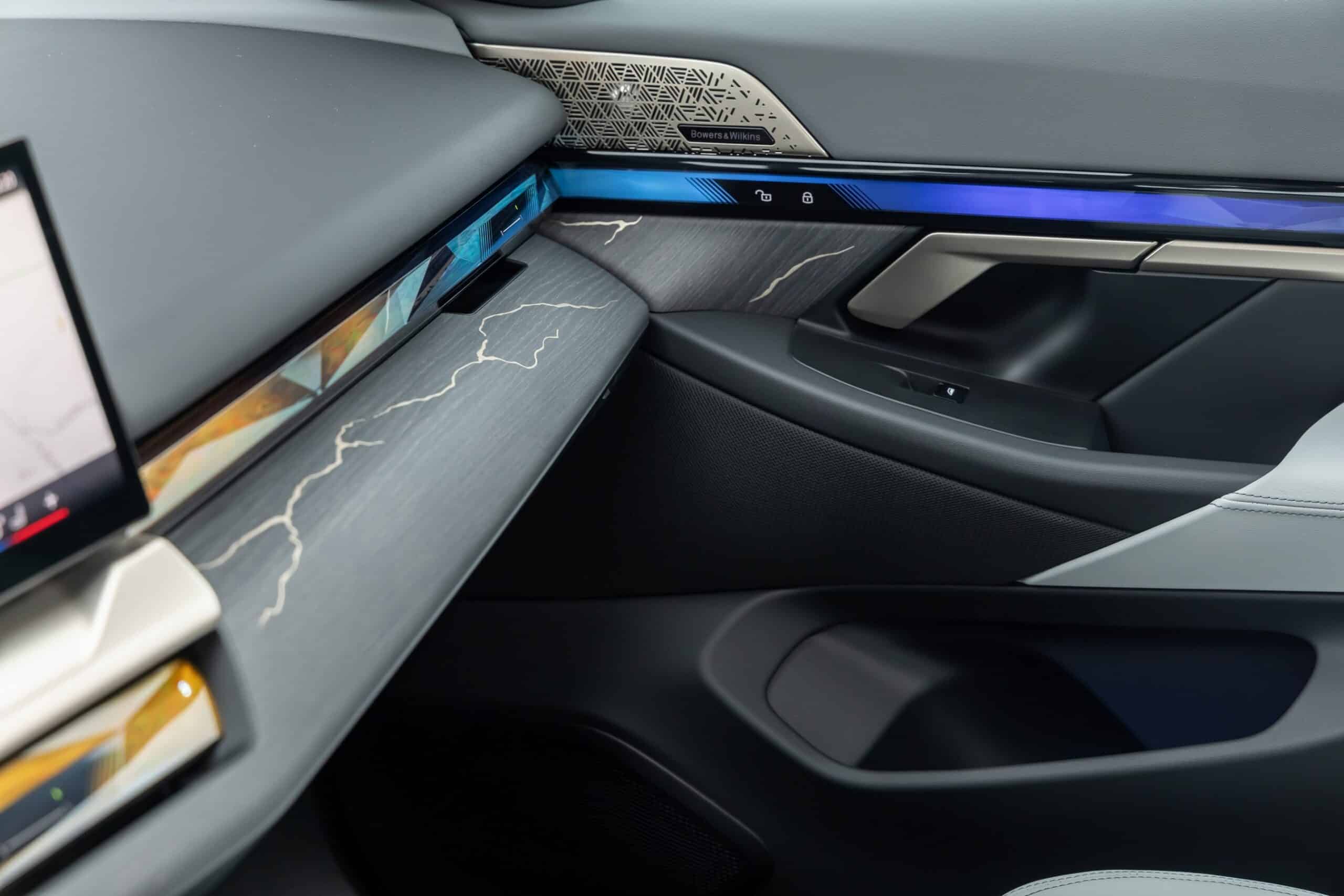 It’s a more attainable variant of the zero-emissions 5 Series since it’s not the high-performance M60. In fact, this i5 doesn’t even have the M Sport Package. That’s not to say it’s a basic car since it has been painted in Tanzanite Blue Metallic, an optional color from the Individual catalog. In addition, those 20-inch aero wheels with a two-tone finish are also going to cost you extra. Stepping inside, the Merino leather upholstery in Silverstone Gray with Atlas Grey accents is a pricey option.