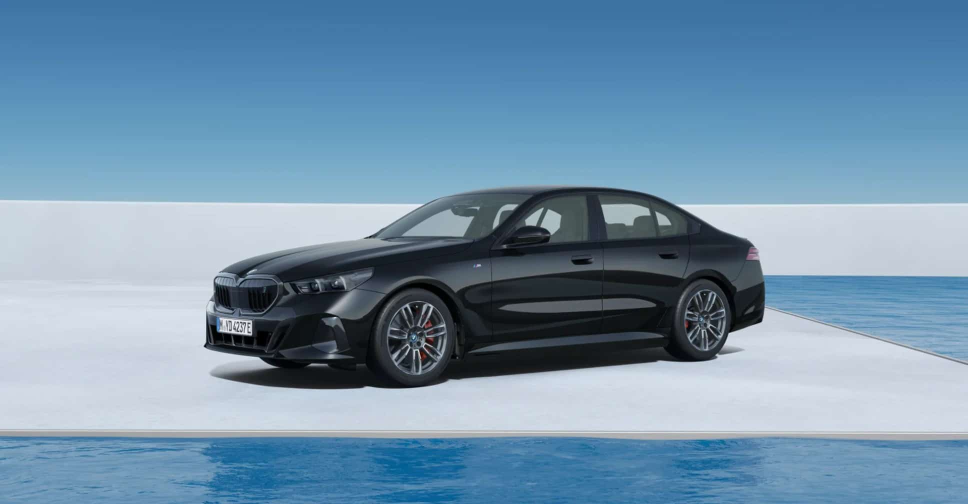 It’s a fully electric i5 variant in the lesser eDrive40 specification with rear-wheel drive and a single motor. However, this car is anything but standard since it has the optional M Sport Package Pro with the blacked-out kidney grille and a trunk lid spoiler. The front grille is illuminated (Iconic Glow in BMW’s marketing jargon) while the headlights have received the Shadowline treatment. There is an assortment of black accents, contrasted by the red brake calipers behind those 19-inch two-tone wheels.
