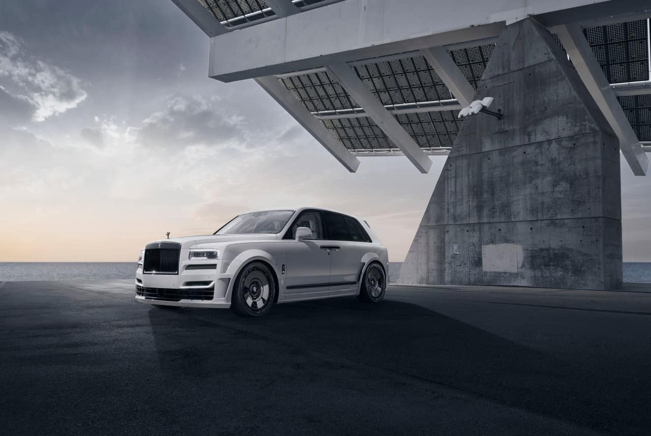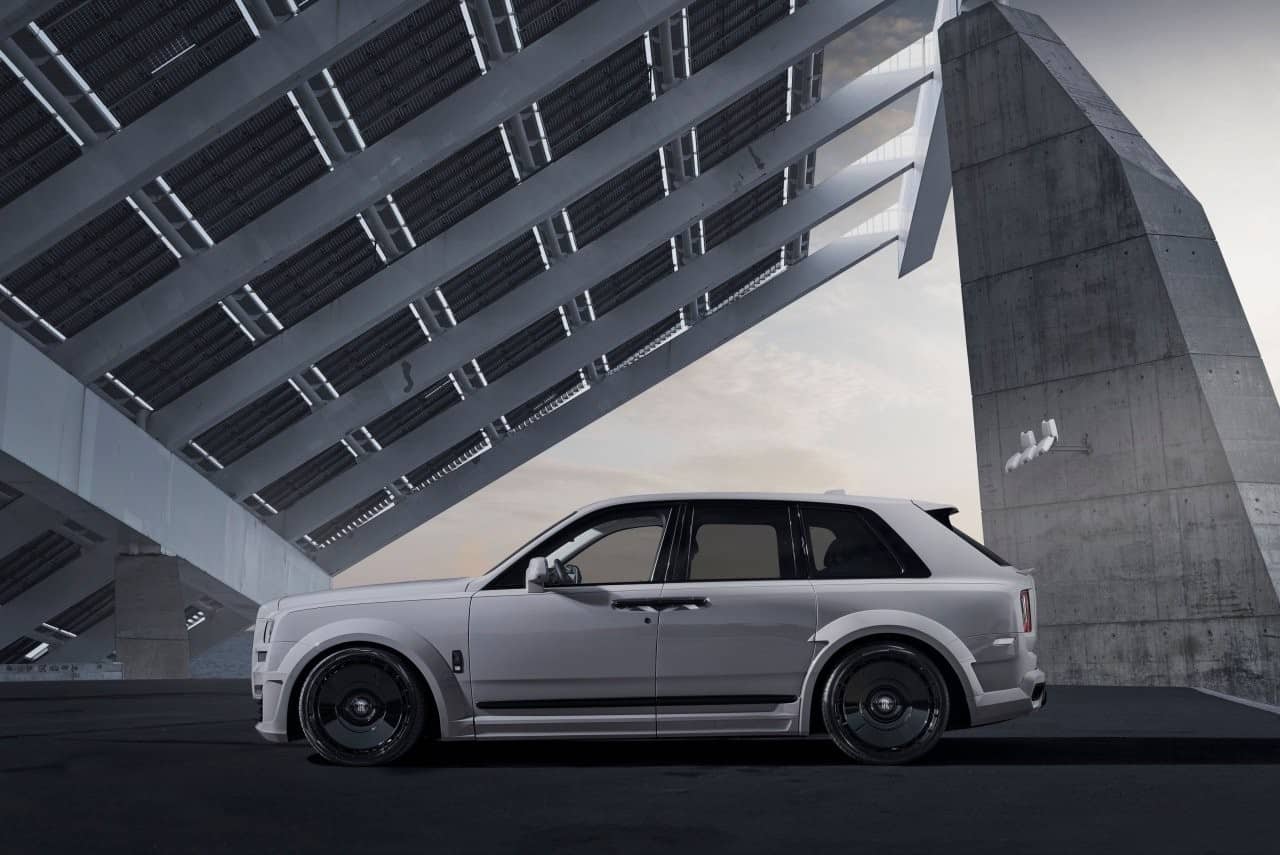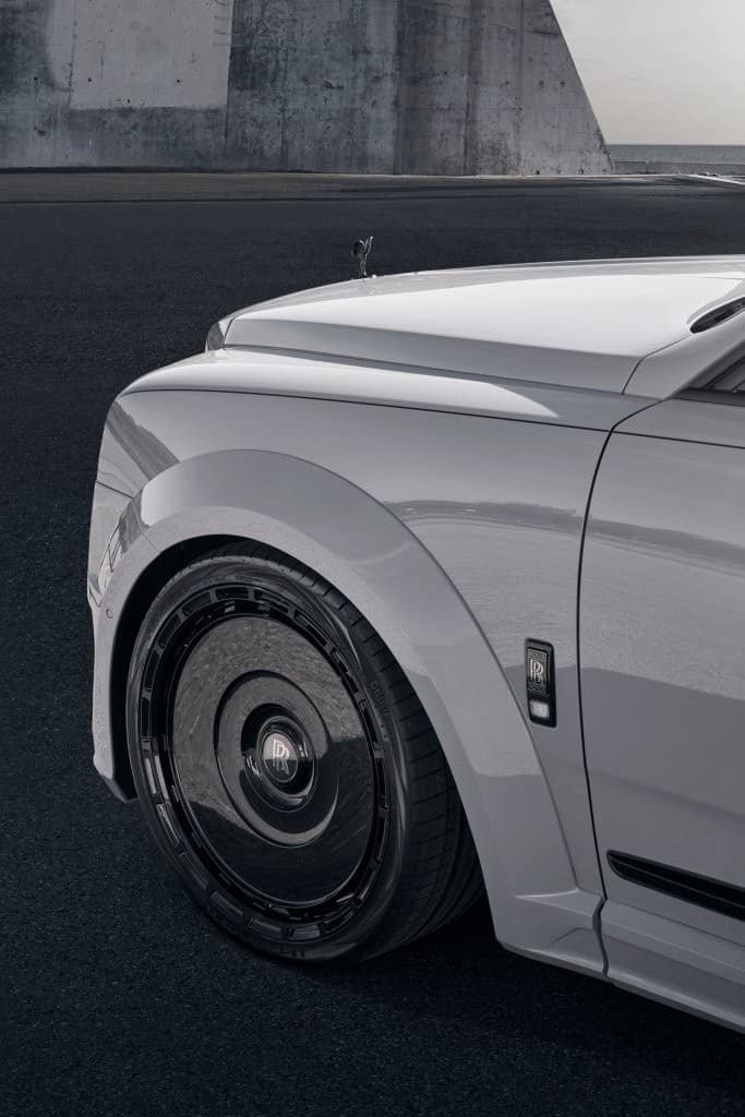 The ultra-luxury British SUV has been fitted with an “Overdose S” body kit, which seems fitting considering the Cullinan is 10 centimeters (4 inches) wider at the front and a whopping 12 cm (4.7 in) at the rear than the standard SUV. It looks even more imposing with those stately 24-inch wheels designed by Vossen specifically for this application. These king-size, disc-like alloys within the bulging fenders come wrapped in meaty 295/30 R24 tires. Spofec had to adjust the air suspension to play nice with those massive wheels and they say the Cullinan Black Badge can be lowered by as much as 40 mm (nearly 1.6 in).