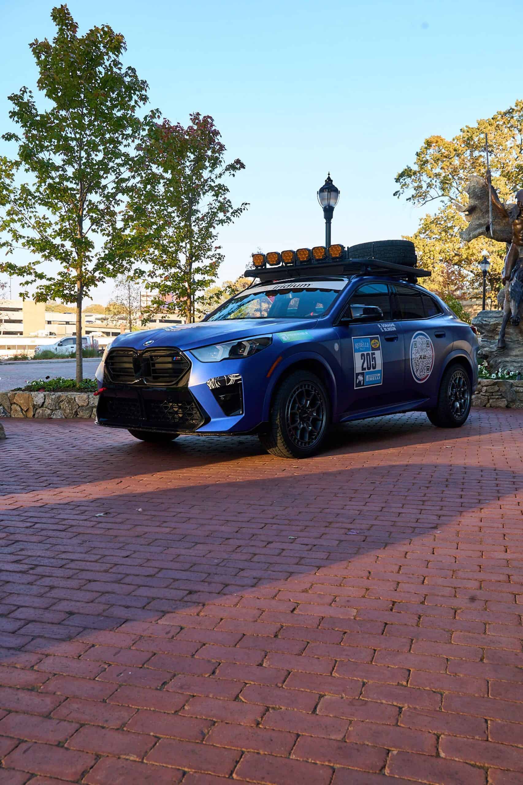 These enhancements included upgrades such as Falken Wildpeak AT Trail Tires, Rotiform ZMO-M Wheels, Morimoto Triple Row BangerBar in the front, 2Banger Pod lights in the rear, Thule Caprock roof platform, Smittybilt off-road recovery gear and accessories, BMW M Performance Parts tow straps, custom underbody protection/skid plate, custom cargo area spare tire carrier, and a TerraTrip external odometer.