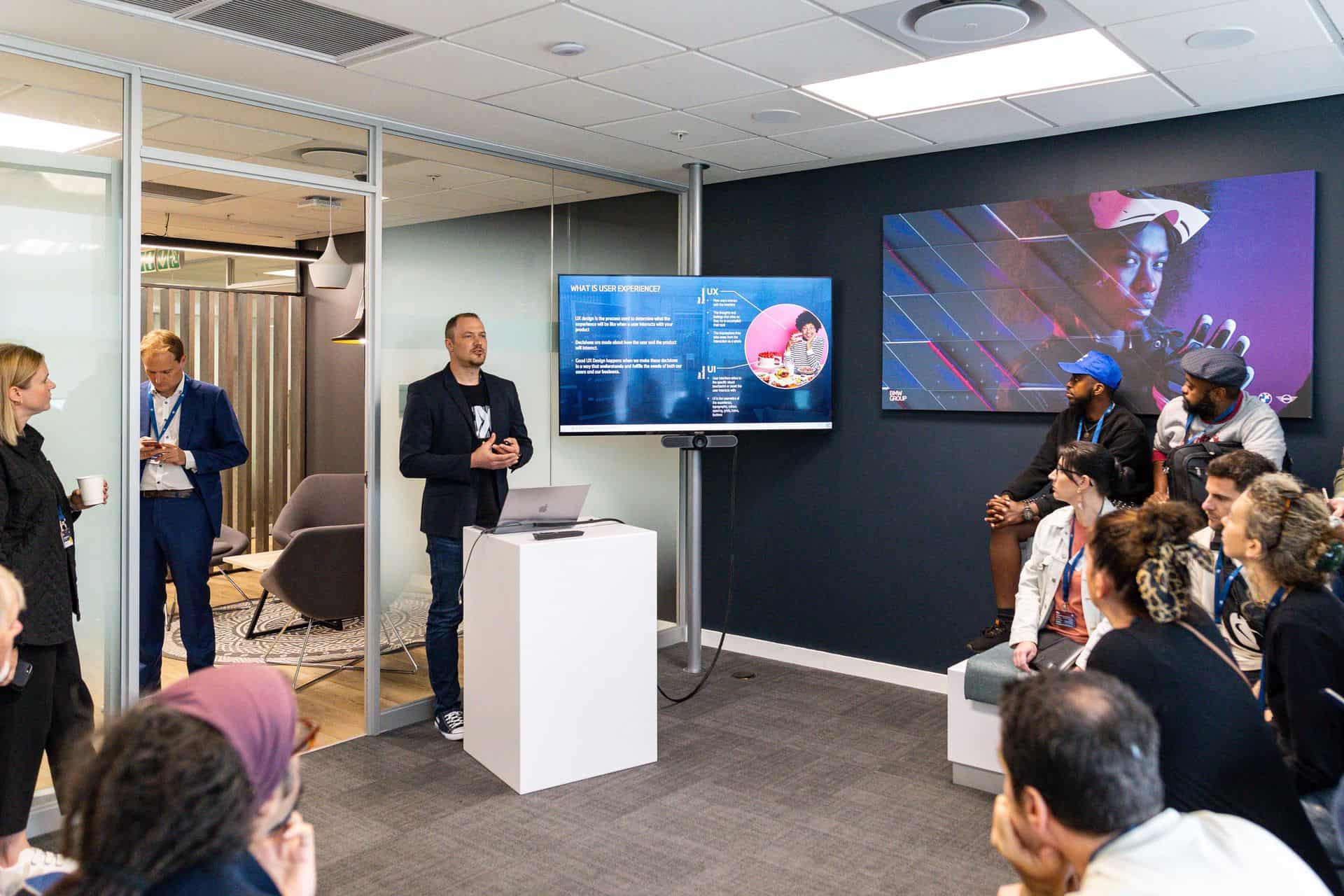 Our final leg of the office visit takes us through the UI/UX departments where we get a look behind the scenes at the design operations particularly highlighting their collaboration with team members from Germany, Portugal, and South Africa. The team’s responsibility is to ensure that all product teams adhere to the correct principles in UX design for all global markets.