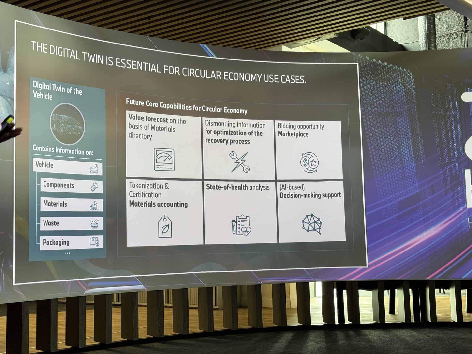 Imagine a use case where you can have granular data about the battery’s chemical composition, including detailed state of charge information, and then using that data to recommend it for a secondary use or sending it to a dismantling center. Other use cases range from meeting regulatory requirements for vehicle exports (China, for example) to contributing to sustainability goals. By documenting the materials and components of each vehicle, the digital twin enables informed decision-making regarding recycling, reusing, or repurposing materials, thereby reducing environmental impact.