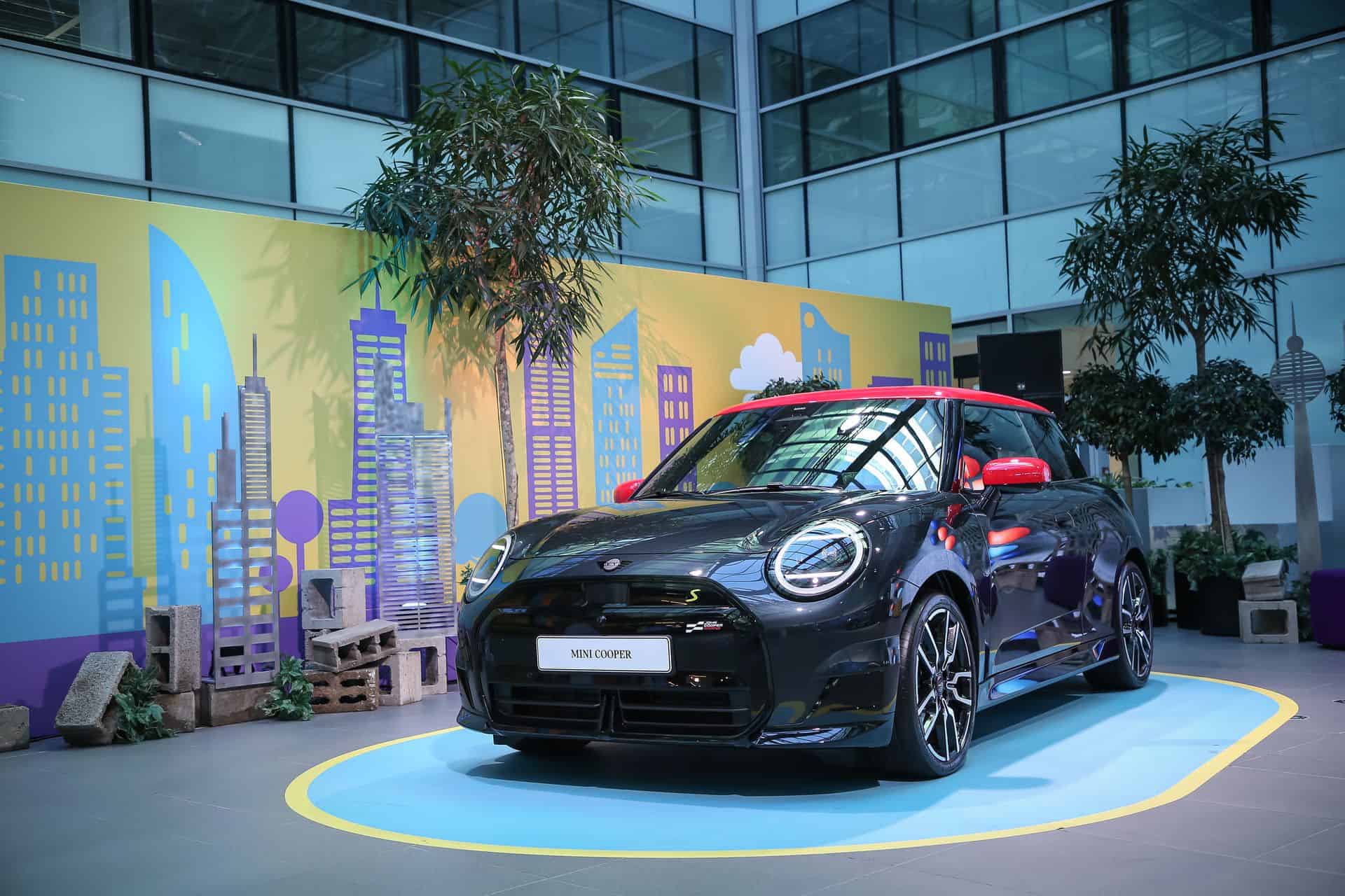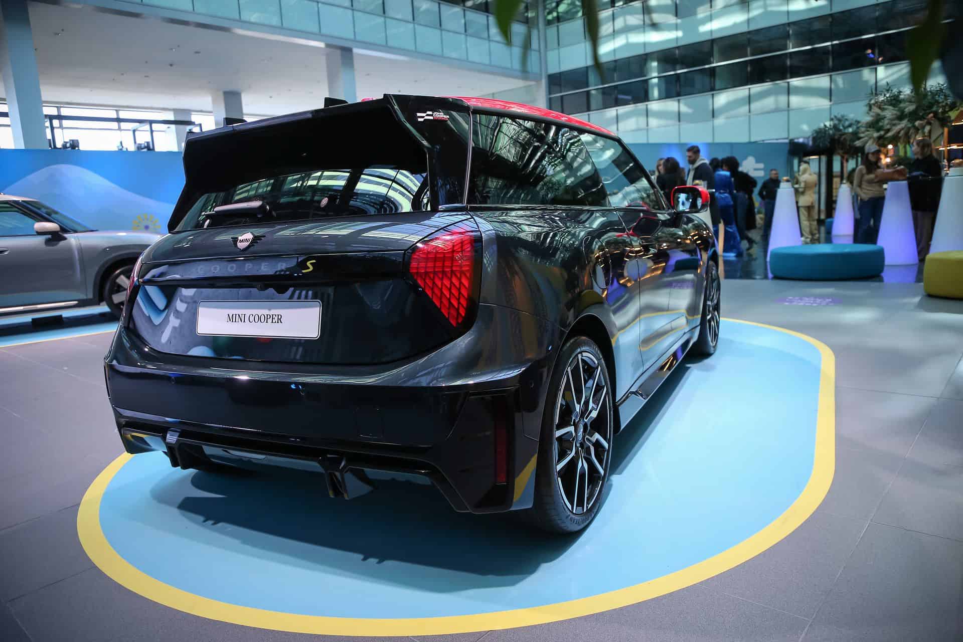 Featuring a distinctive Chili Red roof and a striking rear wing, the debut of the new MINI Cooper S (J01) with the John Cooper Works package in Bulgaria is nothing short of attention-grabbing. This electric MINI variant provides a preview of the potential visual direction for future MINI JCW (J01) models. Distinctive to this trim, the front grille frame and logo shine in high-gloss black, providing a unique touch. To further enhance the visual appeal, JCW bonnet stripes are now offered in either Chili Red or black. The rear end is equipped with a sporty spoiler, a sizable diffuser insert, and redesigned Union Jack taillights which all contribute to the sporty looks of the car.
