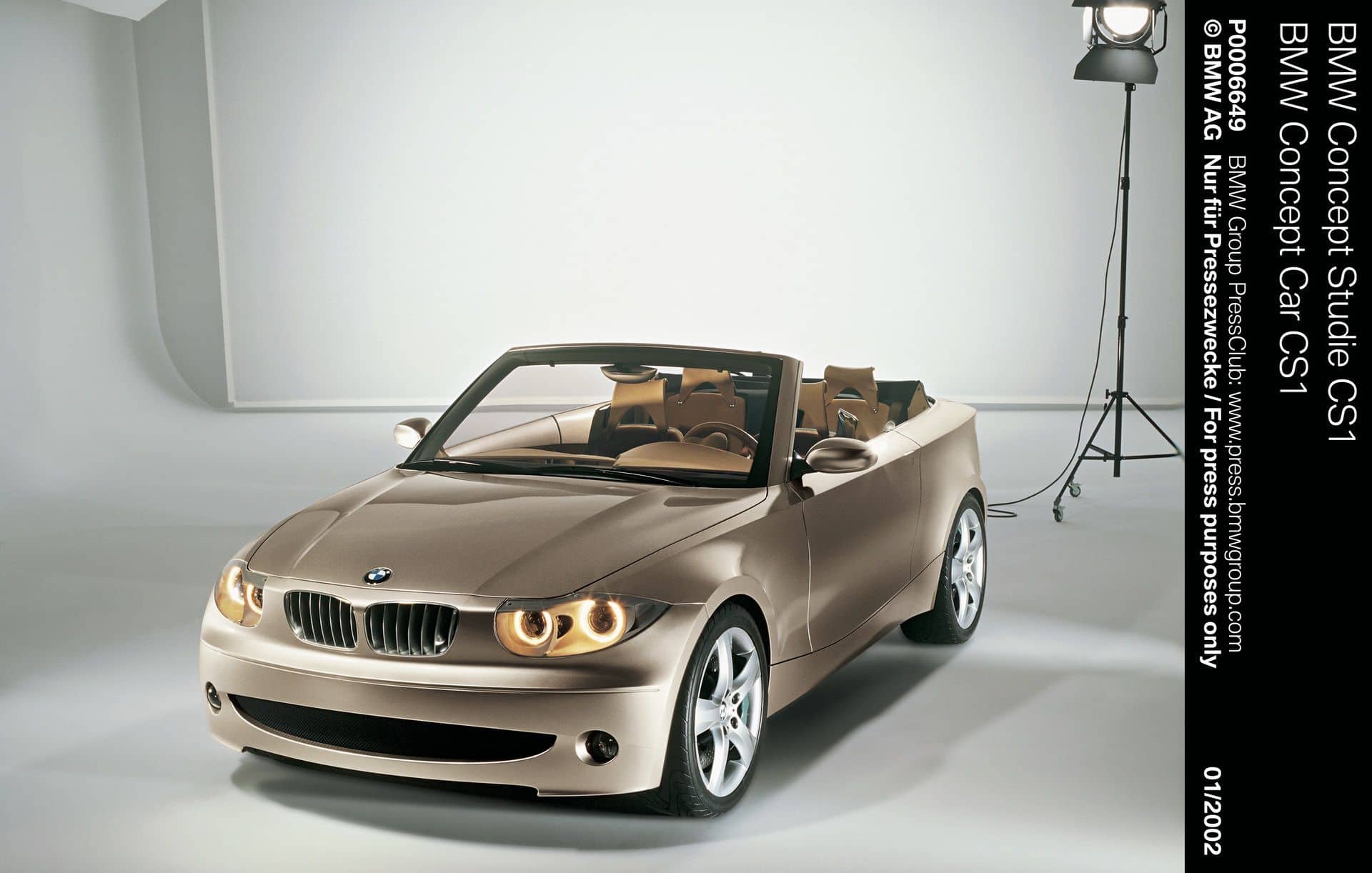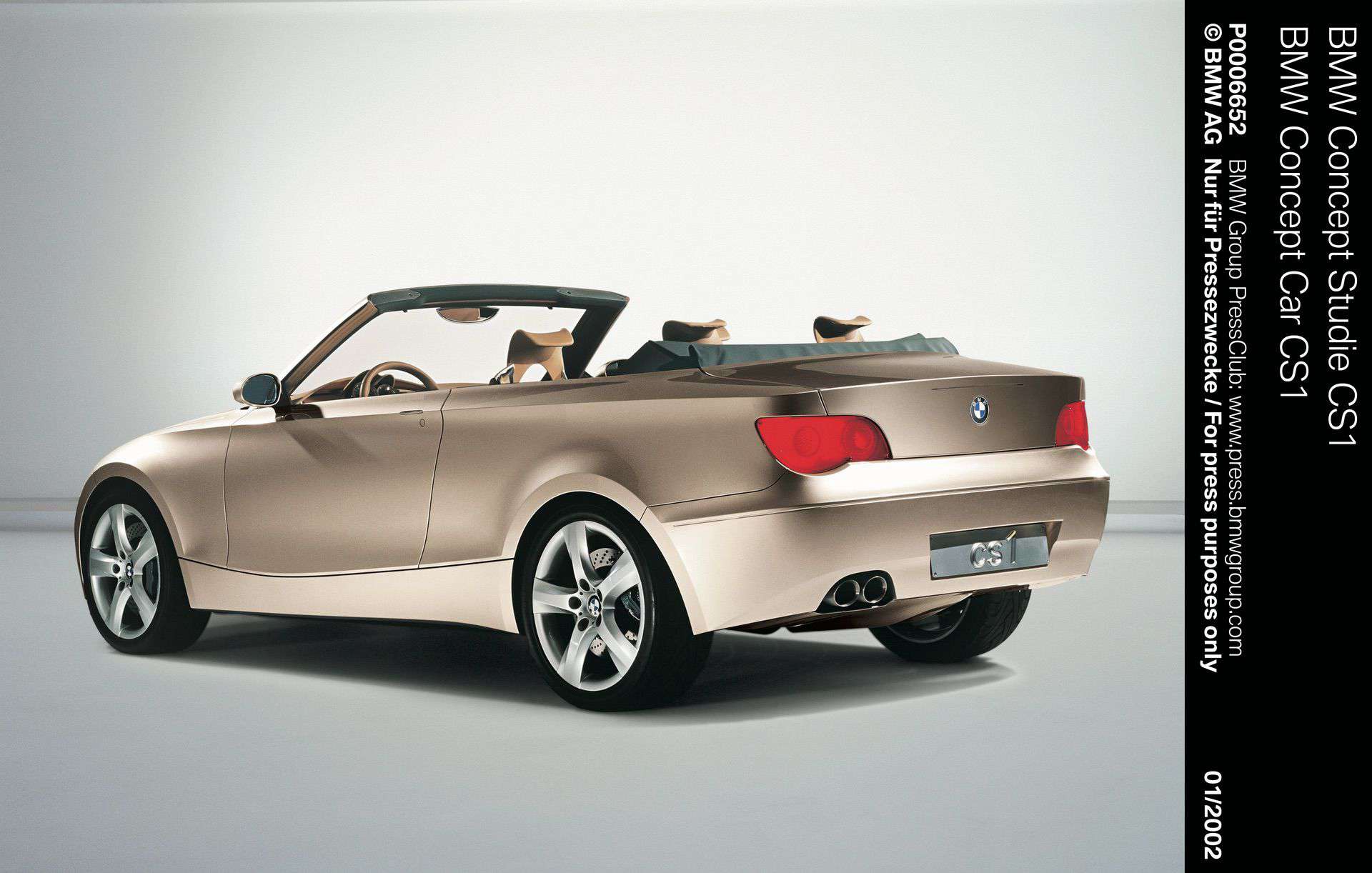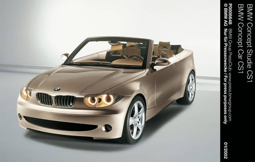 The next Bangle-era concept, the 2002 BMW CS1 Concept, directly previewed a series model, the E87 1 Series. The study showed a small two-door convertible, and the shape and proportions remained very similar in the production E88 cabriolet, whose design, front fascia aside, has stood the test of time.