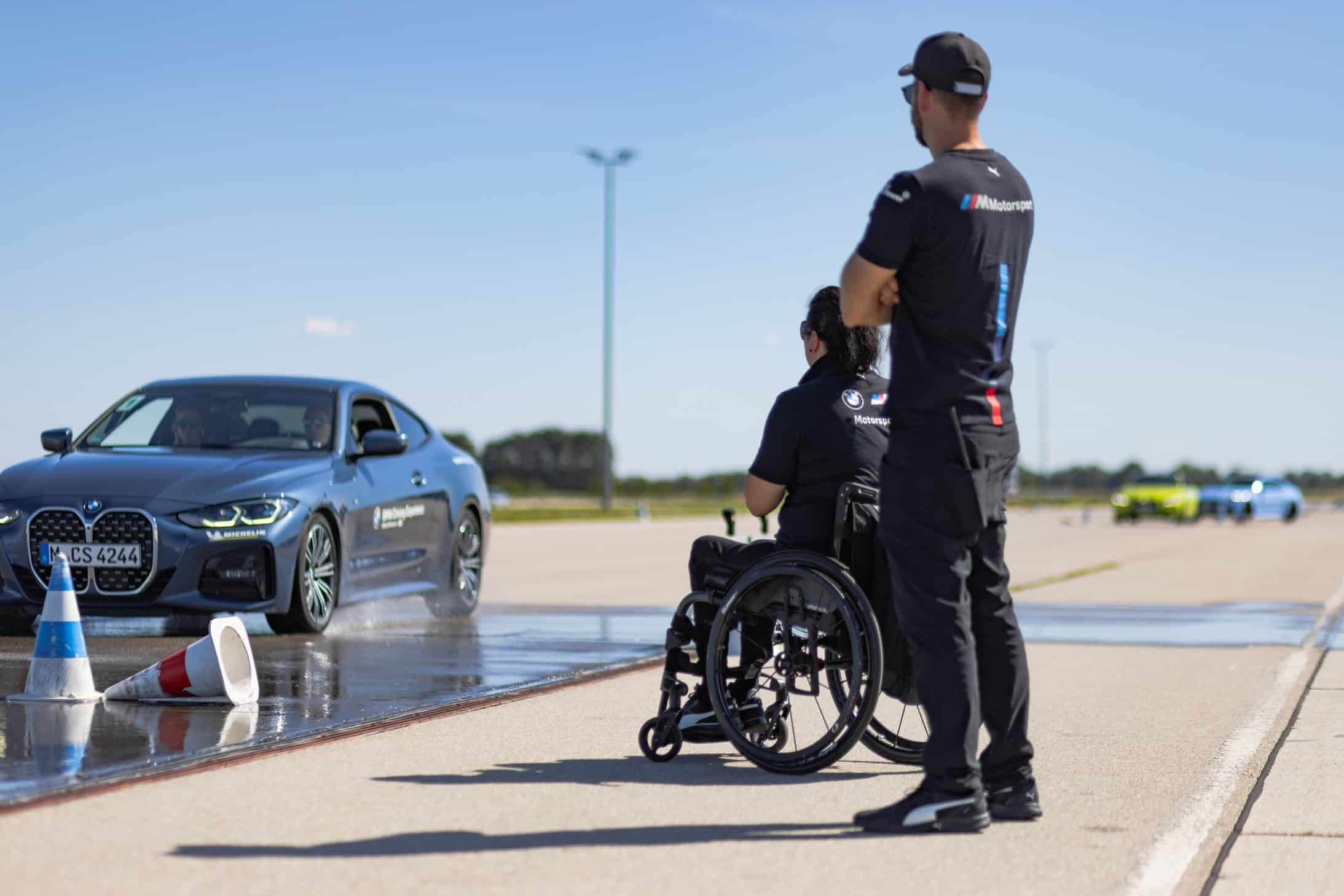 The BMW M Driving Experience traces its roots back to 1977 when it was initially established as the BMW Fahrertraining (driver training). The safety training courses for people suffering from physical disabilities cost €165 per day and are organized in groups of up to eight people. Various BMW and MINI models, equipped with hand controls, are available. Before driving, participants receive a safety briefing. The fee includes insurance and lunch. Additionally, participants receive a souvenir upon completion.