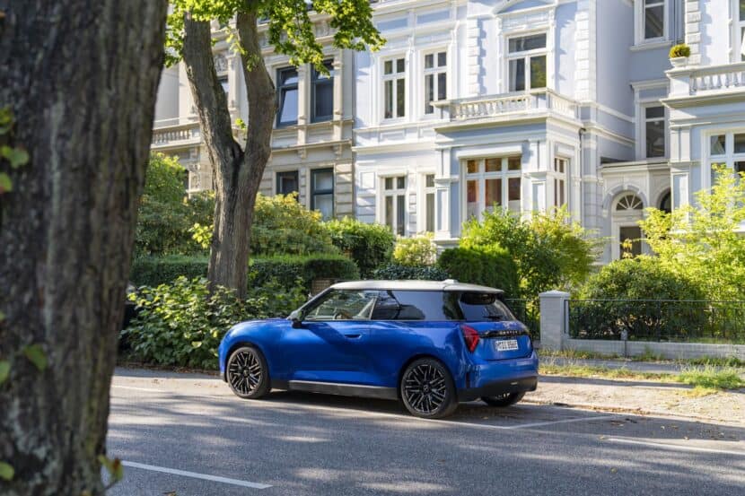 Painted in Blazing Blue, this electric Cooper has two-tone wheels and a contrasting white roof to match the side mirror caps. We’re dealing with the more potent SE variant featuring an e-motor good for 218 horsepower and 330 Newton-meters (243 pound-feet) of instant torque. It’s enough electric punch for a 0 to 62 mph (100 km/h) run in 6.7 seconds. Feeding the motor is a 54.2-kWh battery pack with enough juice for a maximum range of 402 kilometers (250 miles) in the WLTP test cycle.