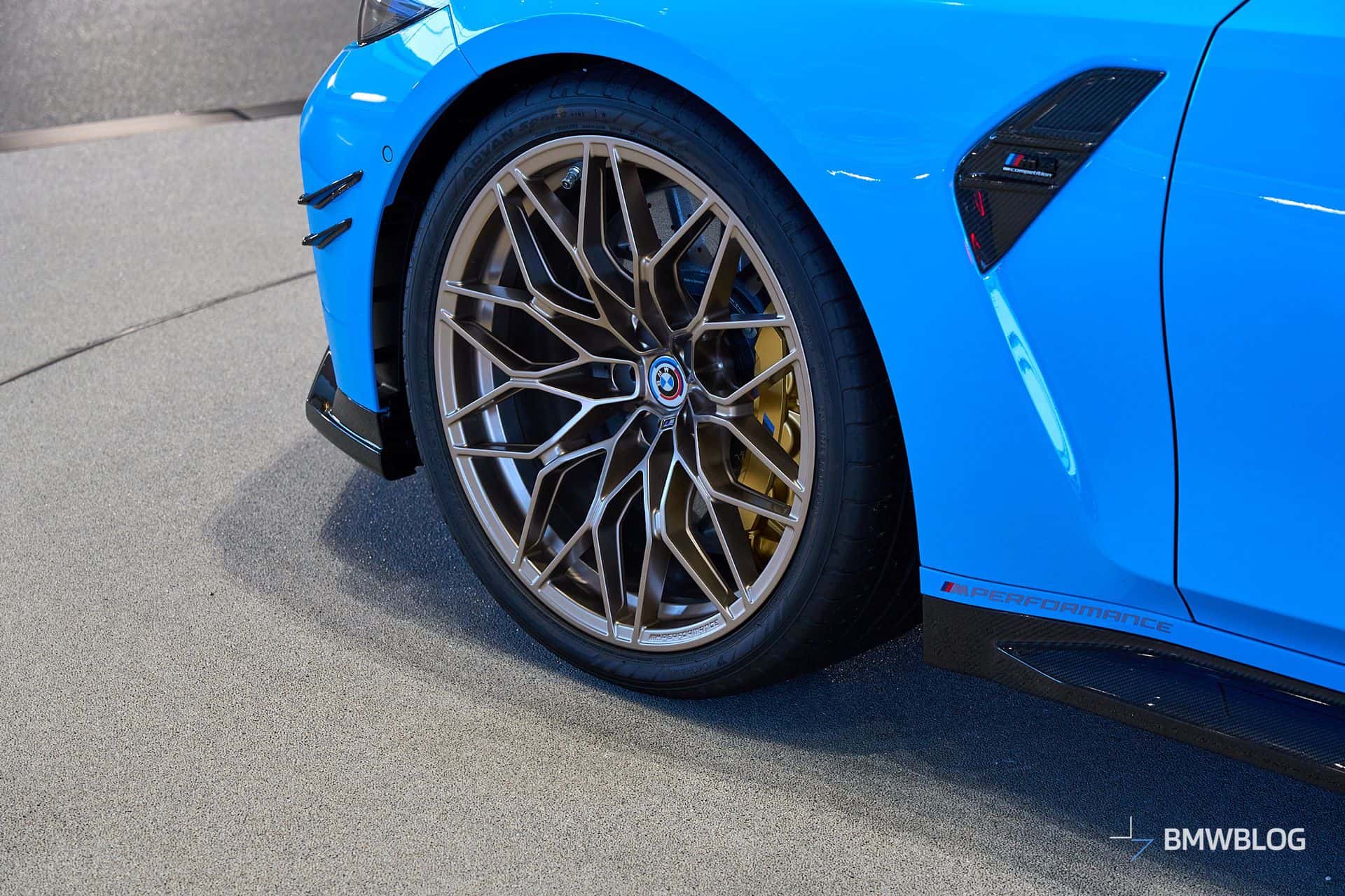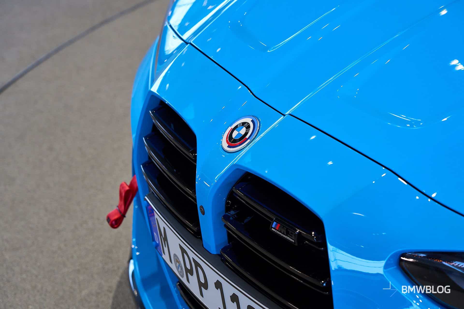 BMW spared no expense as it configured this long-roof M3 with everything from front canards and carbon-ceramic brakes to a red tow strap and a windshield decal that looks straight from the 1980s. Eagle-eyed readers will notice the anniversary roundel introduced in 2022 when the M division celebrated its 50th anniversary. It was an optional item on all M Performance and M cars but also on lesser models that had the M Sport Package.