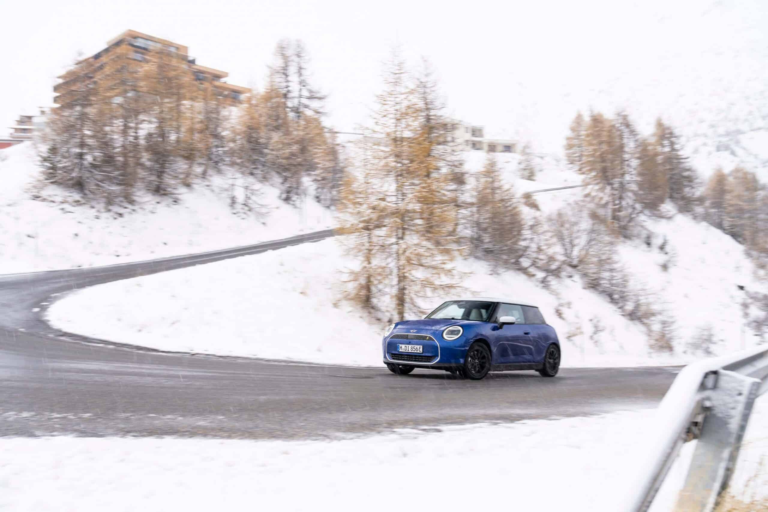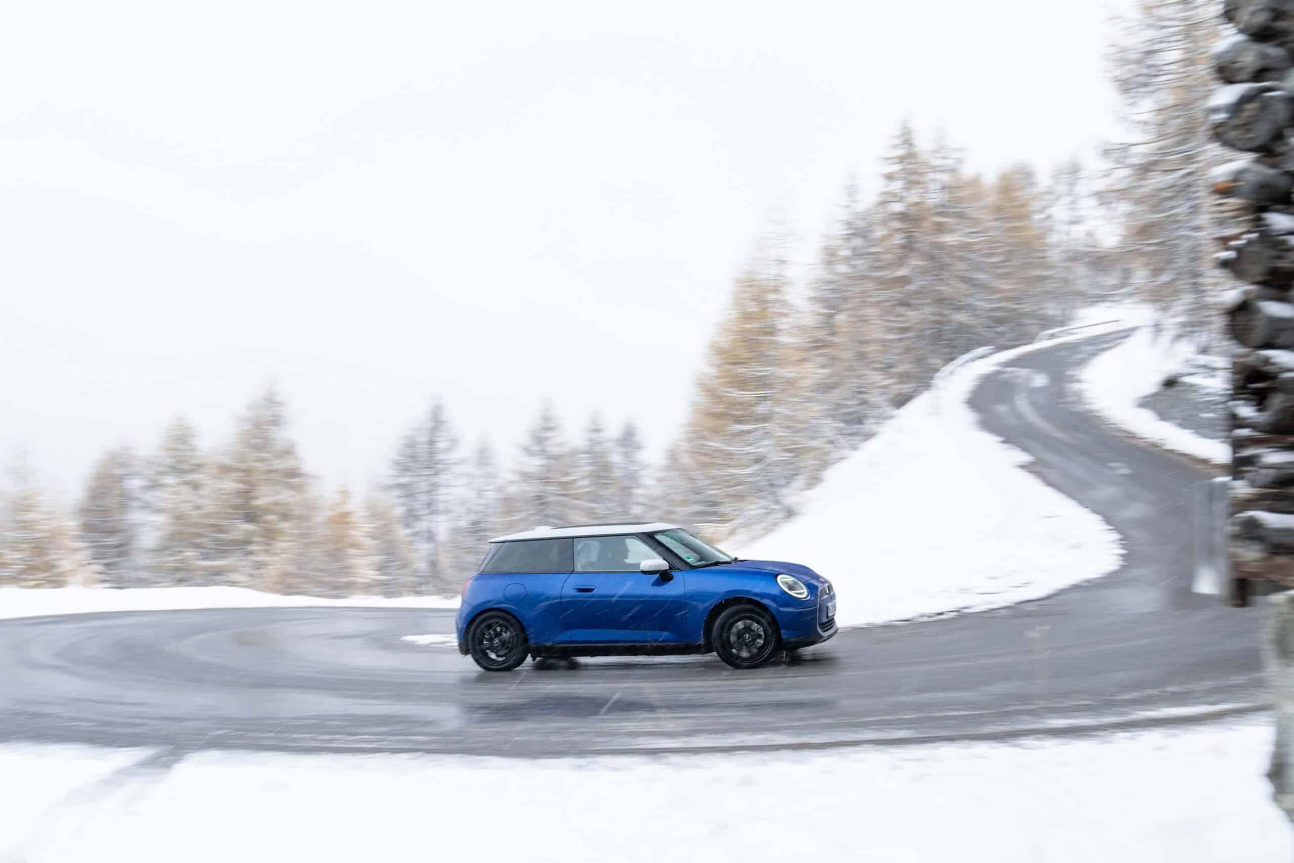 The Cooper SE, MINI’s best-selling car last year, is all-new for 2024. Ahead of its market launch later this year, the next-generation model is posing on snowy roads. It’s the more potent SE version but going forward, the British marque is also going to sell an entry-level Cooper E electric hatchback. This Blazing Blue color suits the EV quite nicely, complemented by the white roof and mirror caps.