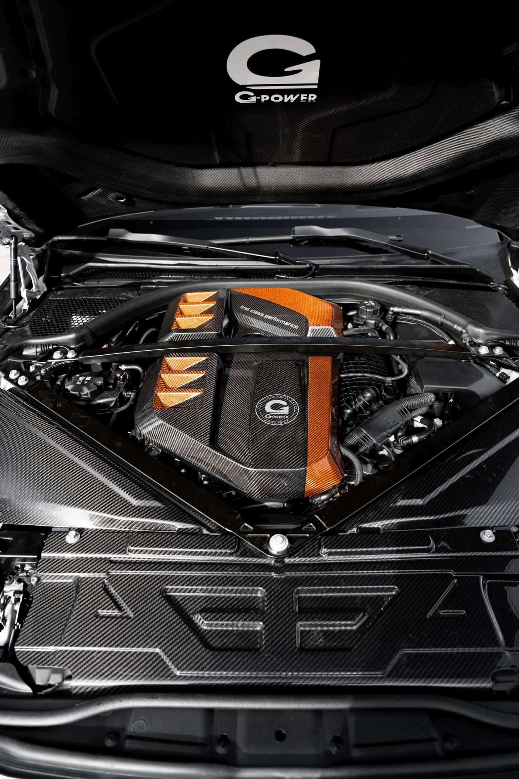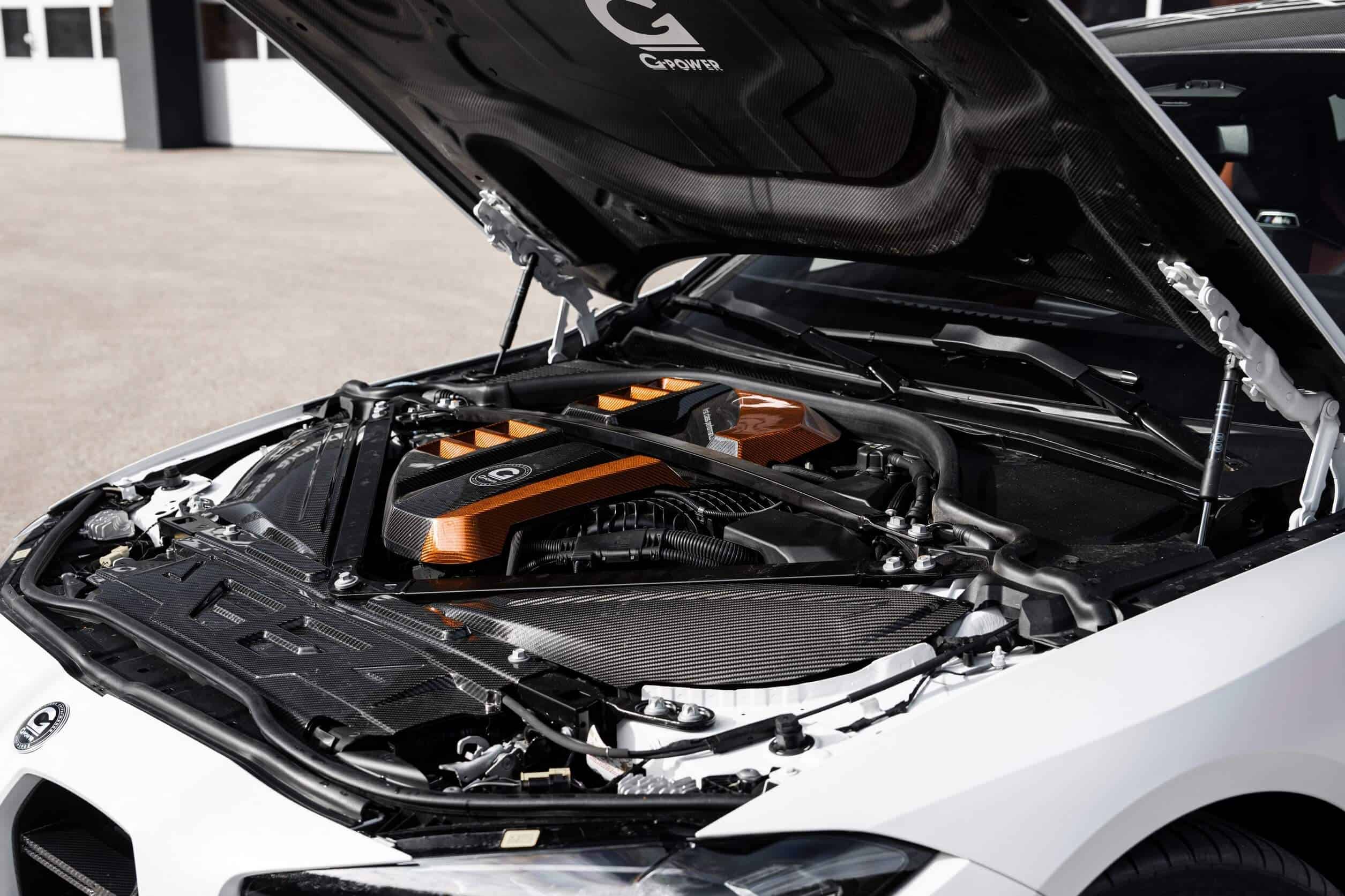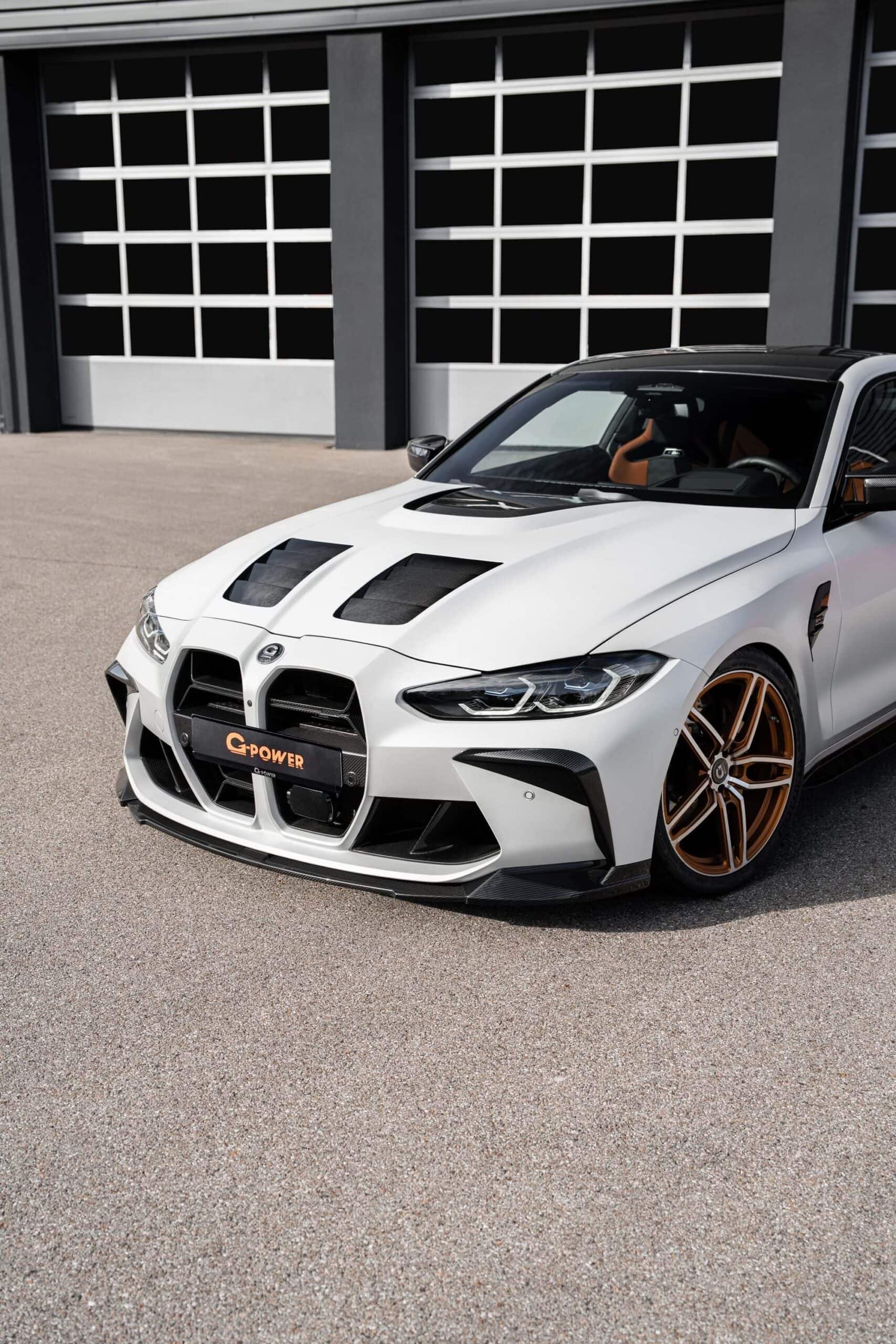 You can immediately tell that this isn’t your run-of-the-mill M4 Competition from just about every angle. This G82 build, from the vented hood to the rear wing, has undergone a comprehensive makeover. G-Power has added beefier side skirts, a prominent front spoiler lip, and a carbon fiber kidney grille. Notably, they swapped out the famous BMW roundel to make room for their own logo.