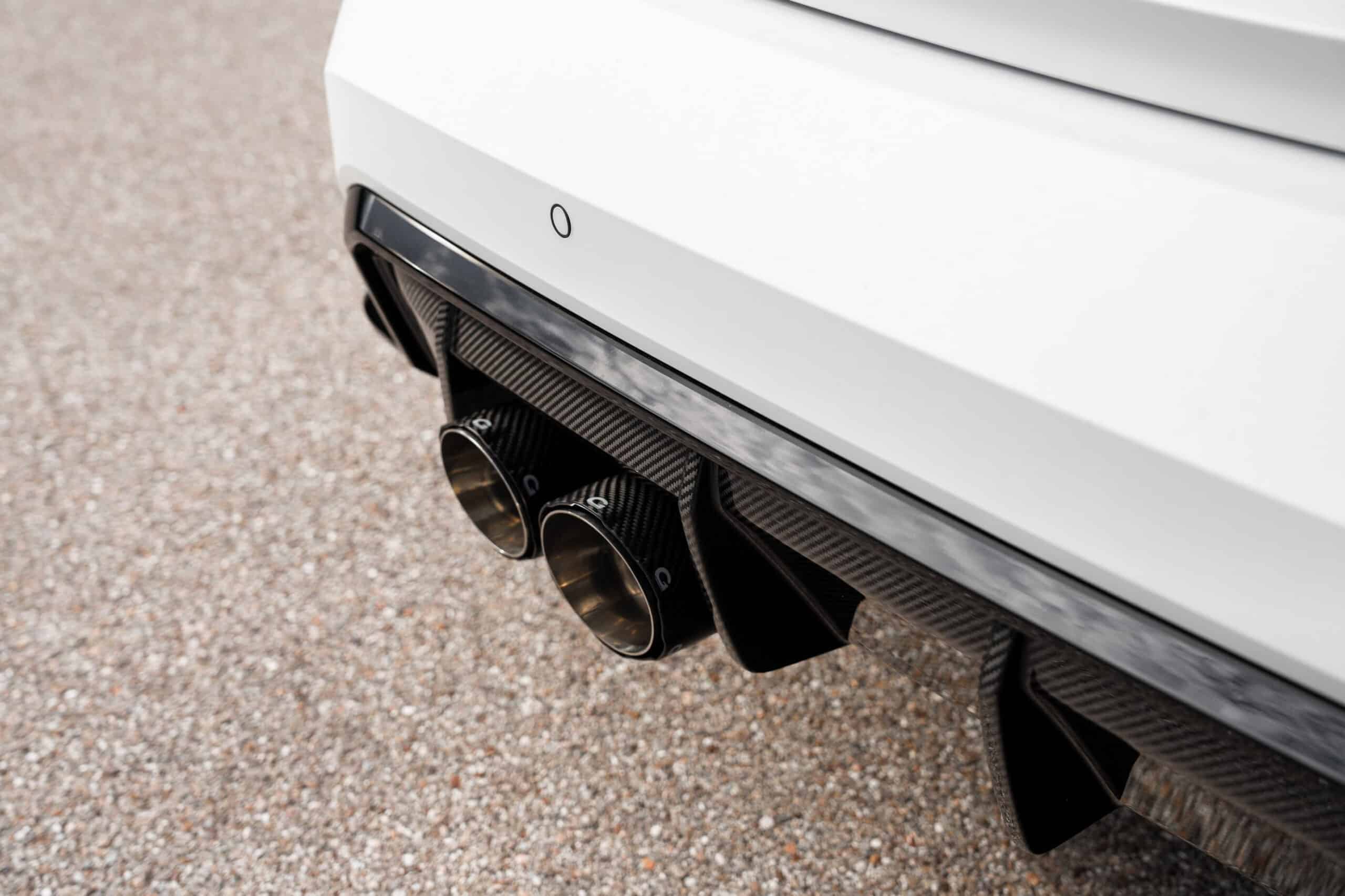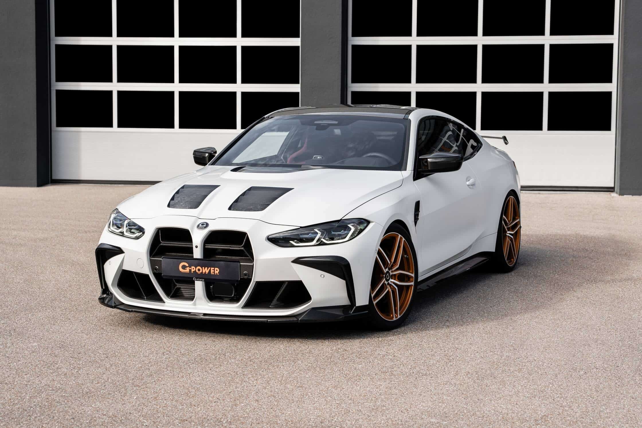 Painted in an Individual Frozen White matte color, the amped-up G82 has had its twin-turbo inline-six boosted for significantly more oomph. The 3.0-liter engine now churns out 700 hp and 850 Nm (627 lb-ft) after tweaking the S58’s software and upgrading the exhaust. G-Power equipped the M4 with an aftermarket stainless steel exhaust featuring custom downpipes and 200-cell catalytic converters. For a bit more visual drama, the quad tips are now covered in carbon fiber.