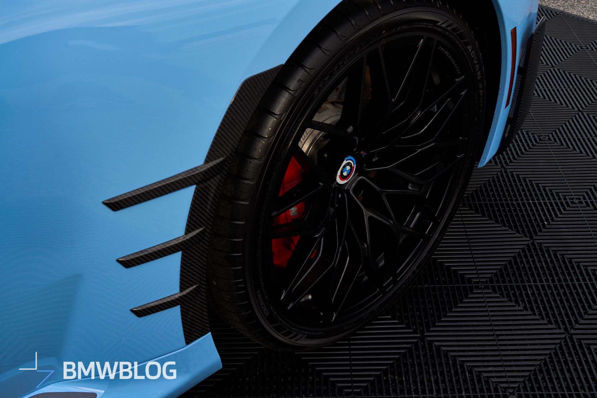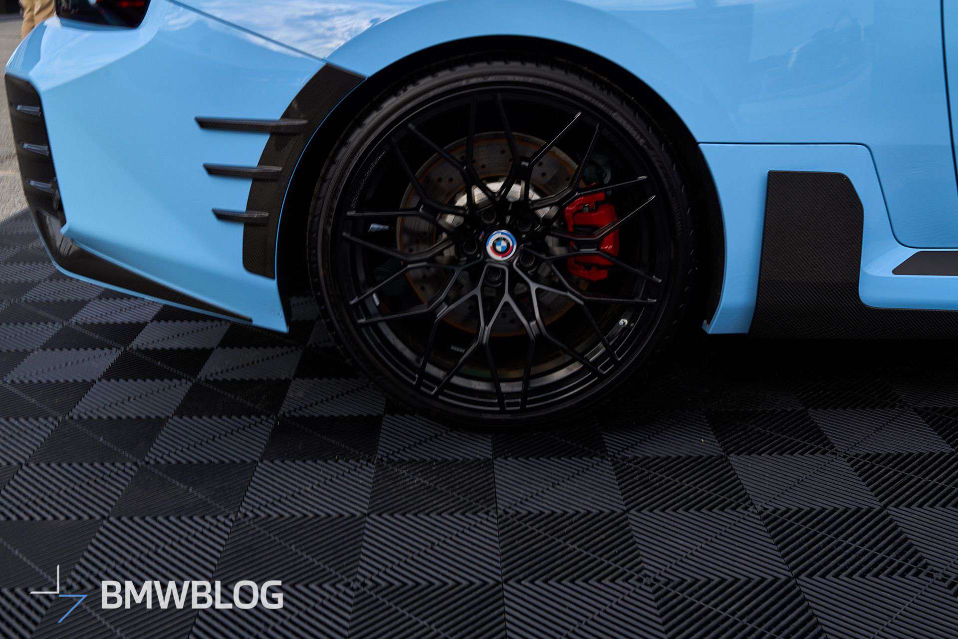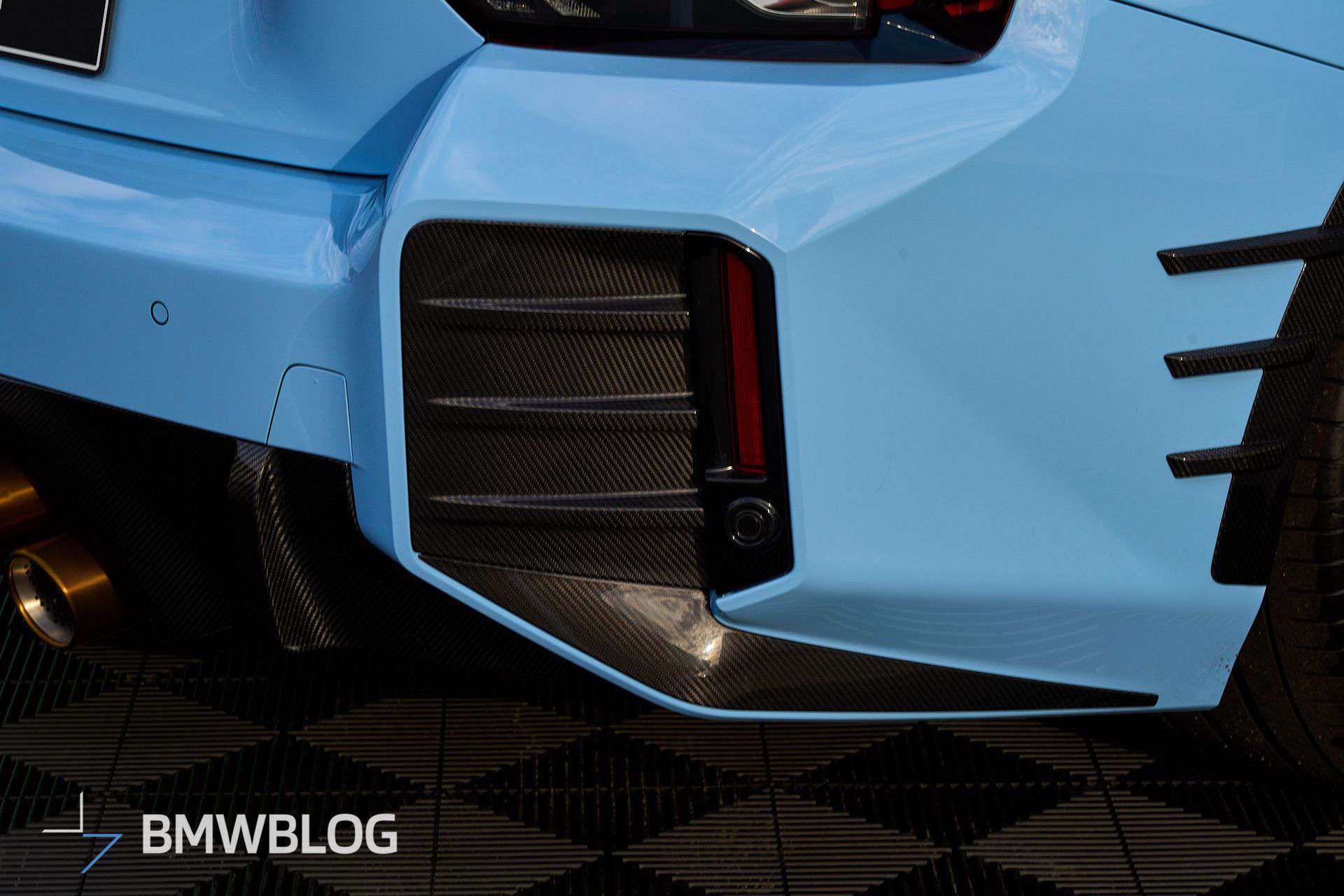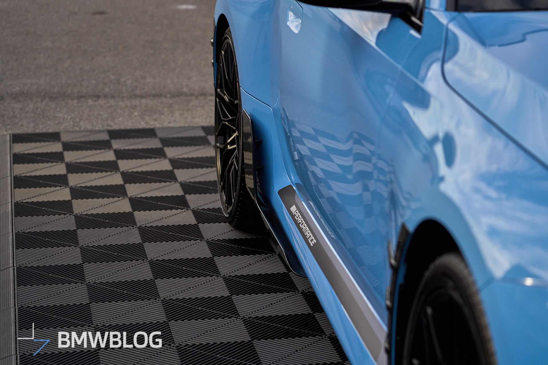 Beyond the attention-grabbing exhaust, BMW is exhibiting the M2 with an array of carbon fiber body add-ons. We’re not big fans of those side spats for the G87, and the M Performance decal on the side skirts makes us think of a tuner’s car. For those keen on extra personalization, additional options are available, including a roof-mounted spoiler and a set of centerlock wheels offered for the M3 and M4 as well.