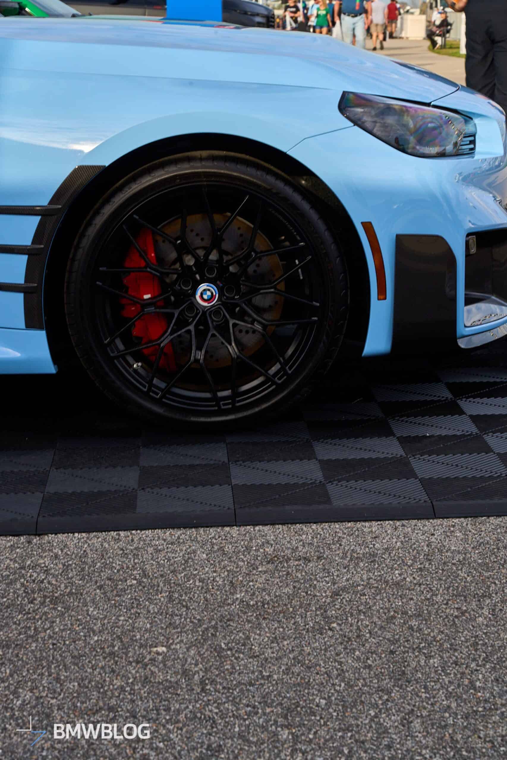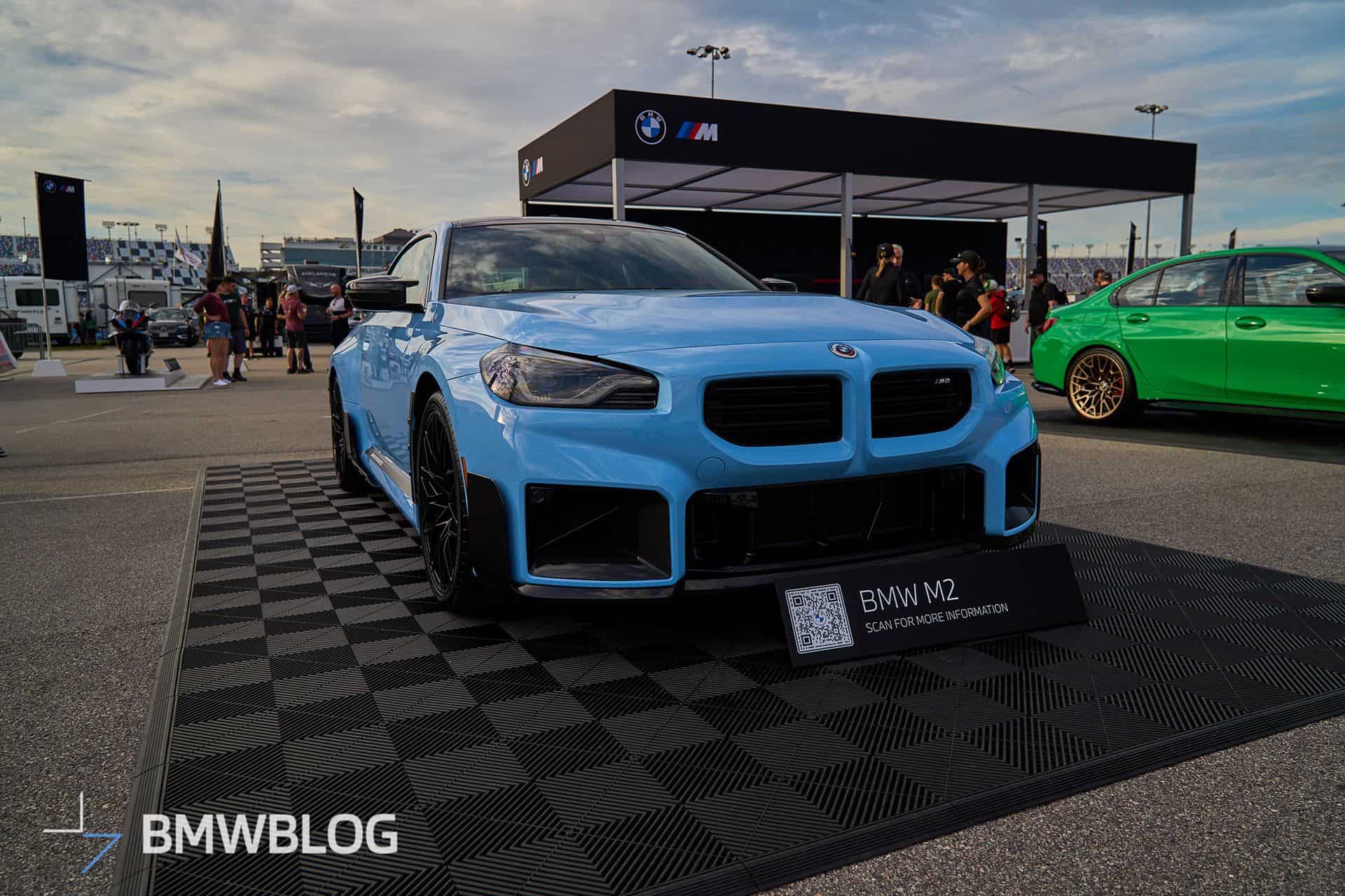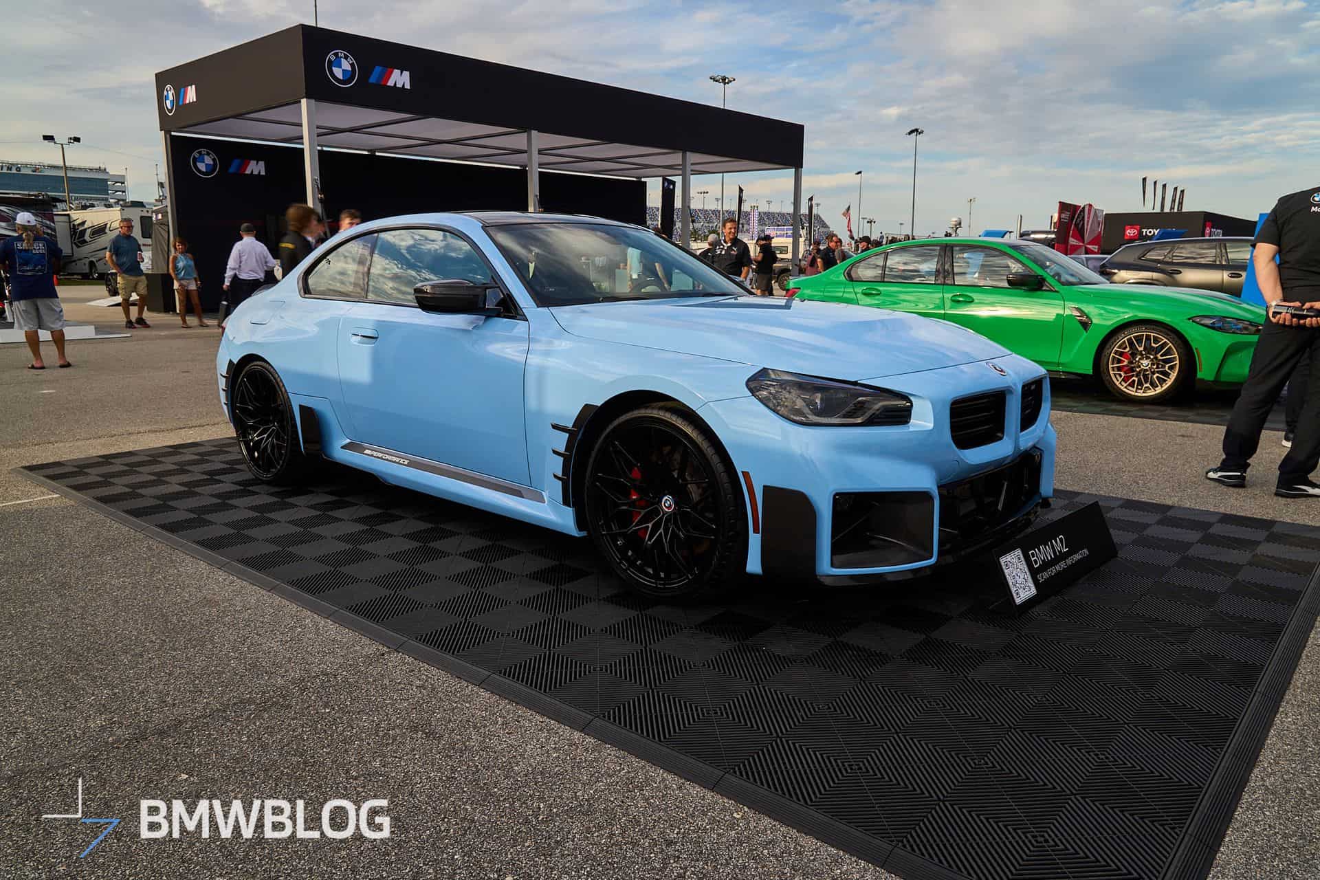 We’re at the 2024 Daytona 24 Hours where BMW is showing off several performance cars, including an X2 M35i. The new M2 happens to be one of them, but it’s not just any G87. Painted in the exclusive Zandvoort Blue, the sports coupe is chock-full of M Performance Parts and has one essential feature – a manual gearbox. The rear-wheel-drive machine flaunts those retro-flavored emblems introduced in 2022 when the M division celebrated its 50th anniversary.