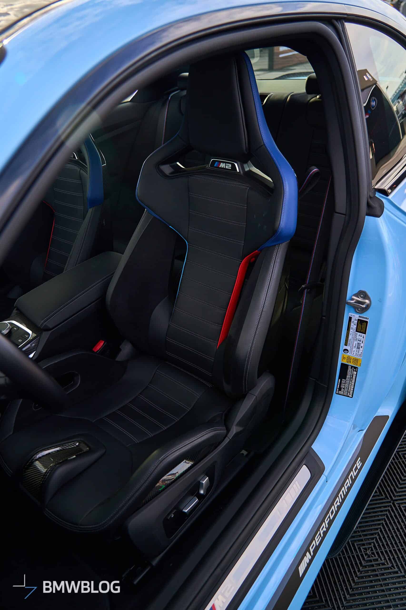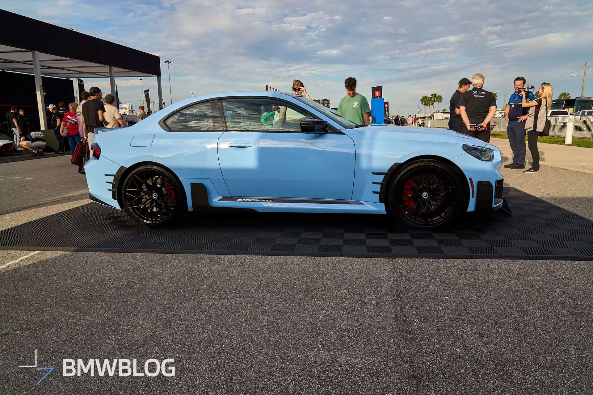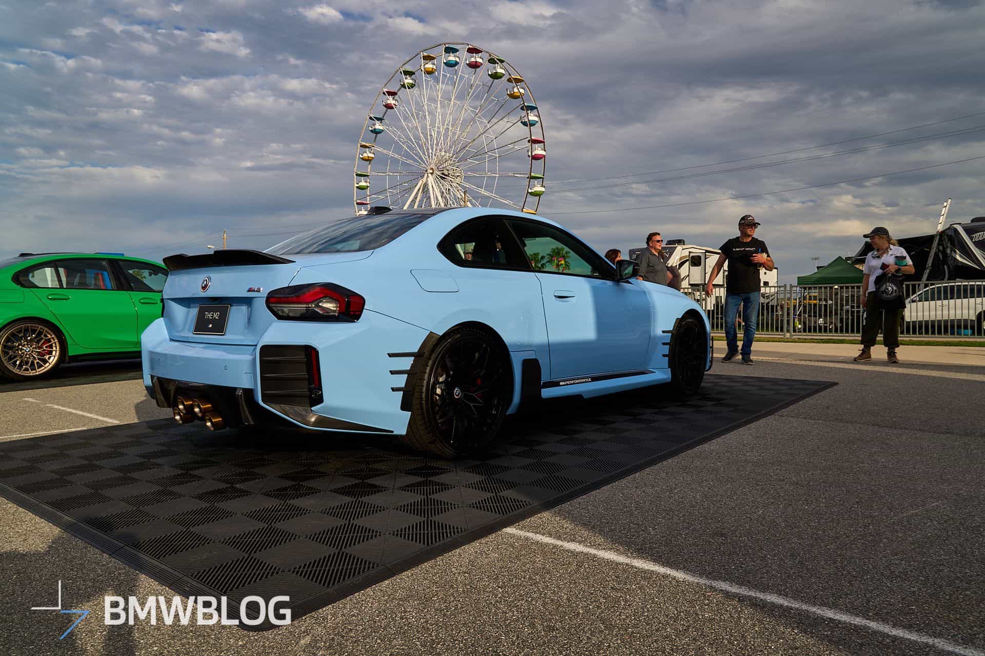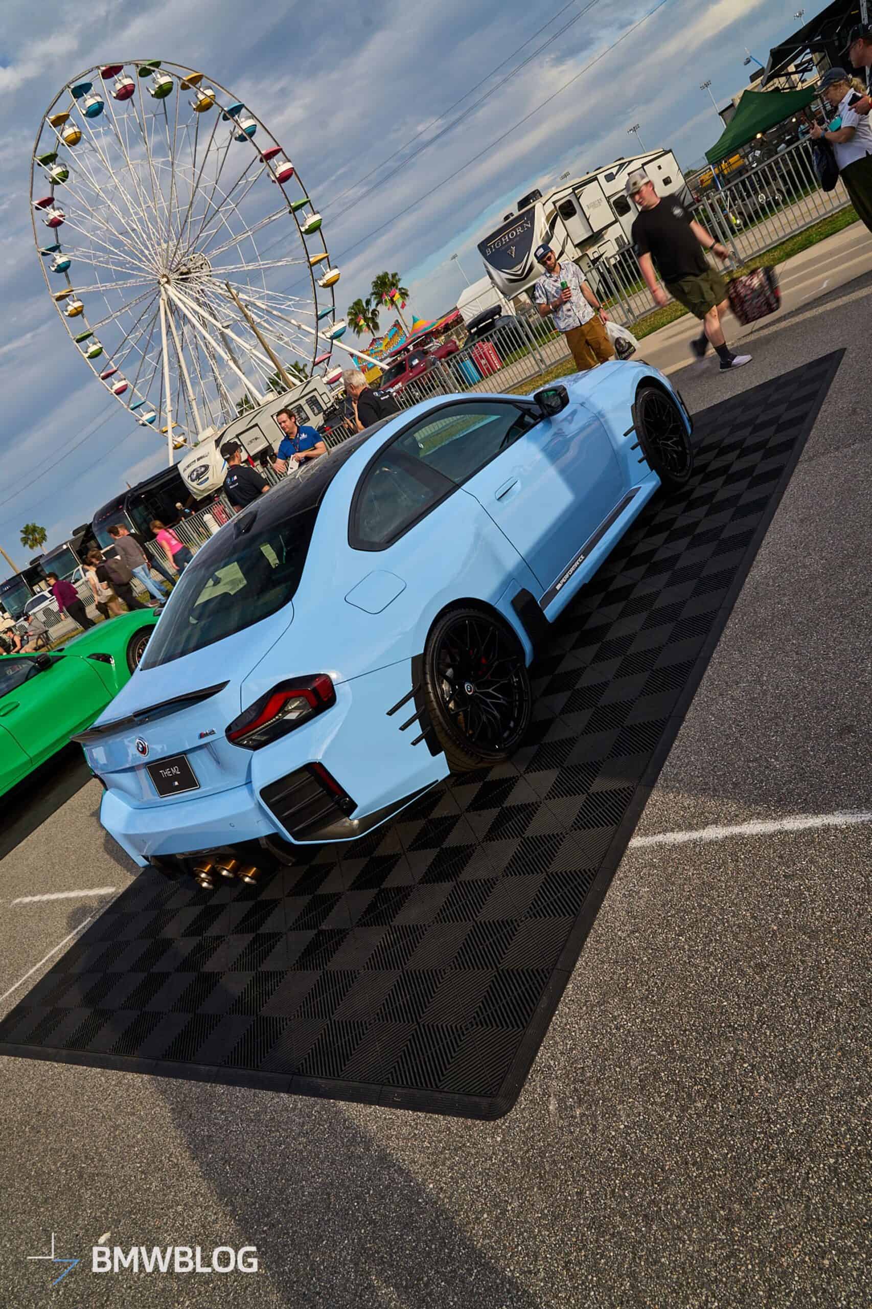 We’re at the 2024 Daytona 24 Hours where BMW is showing off several performance cars, including an X2 M35i. The new M2 happens to be one of them, but it’s not just any G87. Painted in the exclusive Zandvoort Blue, the sports coupe is chock-full of M Performance Parts and has one essential feature – a manual gearbox. The rear-wheel-drive machine flaunts those retro-flavored emblems introduced in 2022 when the M division celebrated its 50th anniversary.