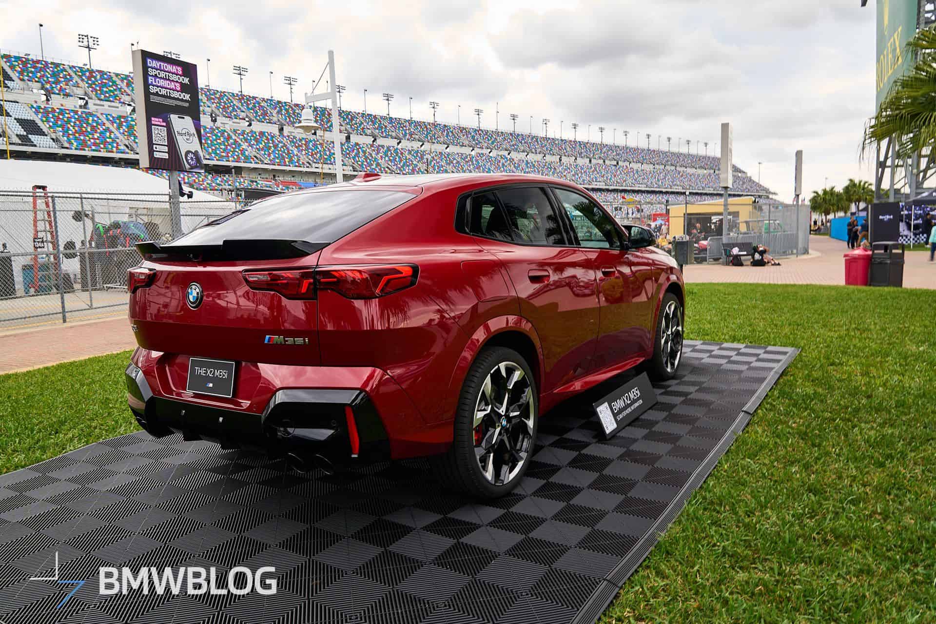 At the 2023 Daytona 24 Hours, BMW hosted the world premiere of the M3 CS. While there were no debuts at this year’s event, we did notice the presence of a couple of interesting cars. Case in point, the second-generation X2, donned in the M Performance guise and a striking Vegas Red paint, known outside the United States as Fire Red. The luxury brand decided to go all out and fitted the crossover-coupe with the largest available wheels—a 21-inch set (Style 874M).