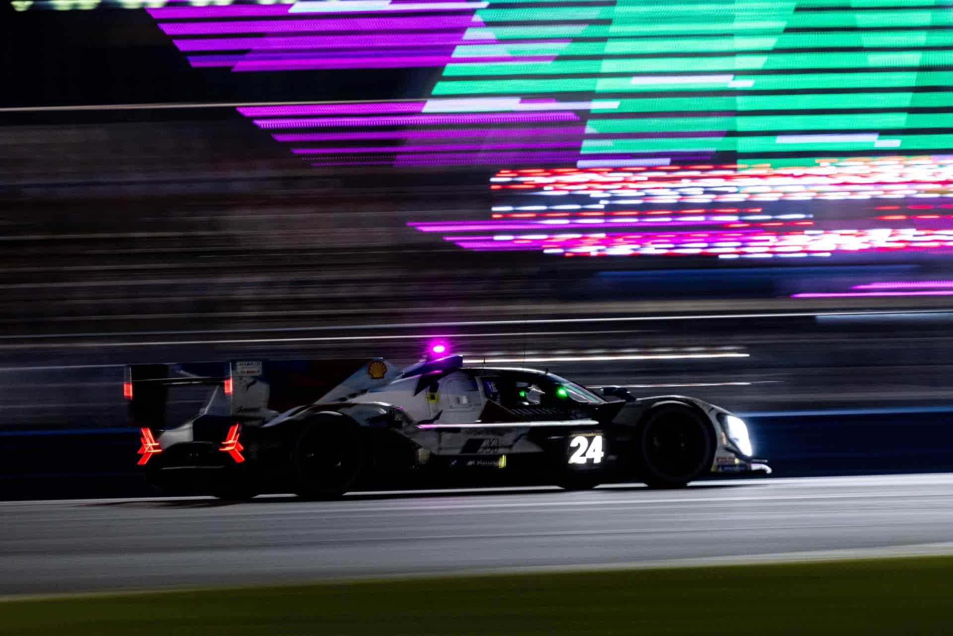 In the first 10 hours of the race, car #24, driven by an international crew of Philipp Eng (AUT), Jesse Krohn (FIN), Augusto Farfus (BRA), and Dries Vanthoor (BEL), alongside their sister car with Connor De Phillippi (USA), Nick Yelloly (GBR), Maxime Martin (BEL), and René Rast (GER), were at the top of the pack with Porsche and Cadillac.