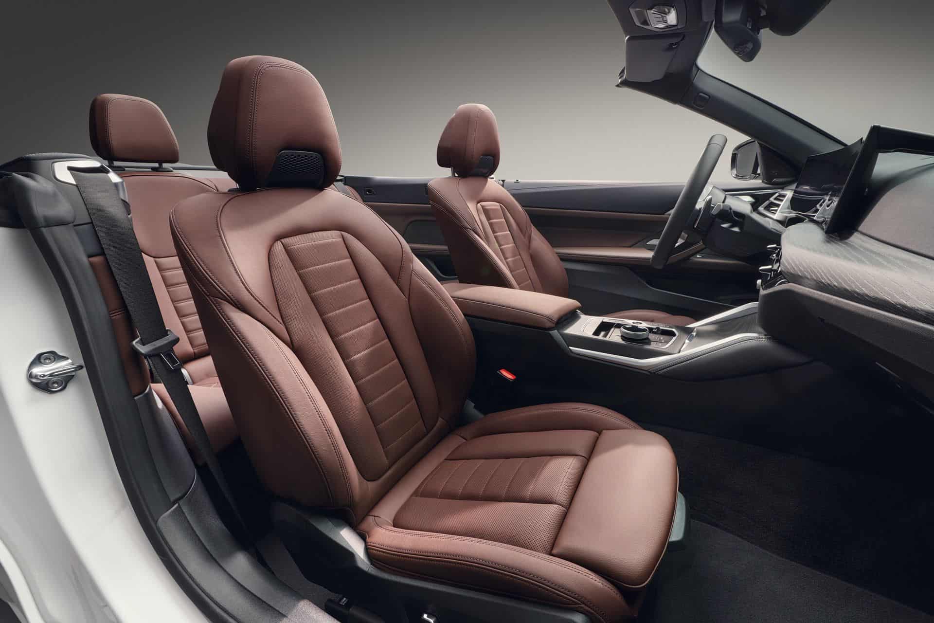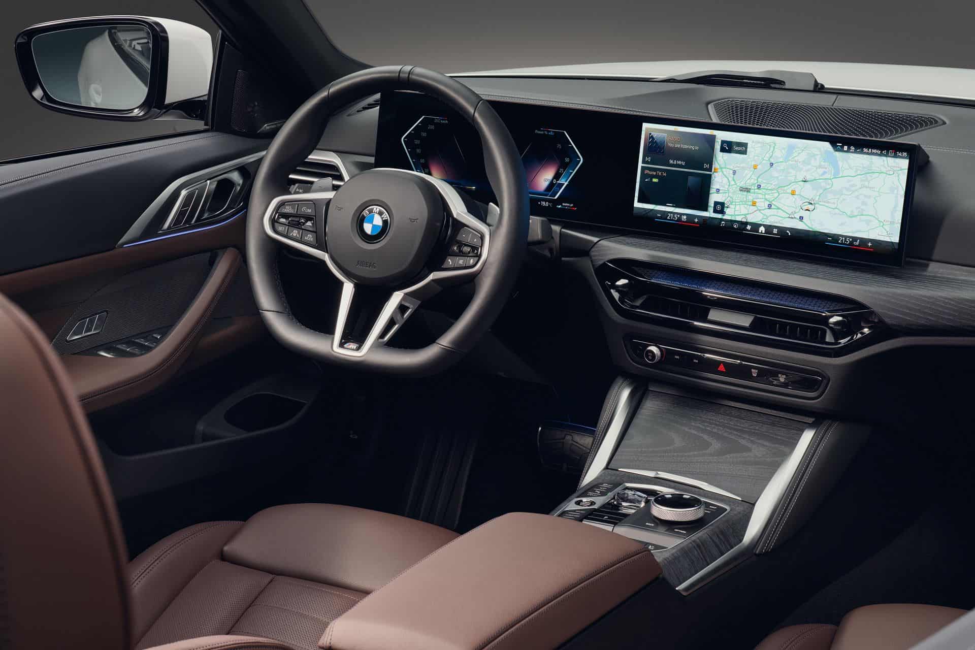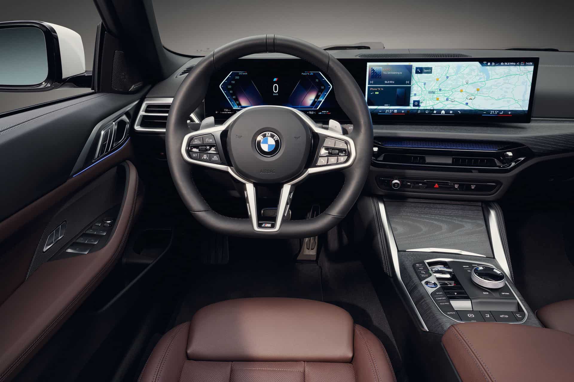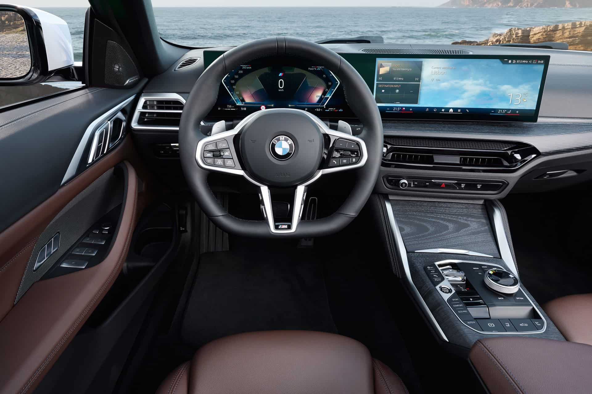 Stepping inside, the 2025 BMW 4 Series Coupe and Convertible facelift switches to the iDrive 8.5 and gets a redesigned leather steering wheel with a flat-bottomed surface and a three-spoke design. Shift paddles are standard now, as is ambient lighting around the central air vents. Go for the coupe and there’s now a new BMW-first seat black upholstery called M Performtex. Moreover, crystal controls (gear selector lever, iDrive controller, start/stop button) can be ordered, too.