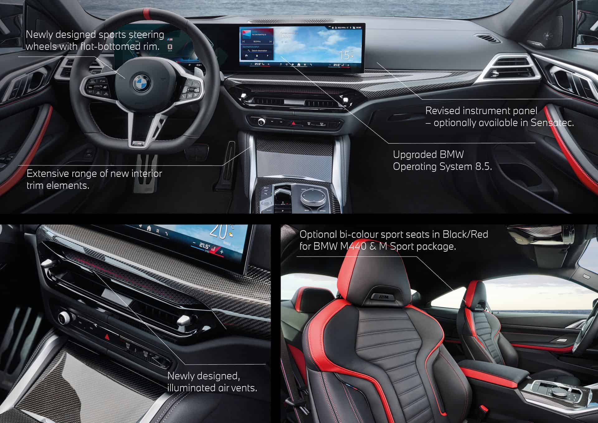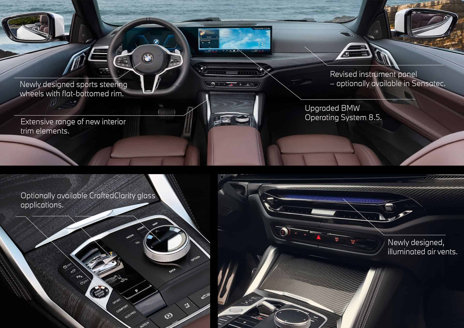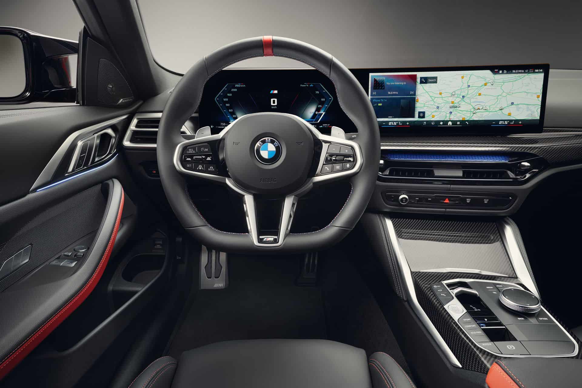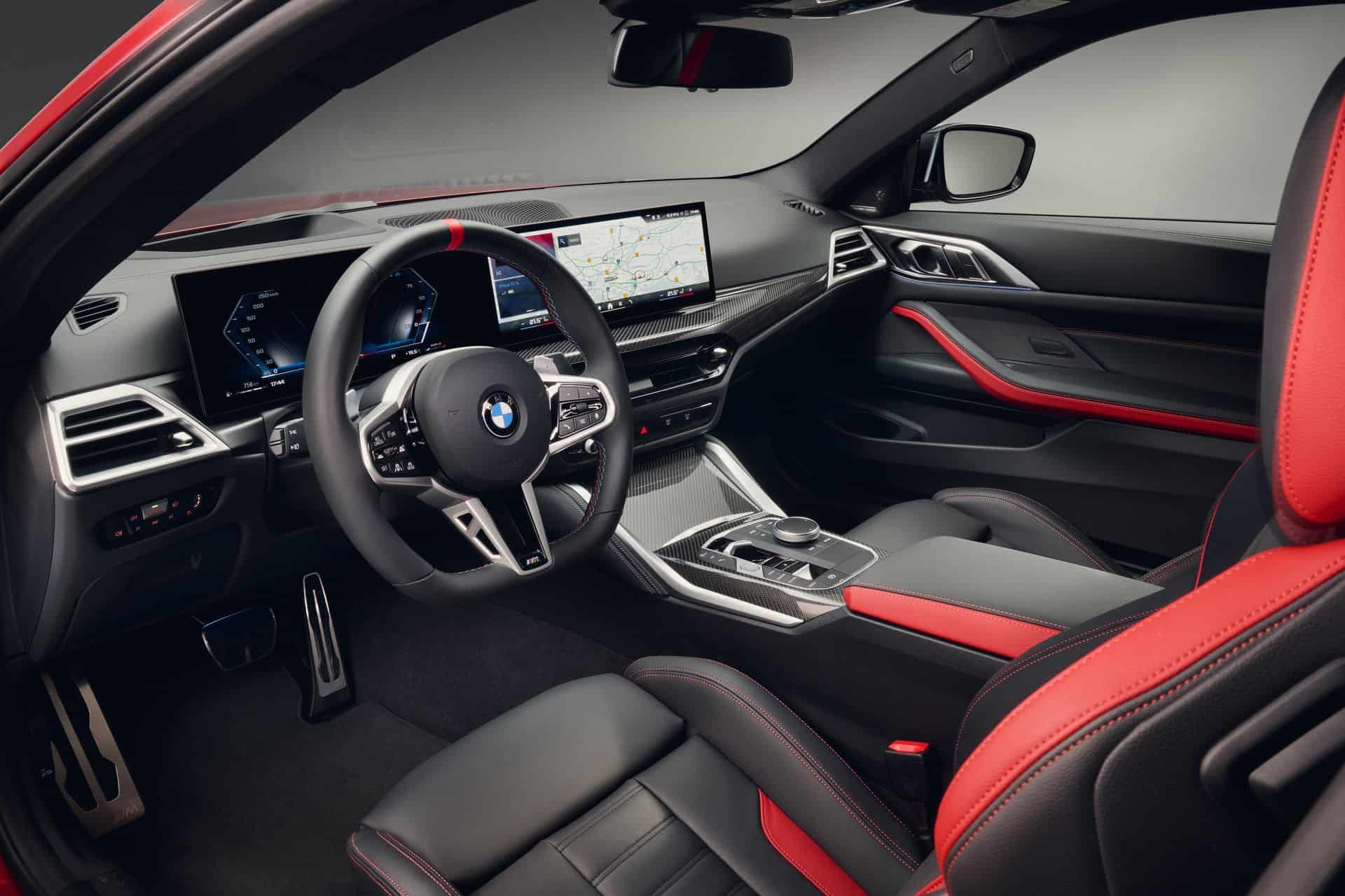 Stepping inside, the 2025 BMW 4 Series Coupe and Convertible facelift switches to the iDrive 8.5 and gets a redesigned leather steering wheel with a flat-bottomed surface and a three-spoke design. Shift paddles are standard now, as is ambient lighting around the central air vents. Go for the coupe and there’s now a new BMW-first seat black upholstery called M Performtex. Moreover, crystal controls (gear selector lever, iDrive controller, start/stop button) can be ordered, too.