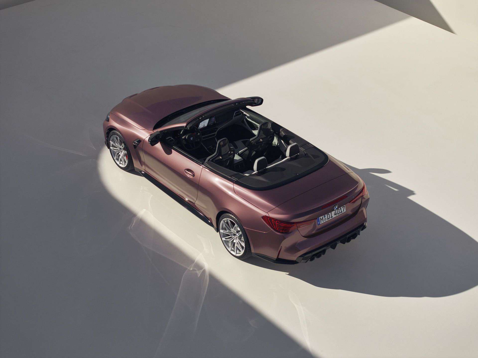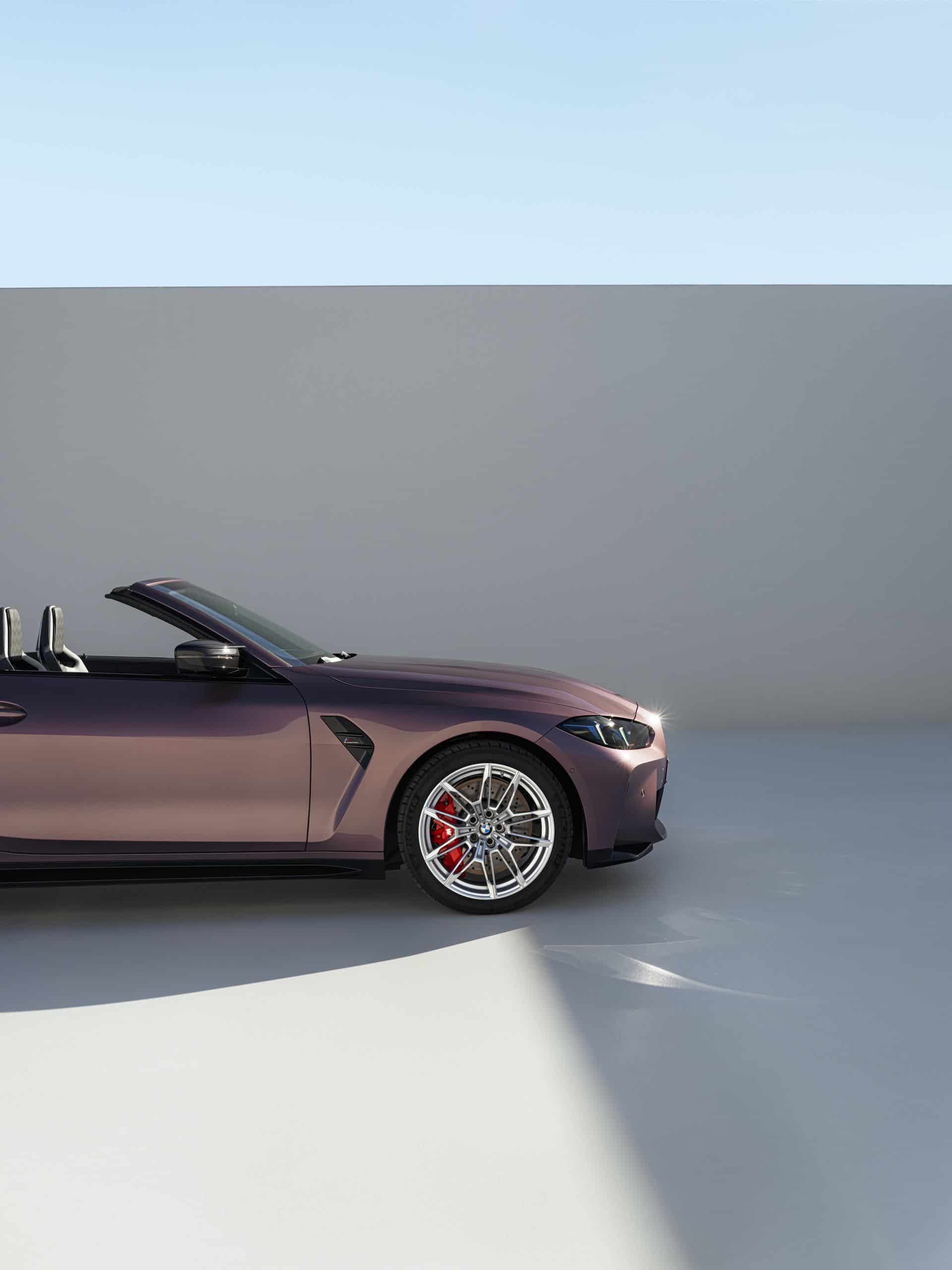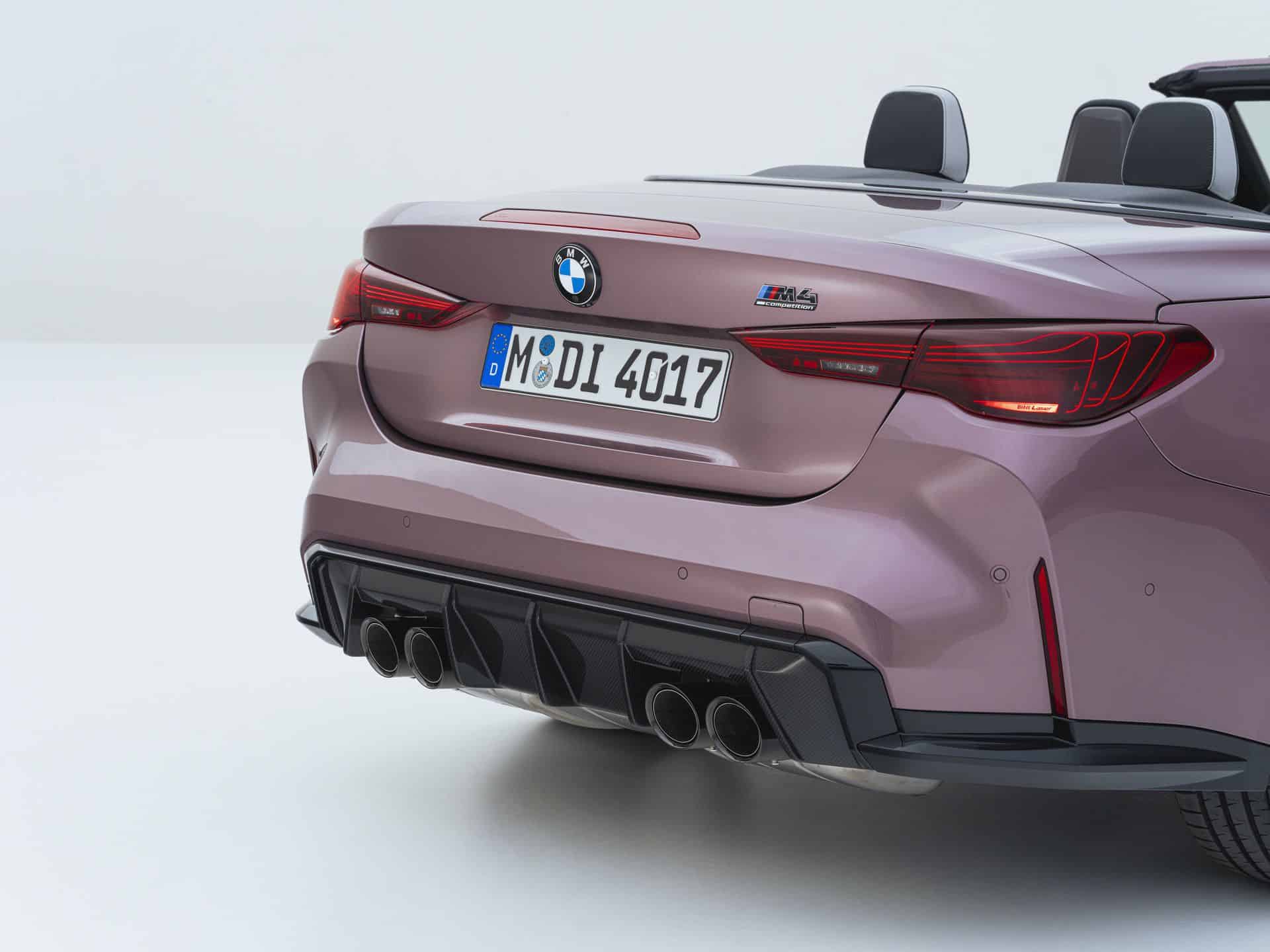 With the Life Cycle Impulse introduced nearly three years after the G84’s debut, the M4 Convertible switches to new LED headlights that do away with laser technology. While you lose the laser setup at the front, you do gain it at the back where the taillights are derived from those used by the M4 CSL. The swanky rear lights are standard and incorporate laser diodes that illuminate glass fiber bundles to create 3D-like graphics for extra visual drama. This Velvet Orchid also goes really well with the laser taillights.