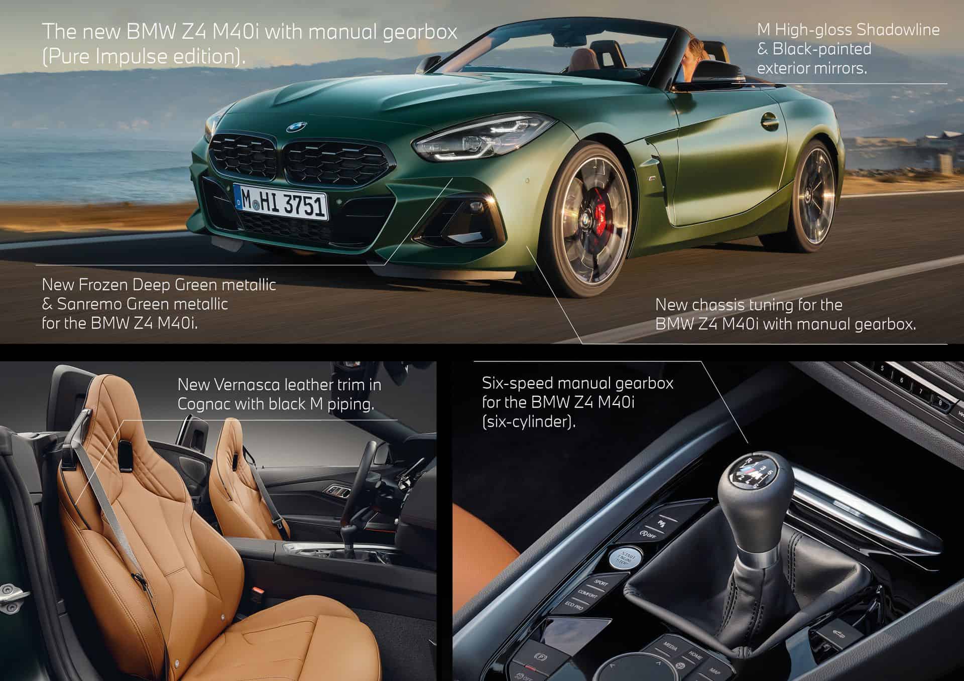 In addition to the mechanical changes, there are visual updates that distinguish the six-speed Z4 M40i from its Steptronic-equipped counterpart. The manual variant receives the Extended Shadowline treatment, featuring numerous glossy black accents. Interestingly, if you opt for the automatic variant, the San Remo Green metallic paint won’t be available, as BMW is offering it exclusively for the manual model. Alternatively, you can choose the $2,950 Individual Frozen Deep Green metallic or any of the seven standard metallic paints. For those who prefer simplicity, there’s also a non-metallic Alpine White.