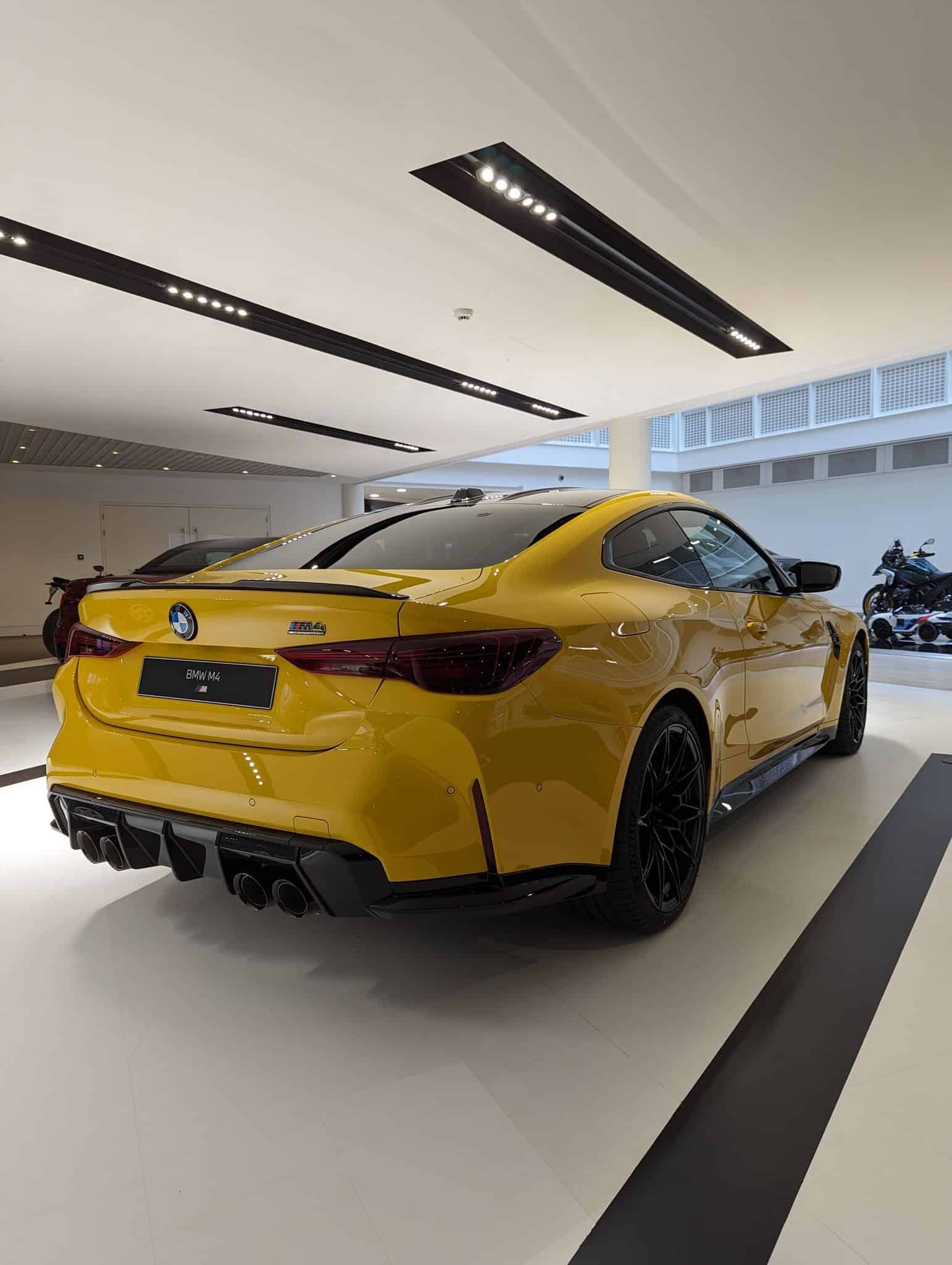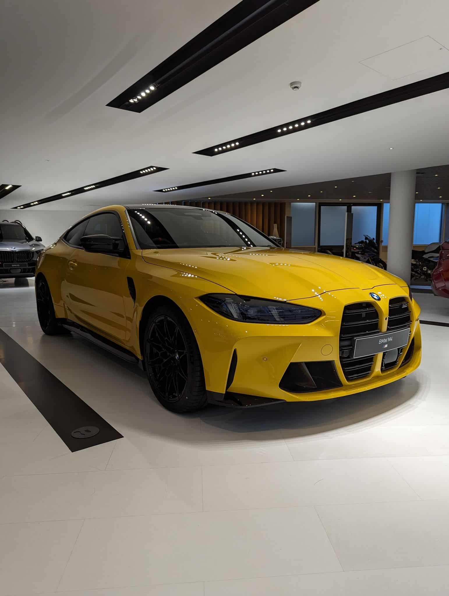 Mere days after its world premiere, the BMW M4 LCI has already touched down in the United Kingdom. Real images show the high-performance coupe in the Competition guise with an eye-catching Speed Yellow paint job. The car also happens to have the heavily tinted Shadowline headlights and optional laser taillights borrowed from the M4 CSL.