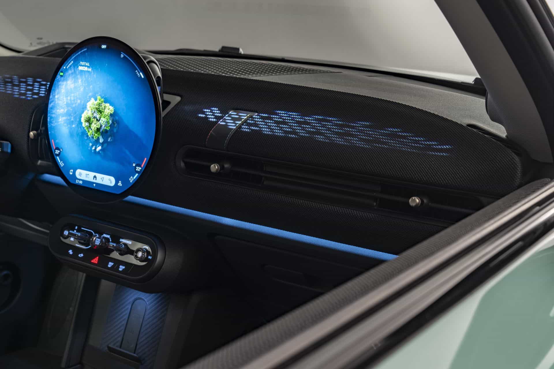 One completely new feature for the model is MINI Experience Modes, which features two projectors that beam graphics onto the dashboard as a form of upgraded mood lighting. It even has a personal mode that allows users to select a photo of their choosing via the MINI app and have it projected onto the dash. The system blends the color of the chosen photo into the rest of the car’s interior lights to make it look like it’s seamlessly integrated with all the interior illumination.