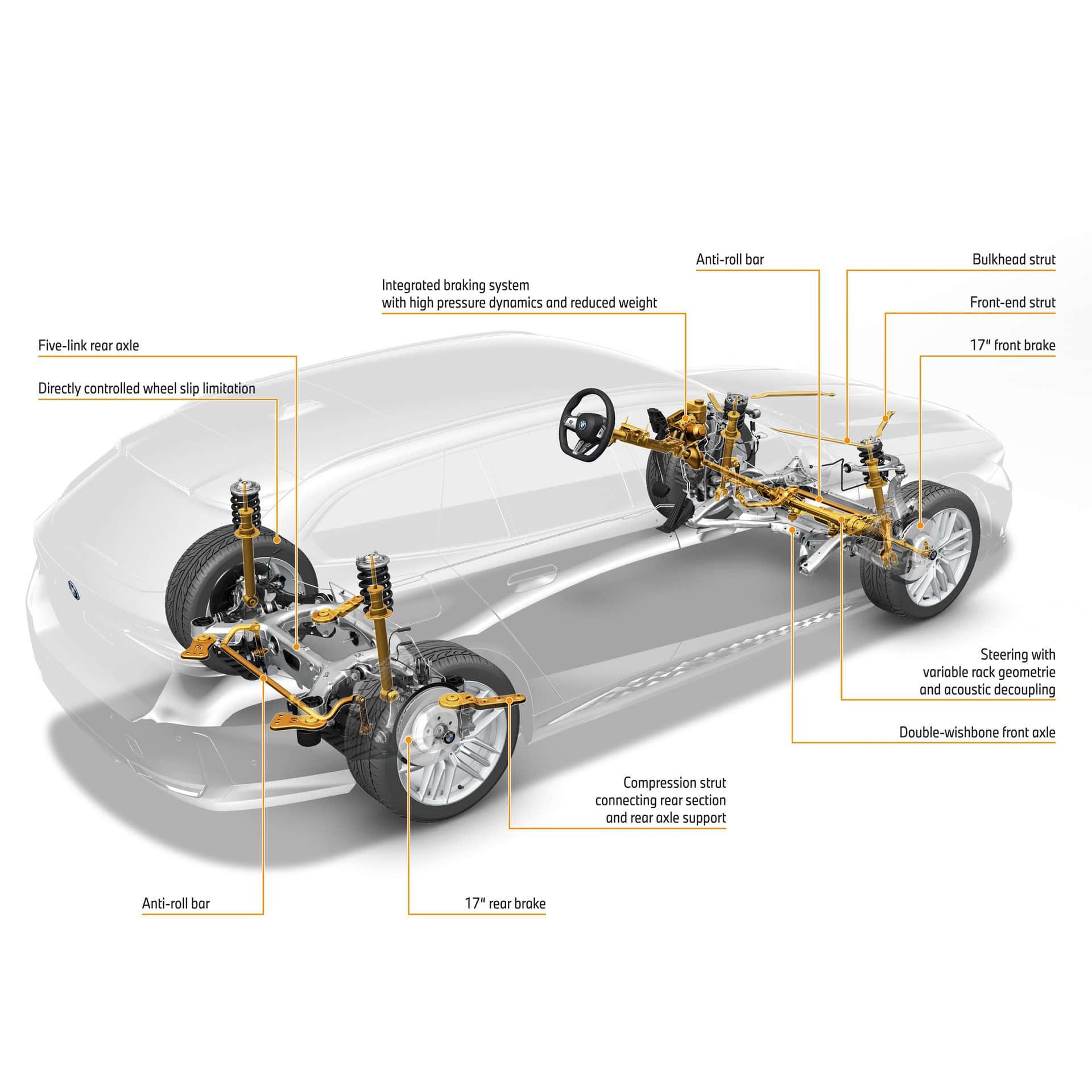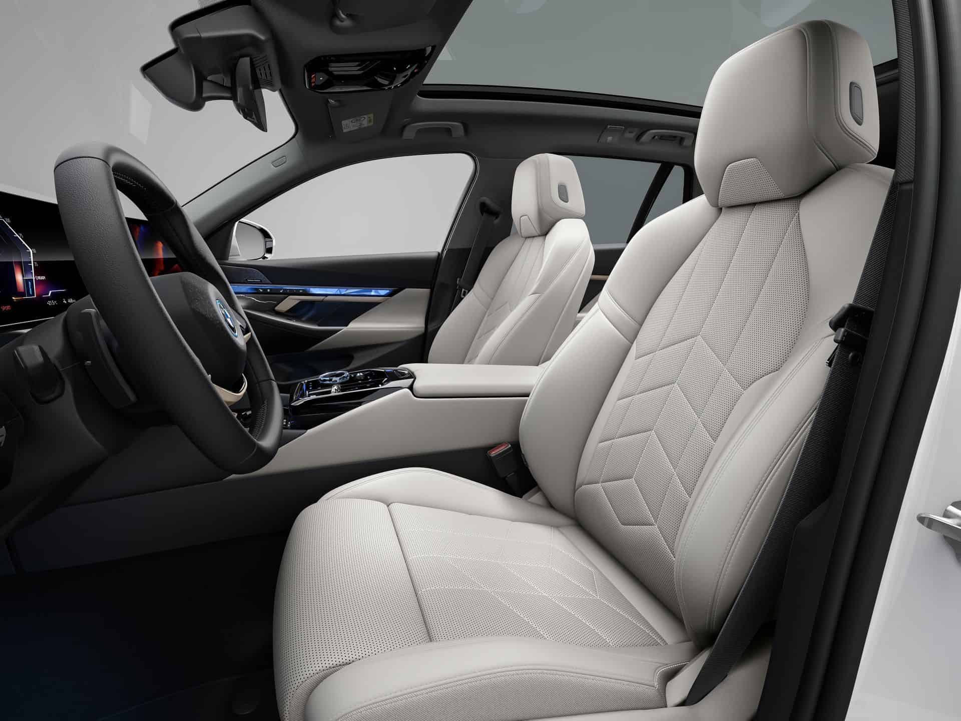 The electric wagon maintains the same cargo capacity as its counterparts with a combustion engine. This stands in contrast to the electric sedan, where the luggage area of the i5 Sedan goes down by 30 liters (to 490 liters) over the gasoline/diesel/plug-in hybrid model. Choosing the electric wagon provides 570 liters behind the seats and a substantial 1,700 liters after lowering the rear backrests. The length, width, and height of the cargo compartment remain identical to that of a 5 Series Touring with a conventional engine.