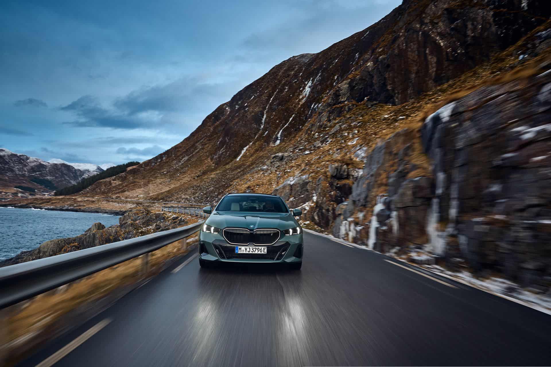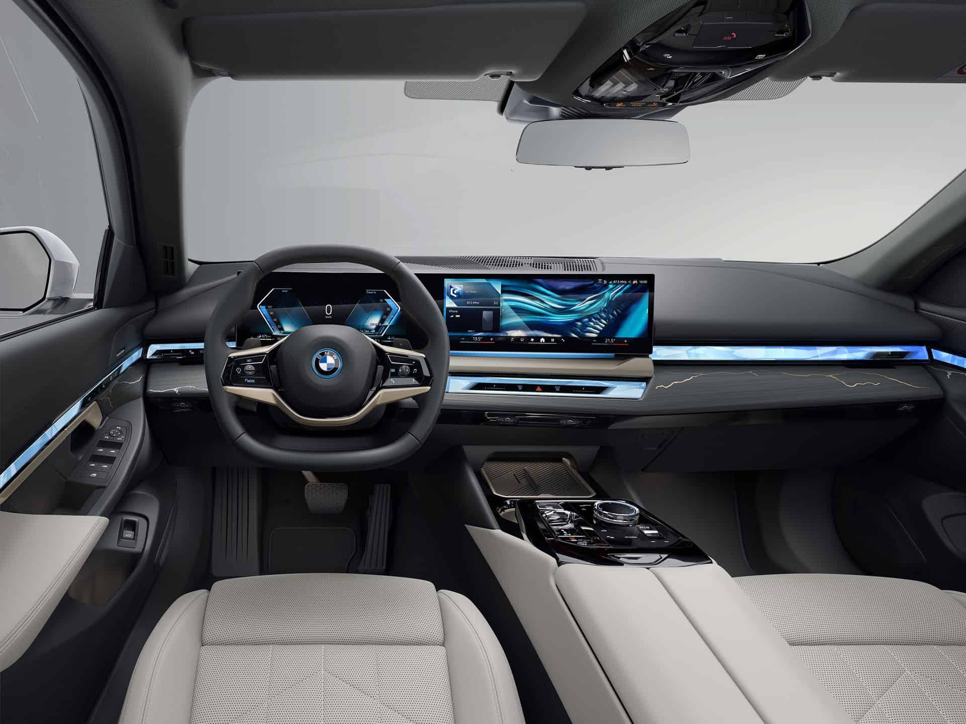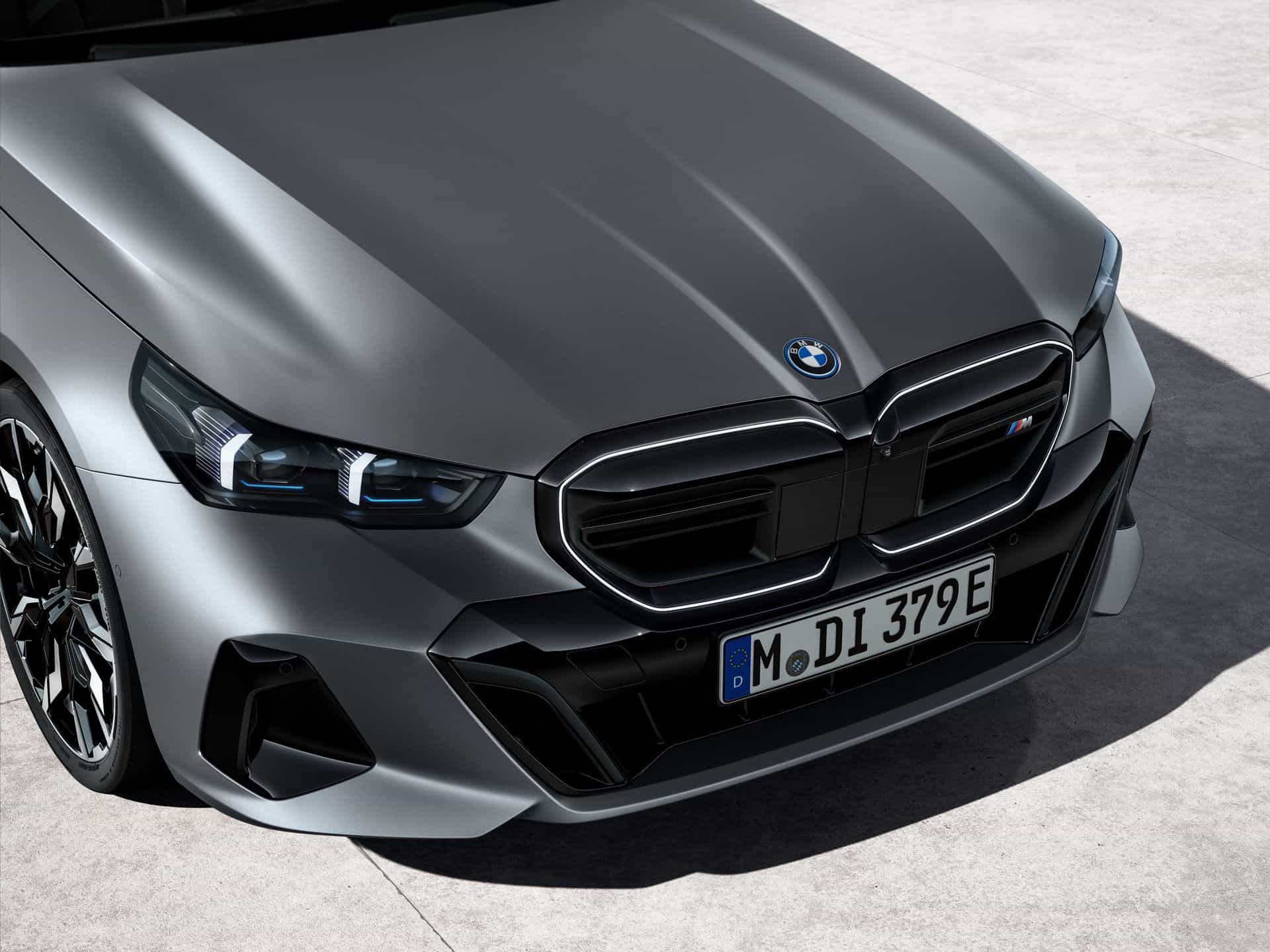BMW isn’t taking any risks with the design considering the car looks exactly as one would expect. It comes in the familiar eDrive40 and i5 M60 versions, both featuring a closed-off grille. The kidneys have distinct designs depending on the model, with the eDrive40 opting for vertical bars and an “i” logo, while the i5 M60 showcases horizontal slats and an “M” emblem.