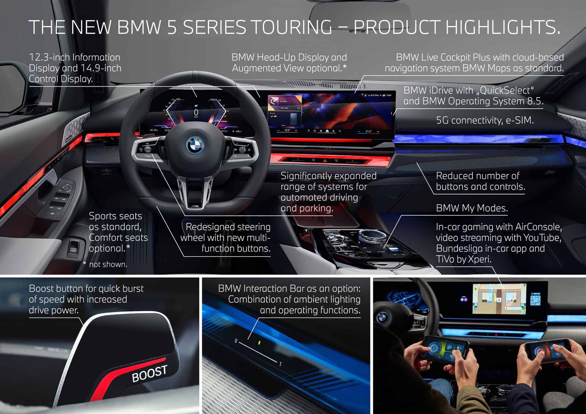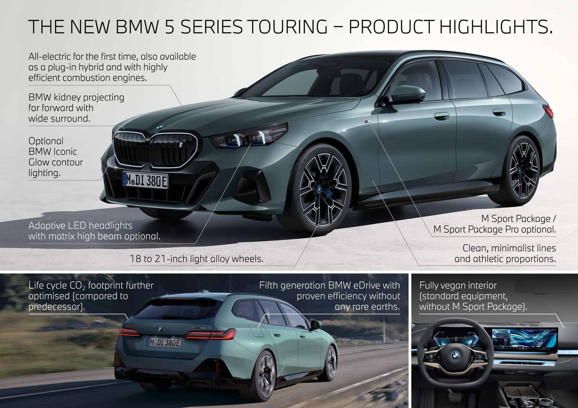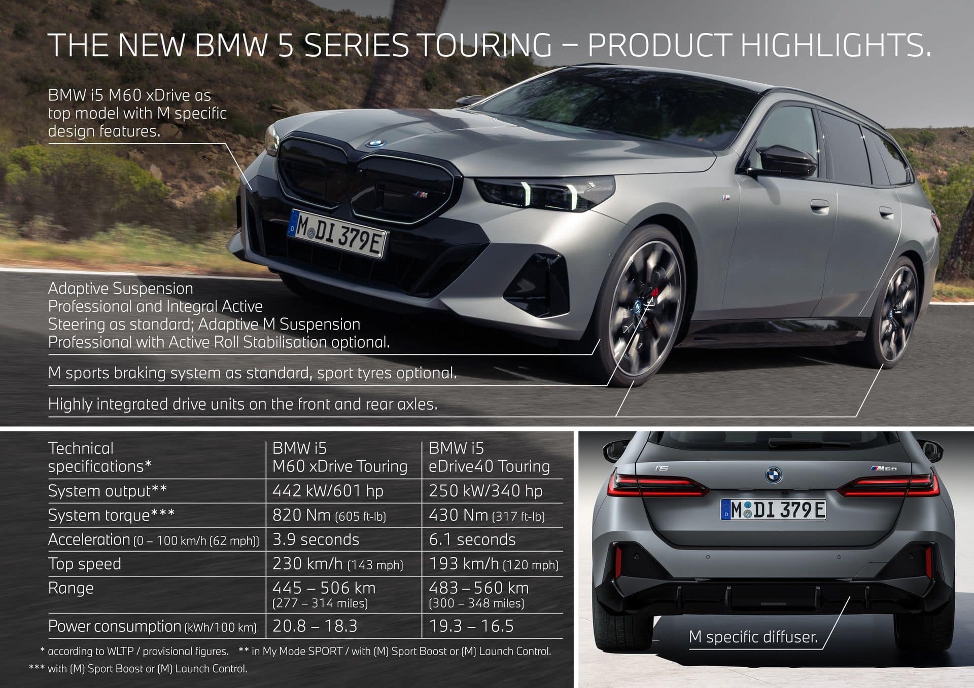 Both the i5 eDrive40 and i5 M60 xDrive will be available at the launch of the new 5 Series Touring, which will hit the European market in May. Additional regions will follow in June. Later in 2024, the M5 Touring (G99) will be added to the lineup with a plug-in hybrid V8 inherited from the XM.