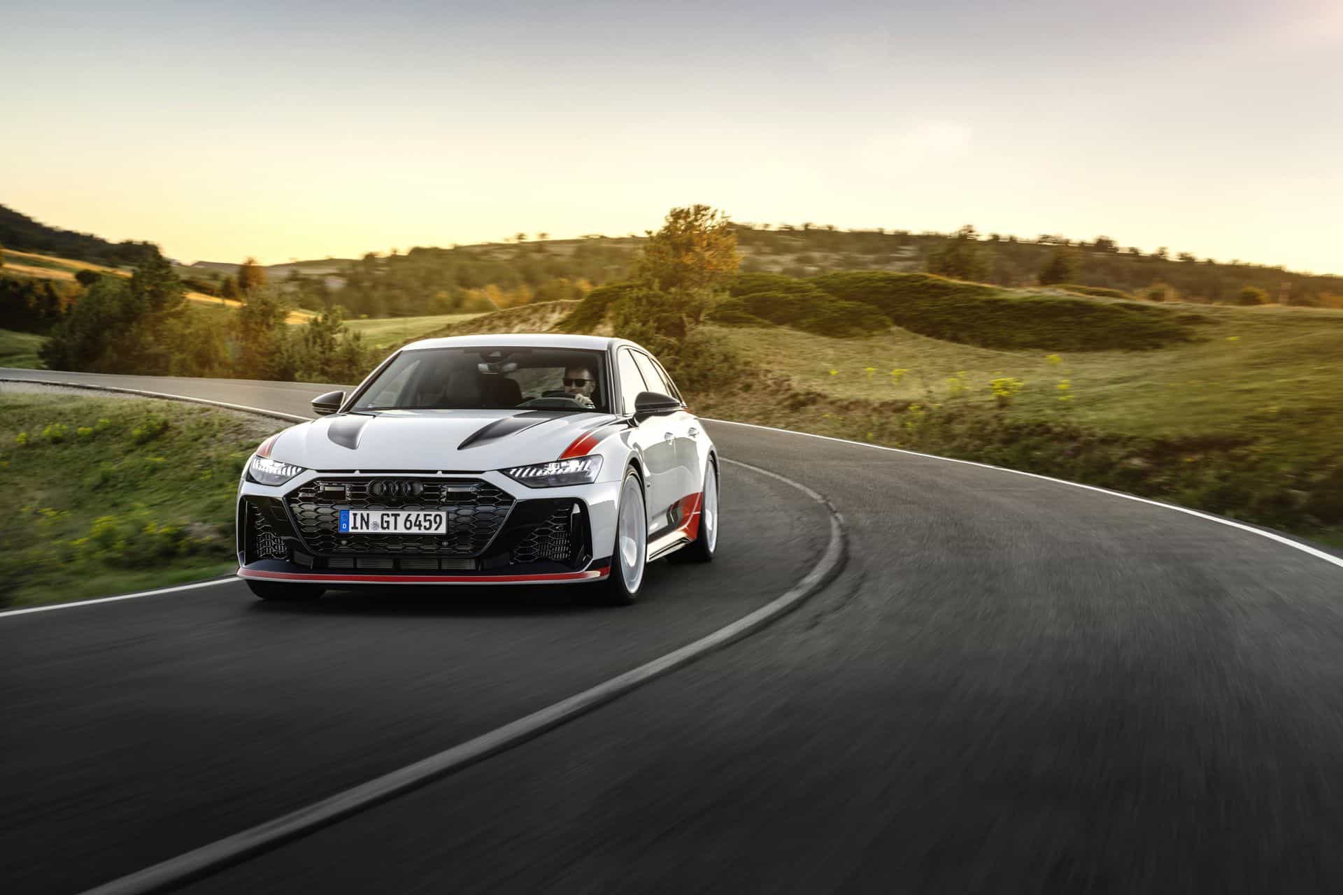 Design wise, the Audi RS 6 Avant GT extensively utilizes carbon fiber for various components such as the hood, fenders, and bumpers. Additionally, it will sport a distinctive roof edge spoiler and a novel, rail-less roof spoiler. Complementing its unique aesthetic, the GT model will be equipped with exclusive 22-inch wheels in Avus White. Enhancements also include ceramic brakes for superior stopping power and a manually adjustable coil-over suspension system. According to Audi, this setup allows for the RS 6 to be lowered by an extra 10 mm beyond the minimum height achievable with the Performance model’s adaptive ride height system.