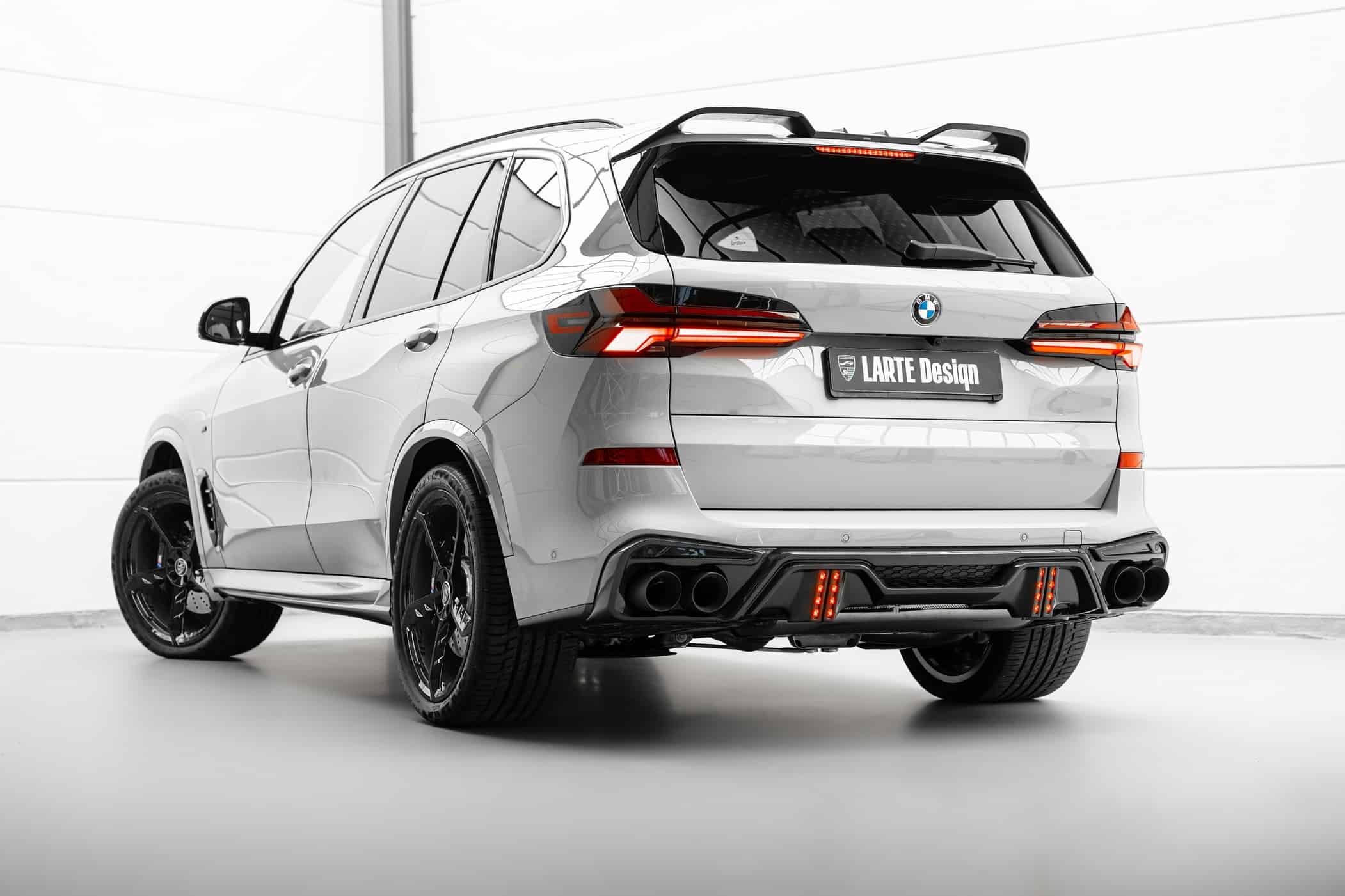 The profile has been subjected to a few modifications as well, including beefier side skirts along with forged wheels available in different designs and in sizes varying from 21 to 23 inches. Larte Design installed new mirror caps and gave the front fenders prominent faux air intakes. The rear is dominated by X5 M-esque quad exhaust tips, but you’ll also notice a roof spoiler and a new diffuser with dual vertical bars serving as brake lights.