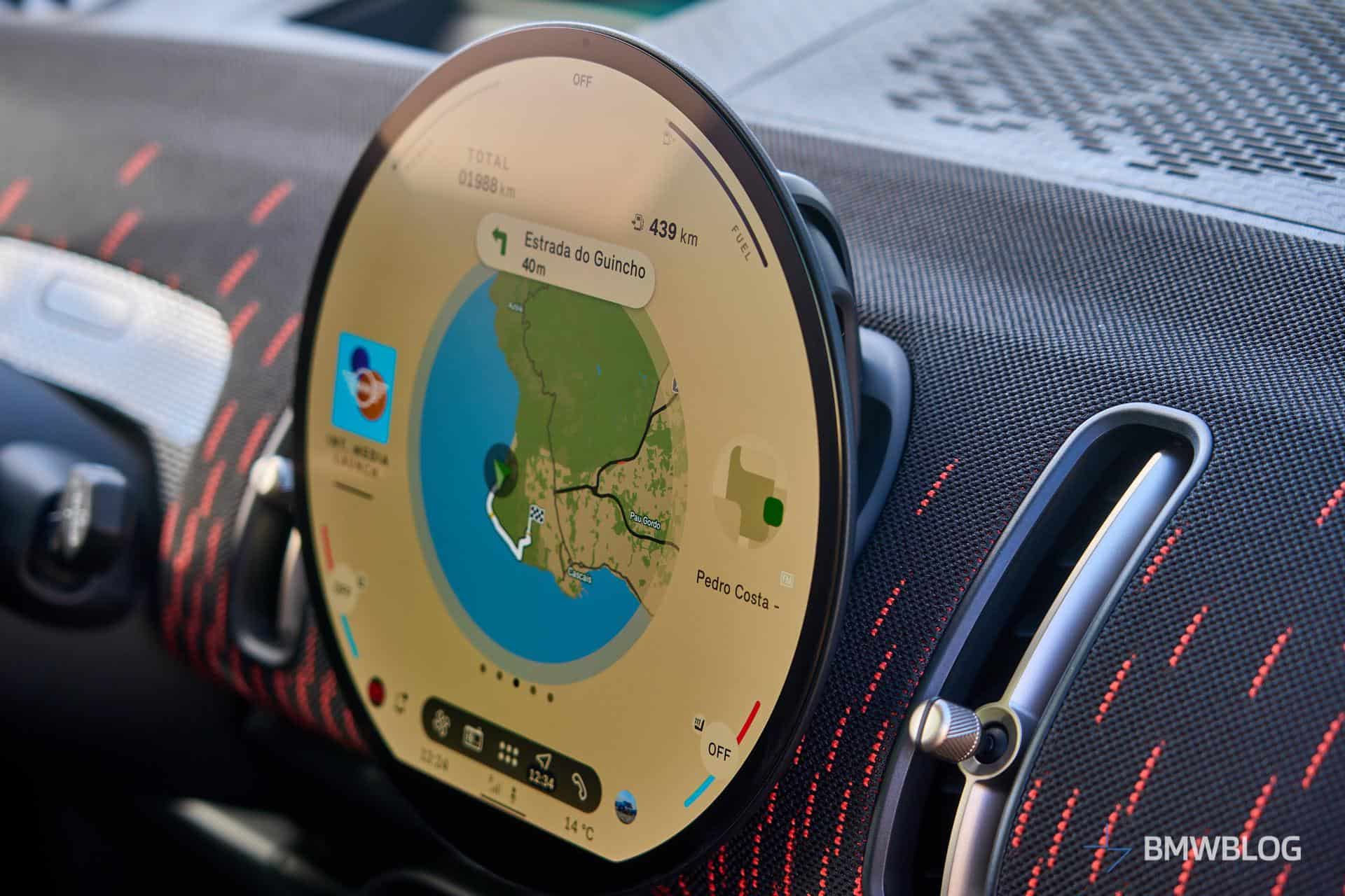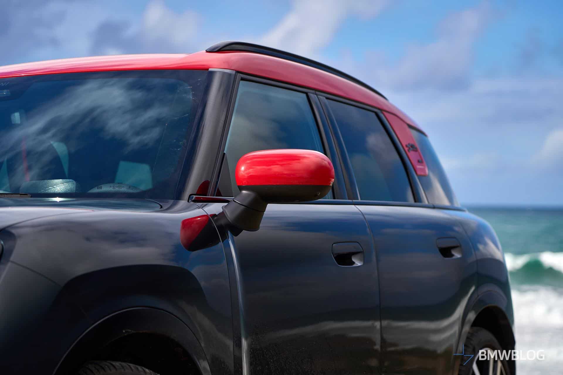 Painted in Midnight Black Metallic with Chilli Red accents on the roof and mirrors, the 2025 Countryman JCW has chunky 20-inch wheels with a two-tone finish and a flag-like design. The version MINI decided to showcase had dark roof rails, blacked-out badges, and that discreetly updated John Cooper Works logo. The exterior theme carries over inside the predominantly black cabin with red contrasting accents. If the black look isn’t your cup of tea, MINI also had a Countryman JCW in Nanuq White in Portugal.