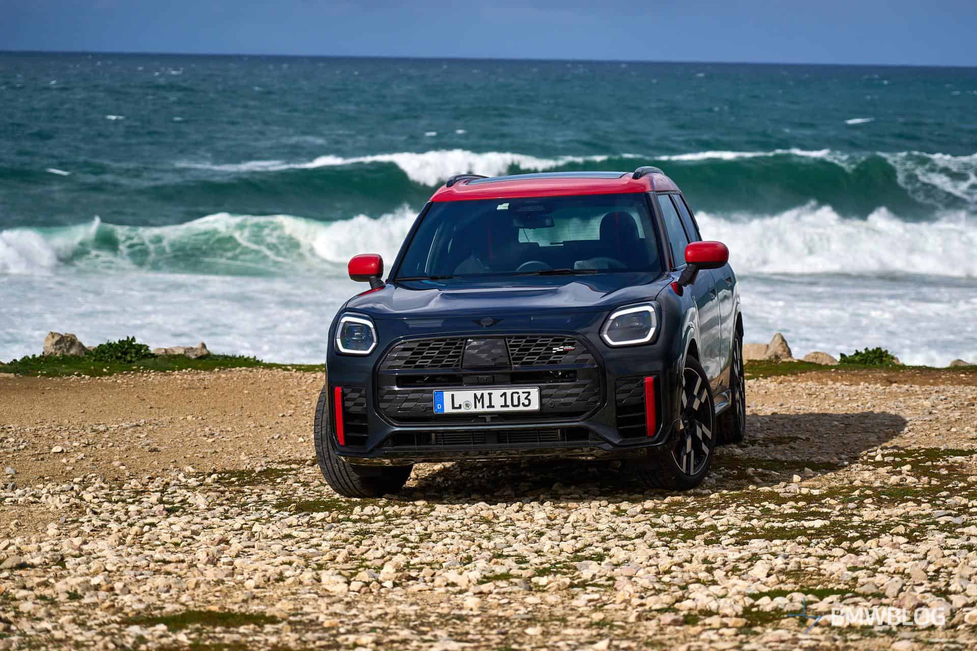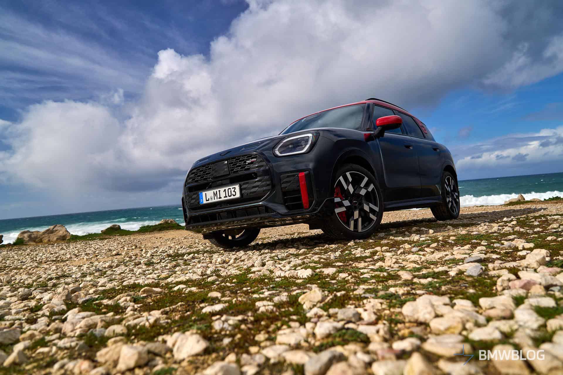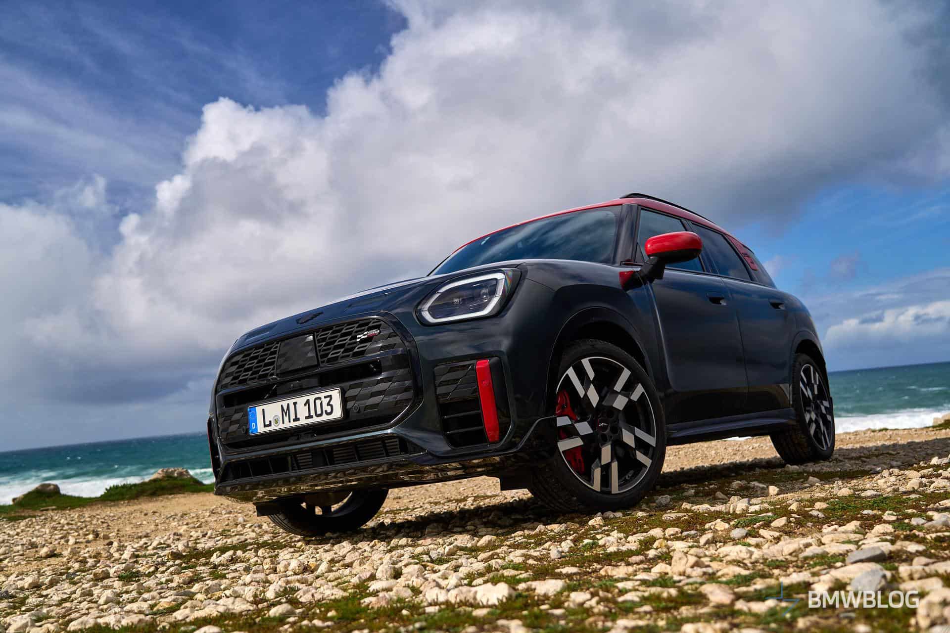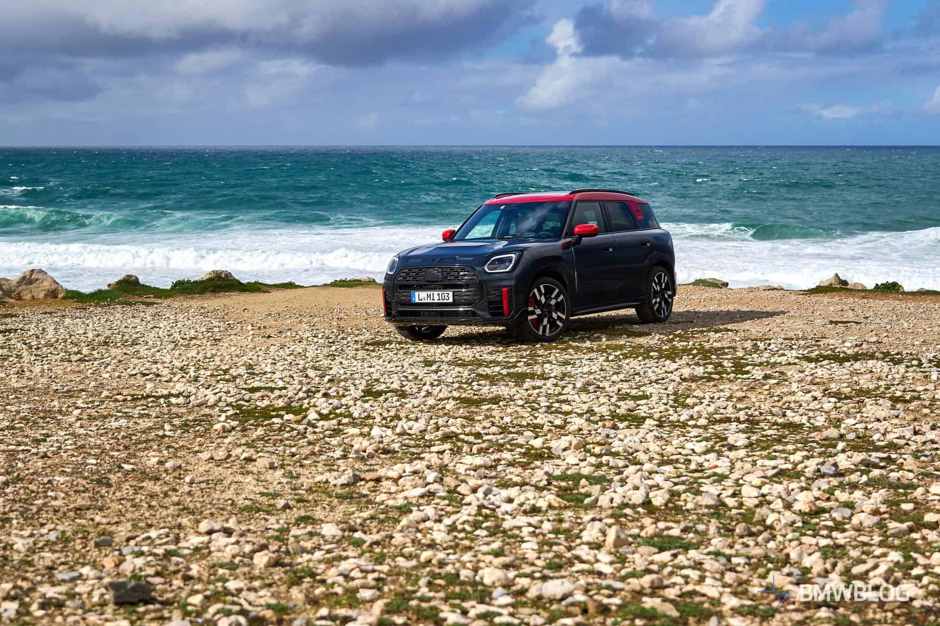 MINI invited us to Cascais in Portugal to get acquainted with the new Countryman. We’ve already shown you the fully electric SE ALL4 model but there was also an entirely different all-wheel-drive version on location. Yes, we’re talking about the fully fledged John Cooper Works model. It shouldn’t be confused with the namesake John Cooper Works Trim that the Oxford-based marque is also selling with visual upgrades but no performance enhancements.