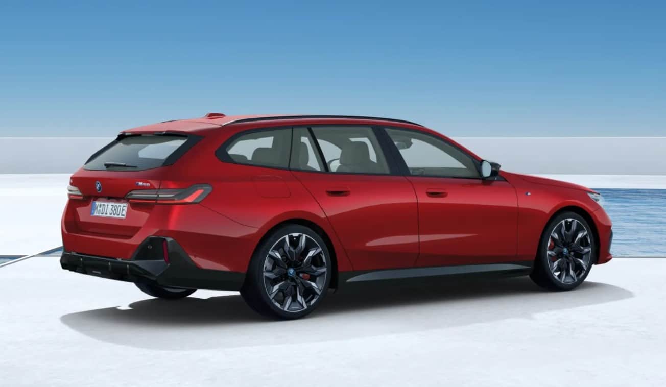 Instead, the M Lite 5 Series with a long roof is now completely electric. This i5 M60 Touring is painted in Fire Red, also known as Vegas Red in the United States where the G61 will remain a forbidden fruit. The luxury wagon from Bavaria is shown here with the 21-inch wheels (Style 954) and the M Sport Package Pro. The latter combines Shadowline accents – including for the headlights – with red brake calipers and M colors on the seatbelts.