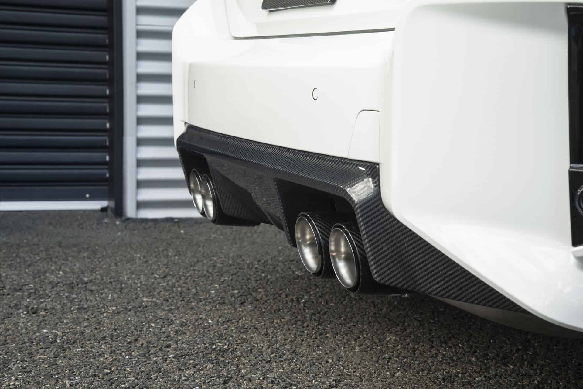 At the heart of this aero program are four key components: a front lip spoiler, side skirts, a rear diffuser, and a trunk spoiler. Each piece, crafted from the finest 2X2 Carbon, was a testament to the tuner’s commitment to quality and aesthetics. The choice of material was deliberate—2X2 Carbon is revered for its strength and lightweight properties, ensuring that the car’s performance is enhanced without compromise.
