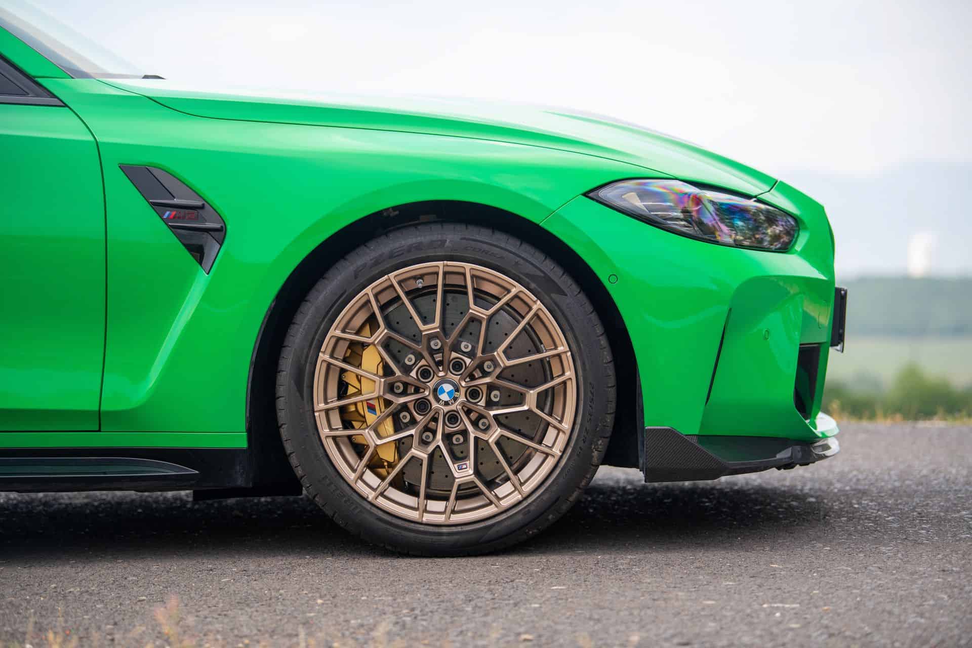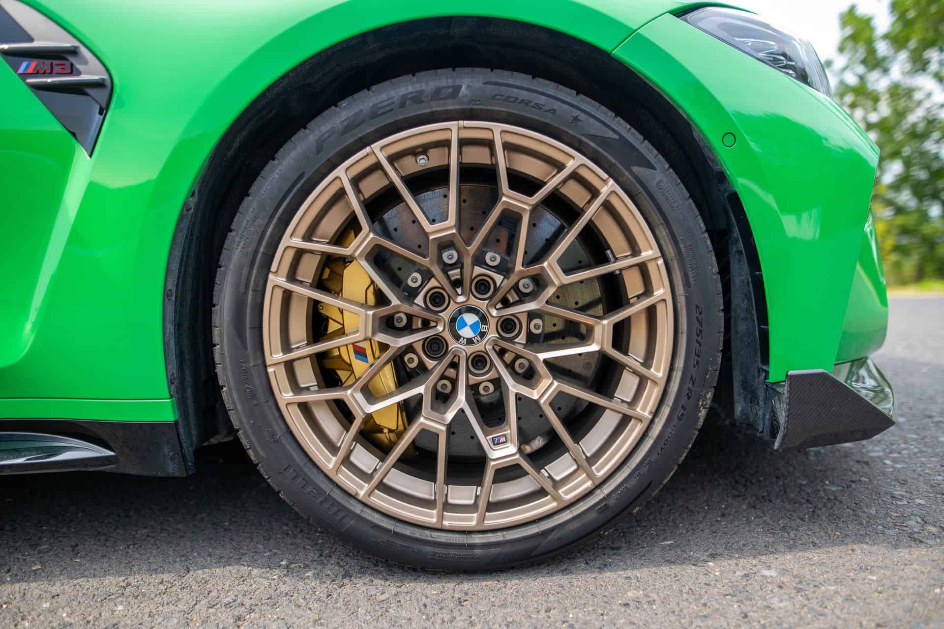 Rather than the M3 Competition’s Michelin PS4S tires, the BMW M3 CS gets Michelin Pilot Sport Cup 2 tires as a no-cost option. They’re not quite as aggressive as the M4 CSL’s Cup 2 R tires but they’re close. And they do make a difference on the track. With its 3,915 lb curb weight, the BMW M3 CS is 75 lbs lighter than the M3 Competition