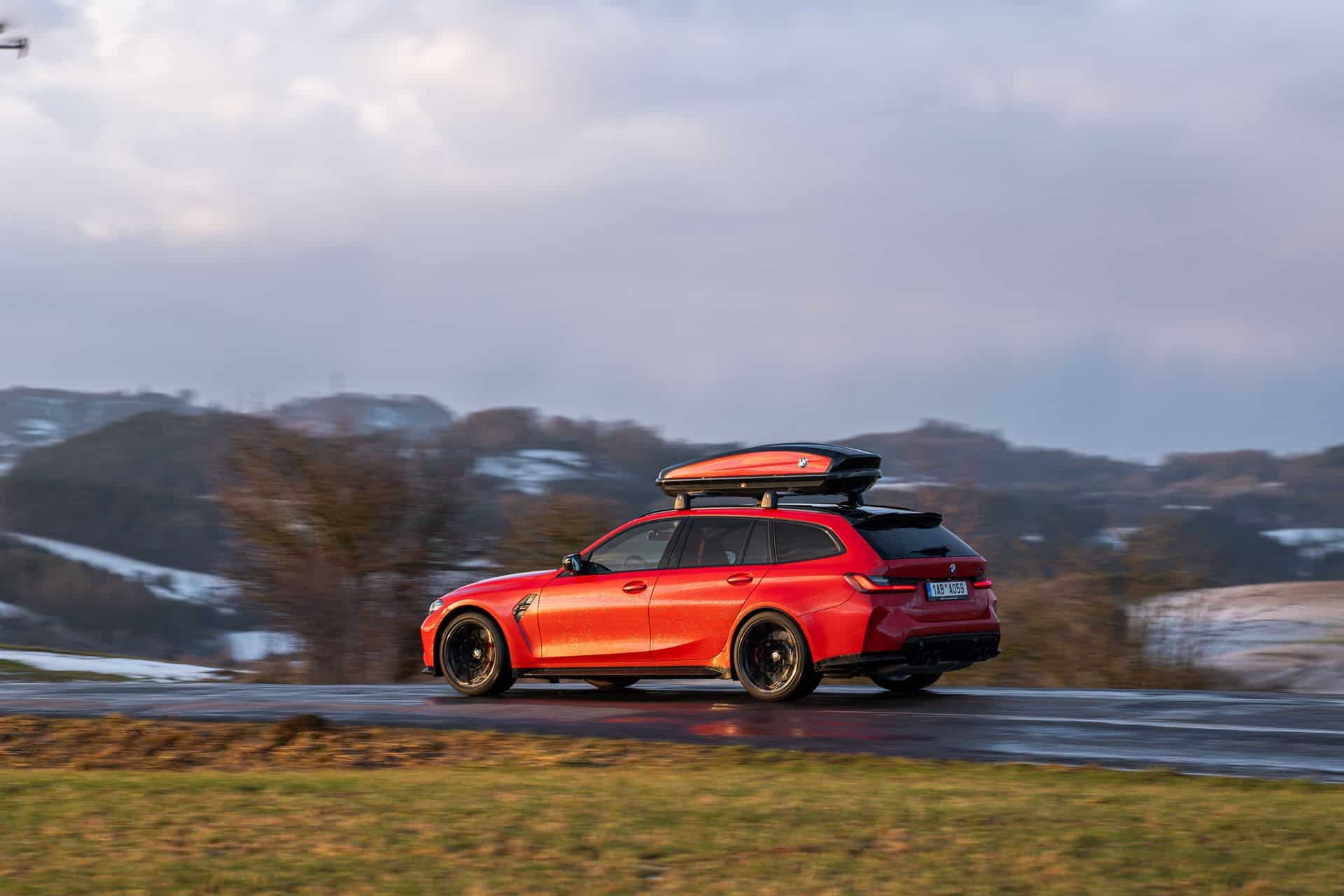 There is a twist to this drifting saga though: the BMW M3 Touring does it with a roof box from the BMW accessories range. Mounted atop the power-packed sports wagon, the roof box not only adds a unique aesthetic appeal but significantly enhances its utility by offering ample storage space for additional luggage.