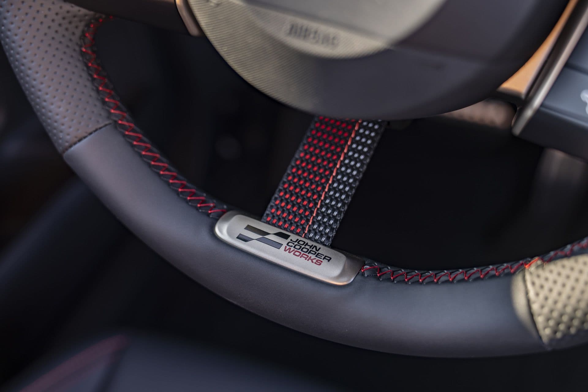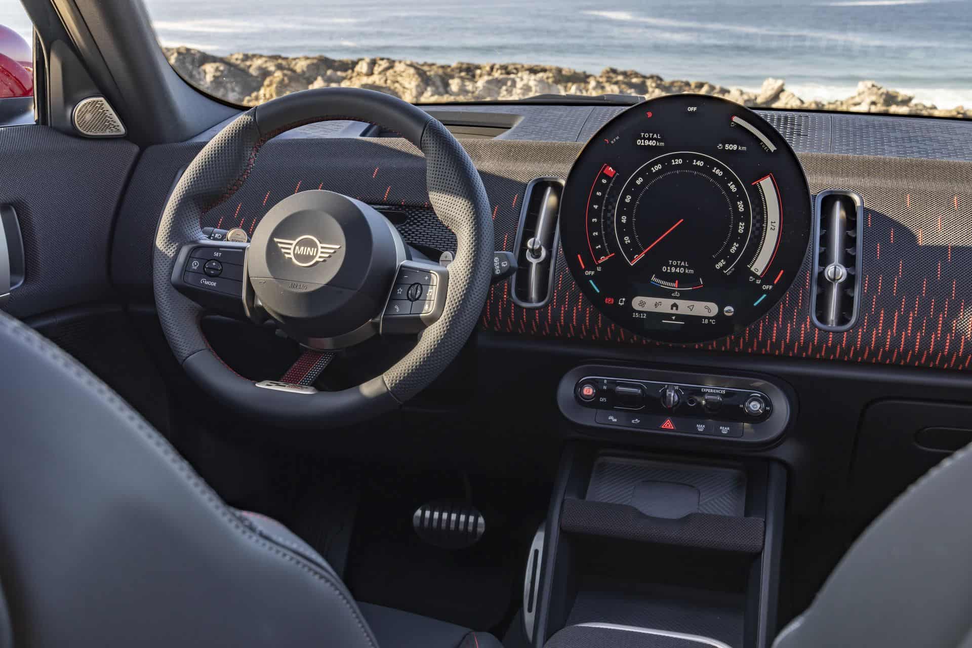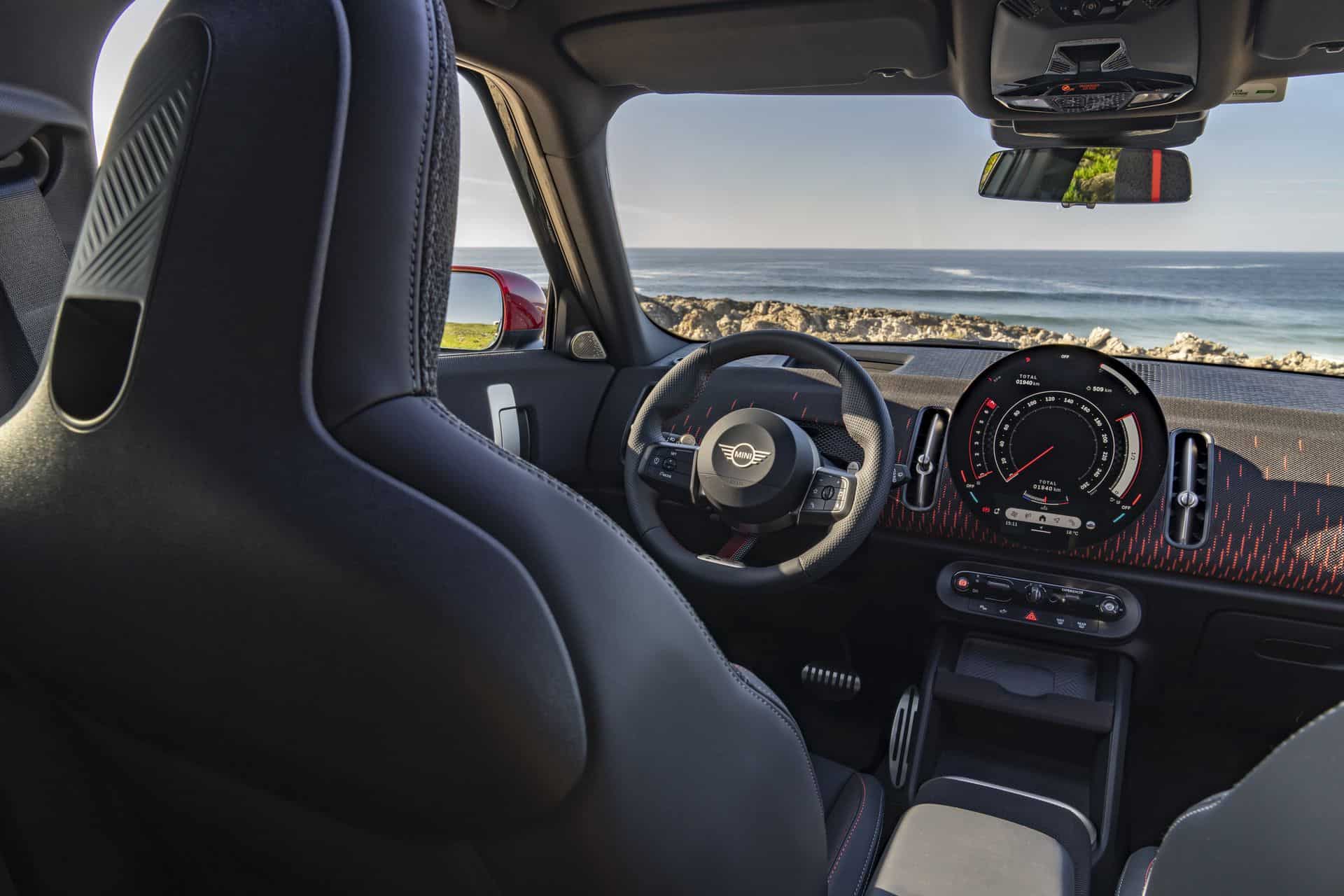 Being a John Cooper Works model, it’s expected that MINI would equip it with a distinct suspension setup. Accordingly, the 2025 MINI Countryman JCW is outfitted with a unique combination of adaptive dampers and springs tailored specifically for it. Fun fact: this is the Adaptive M suspension tuned in JCW style. Next, the steering benefits from a customized software map, enhancing its racier behavior as anticipated. The primary goal of these enhancements is to ensure that, despite its larger size, the Countryman JCW retains the quintessential MINI character—offering that exhilarating go-kart-like driving experience.