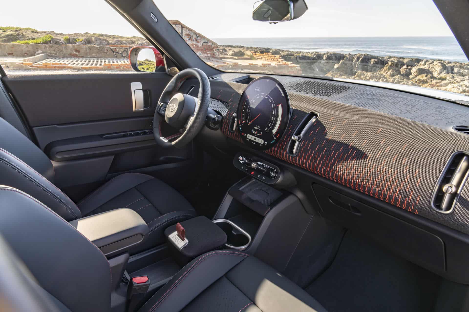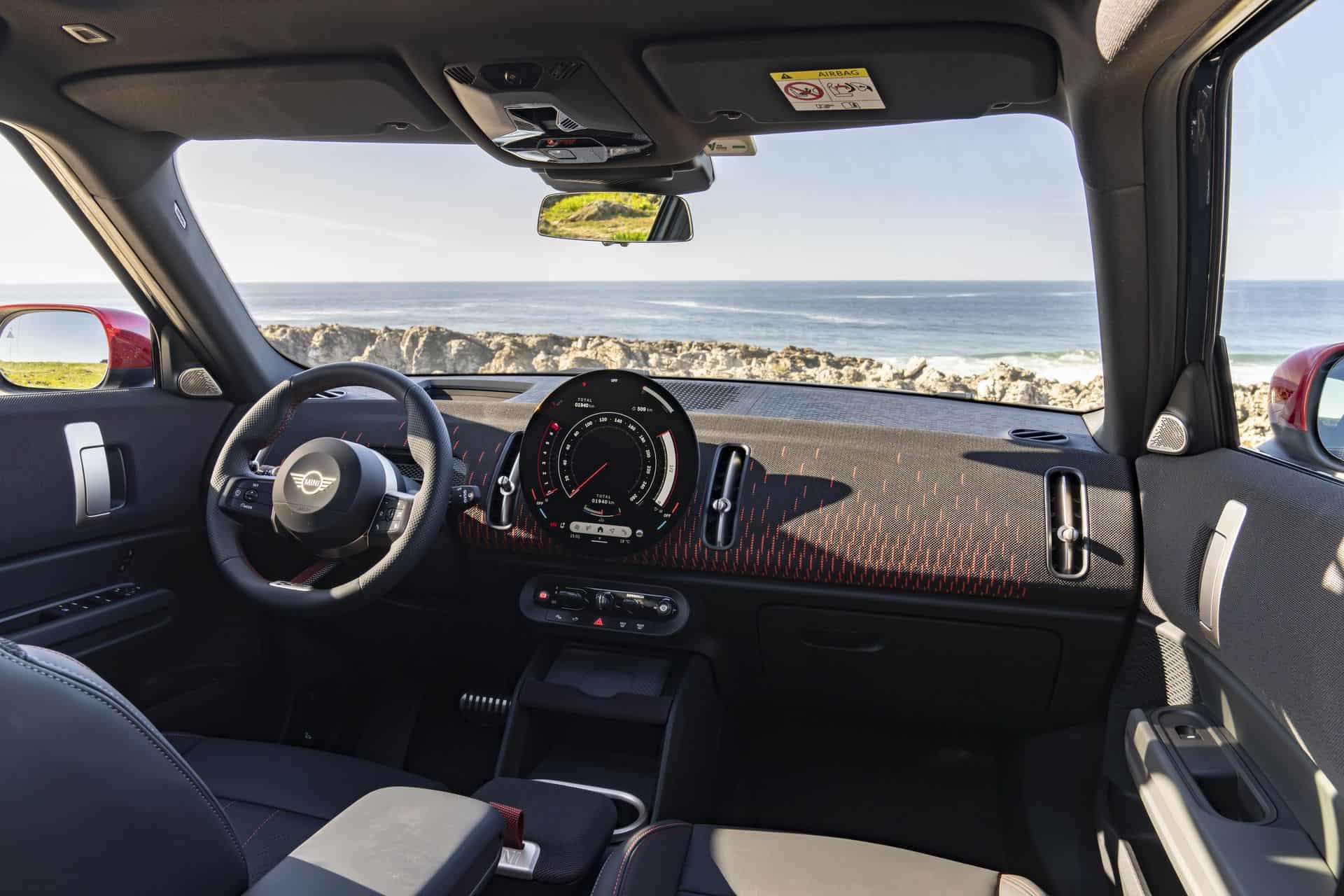 The designated route begins by winding through several city centers near the Atlantic Ocean around Cascais, offering an ideal setting to evaluate the everyday maneuverability of this sizable crossover. The Countryman has evolved into a true crossover, boasting considerable interior and cargo space. It’s immediately apparent that this iteration of the Countryman has matured, adopting a more rugged design that feels quintessentially British, more so than any of its predecessors. However, this evolution comes at the cost of the previous Countryman JCW’s charm, which seamlessly blended MINI’s iconic go-kart-like agility with the utility of a compact crossover SUV.