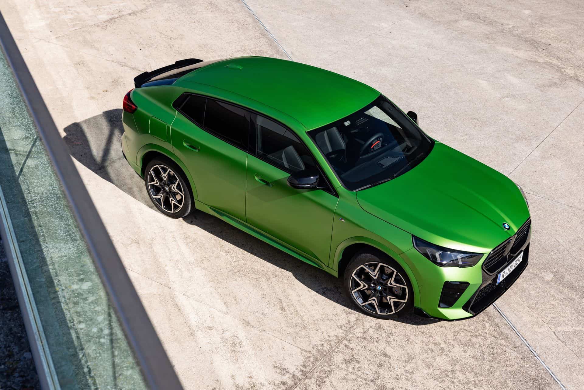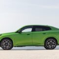 Viewing the car from the side reveals the evolutionary leap from its predecessor and highlights its minimal resemblance to the X1. The sloping roofline is the most noticeable feature distinguishing the two, lending a coupe-like style reminiscent of the X4 and X6 models. Despite the window frame bearing a resemblance to the previous X2’s sleek design, including an inverted Hoffmeister kink, the absence of roundels on the thick C-pillar introduces a more pronounced fastback silhouette.