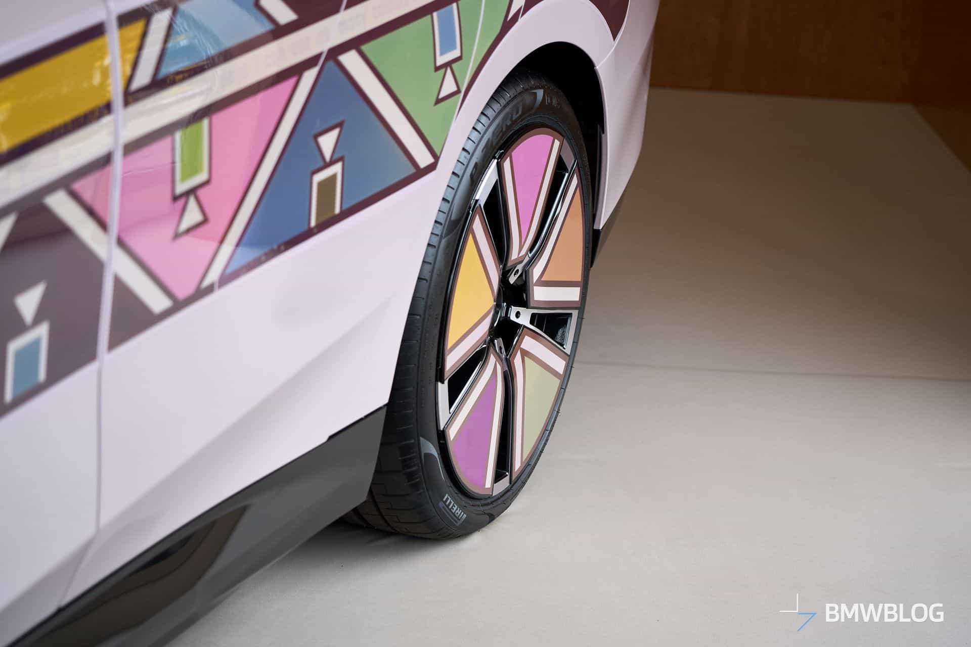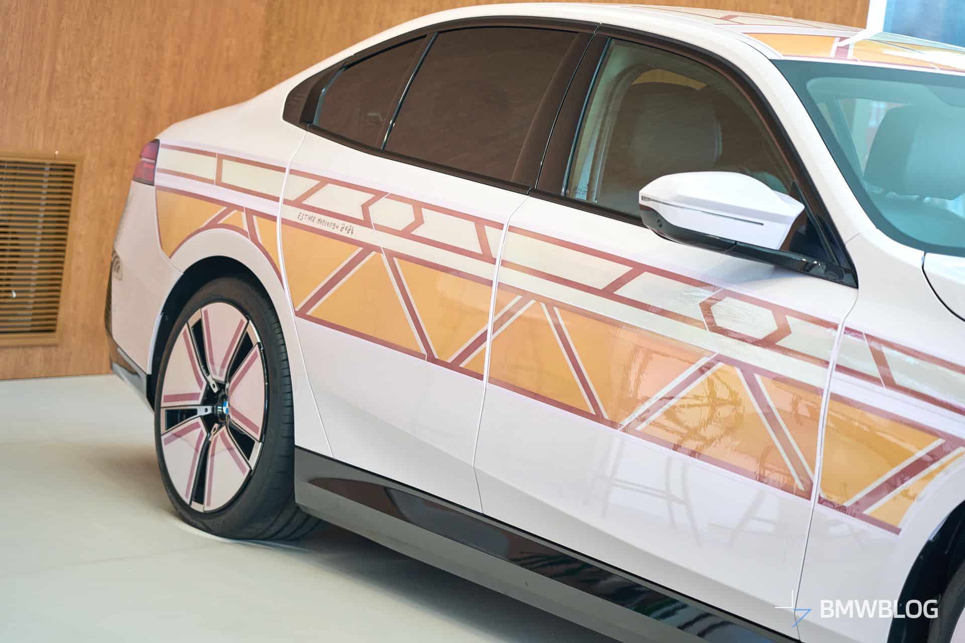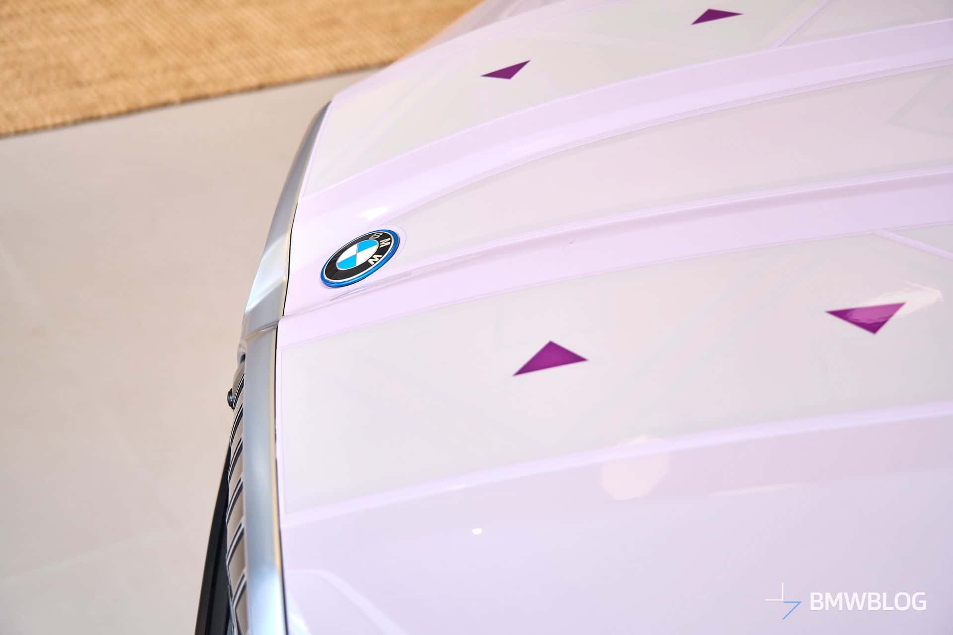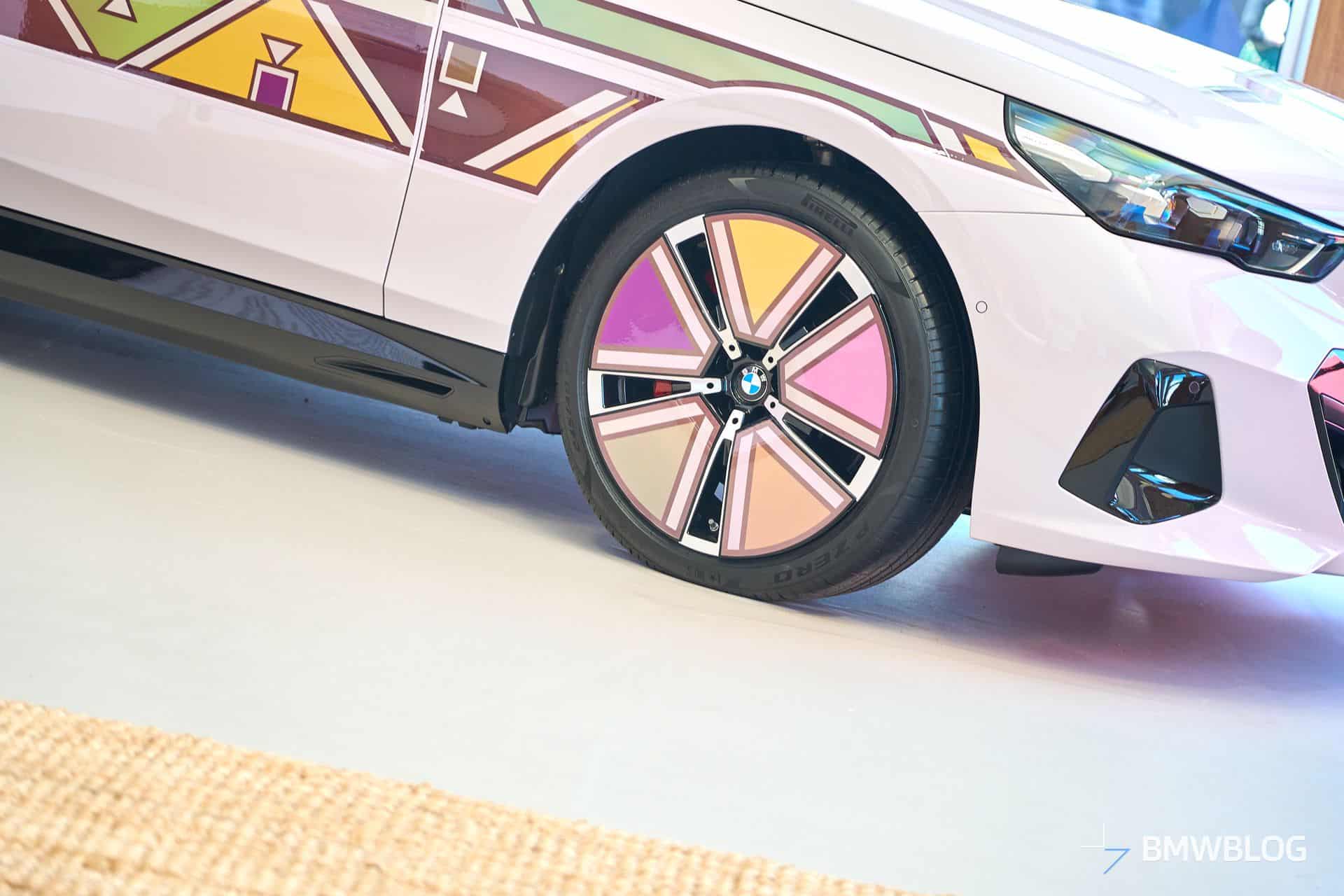 The color-changing body looks even more spectacular up close, and this i5 had a whopping 1,349 sections of laser-cut film. Each can be individually controlled, and there are now more colors to choose from than ever before. The Dee concept from 2023 CES was able to display 32 colors but there’s a richer variety in this one-of-a-kind 5 Series. The colors and patterns have been chosen to mimic the 12th BMW Art Car, a 525i E34 penned by South African artist Esther Mahlangu back in 1991.