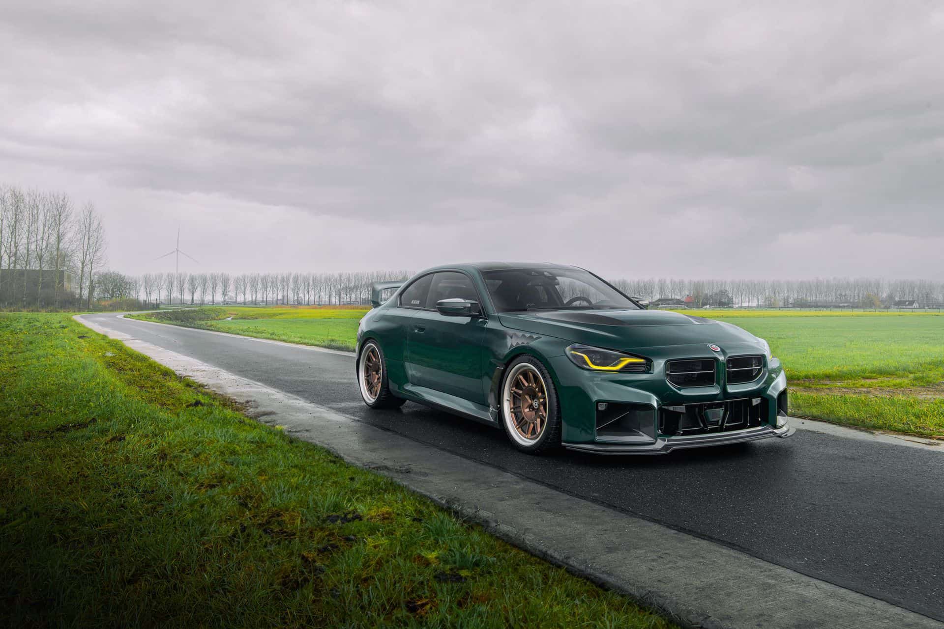 One of the most striking cars we saw at the 2023 Essen Motor Show last December was a BMW M2 GT modified to look like the M3 GT. The wild build is making the headlines again in new photos of the hardcore G87 built by aftermarket parts supplier GP Products. It’s got a full Alpha-N body kit and a British Racing Green finish as a nod to the spicy E36 version.