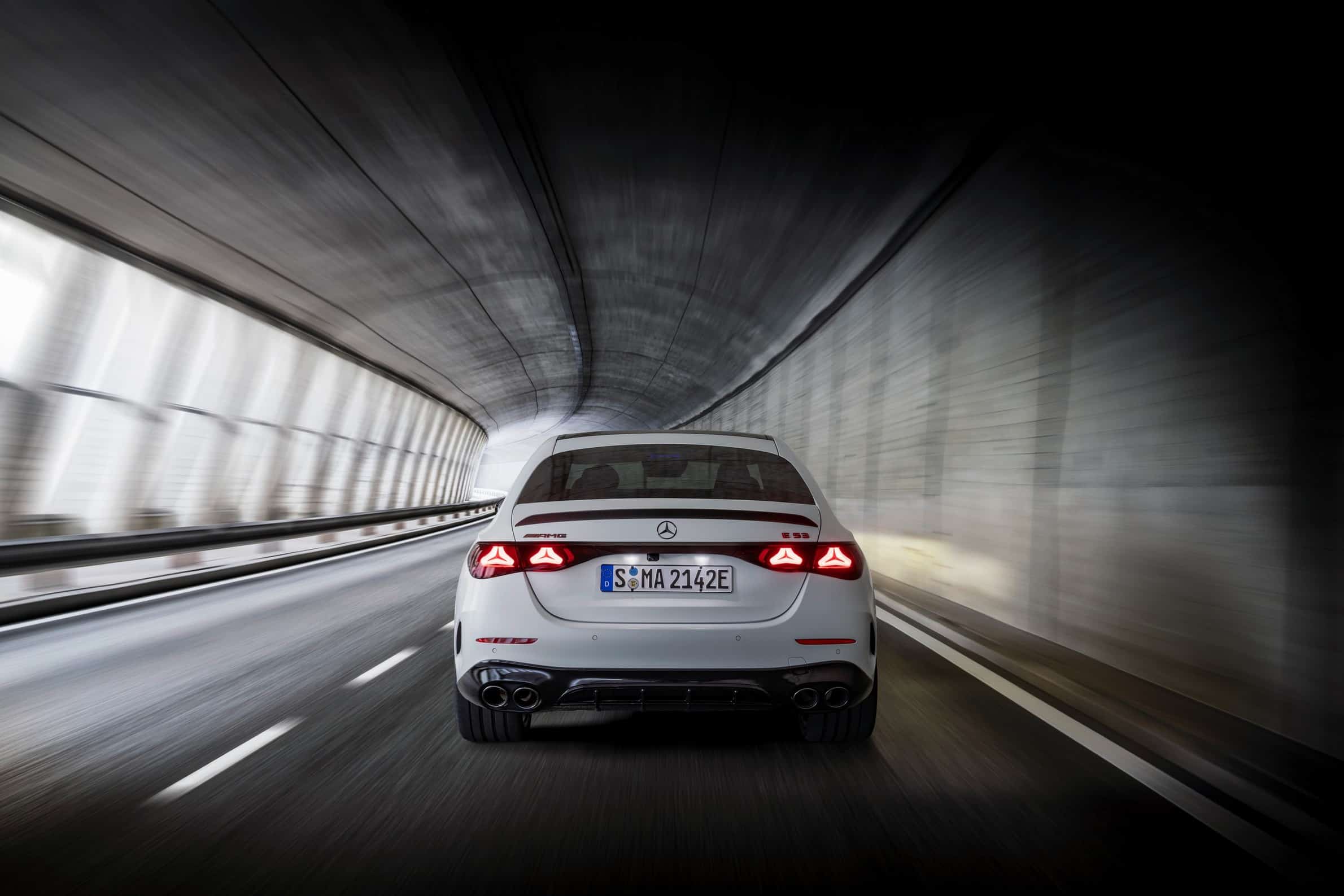 Because this is a plug-in hybrid at the end of the day, efficiency is also a selling point. Mercedes claims a fully charged battery lasts more than 62 miles (100 kilometers), albeit that’s in the optimistic WLTP cycle. Expect the EPA range to be lower. The new AMG E53 can reach 87 mph (140 km/h) without having to turn on the combustion engine. To replenish the battery, DC fast charging at 60 kW is supported, in which case it takes about 20 minutes to go from 10% to 80%.