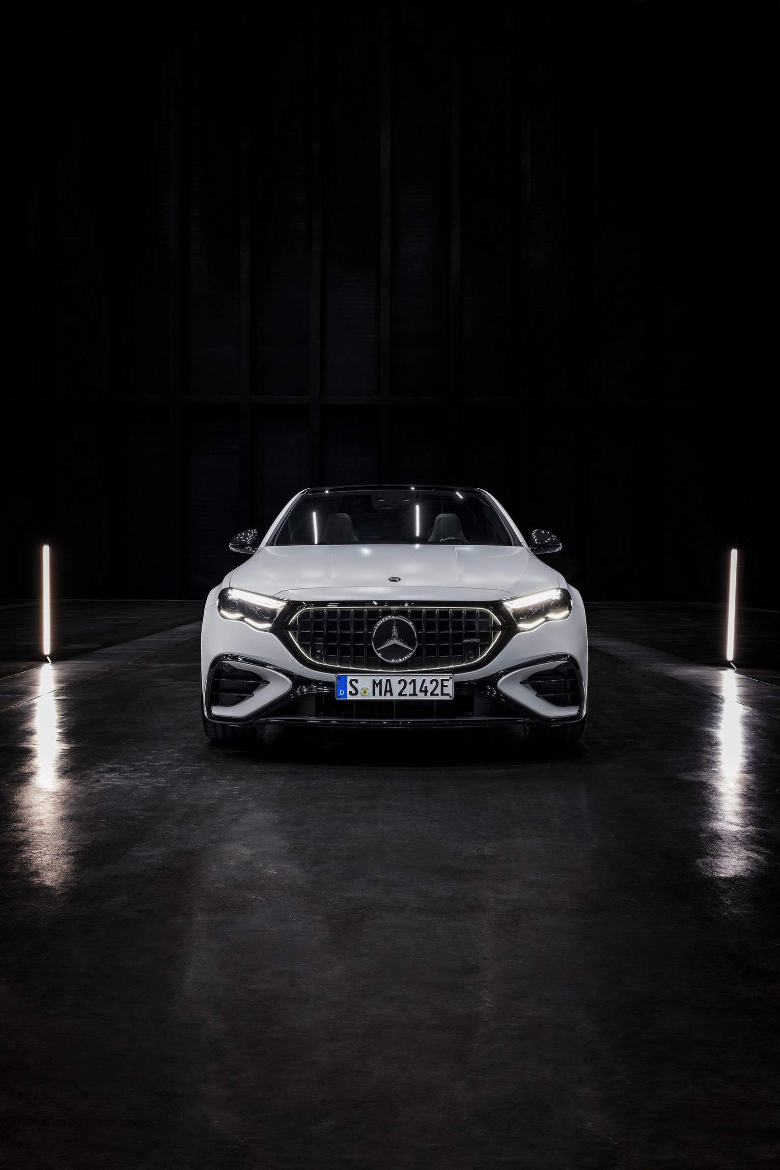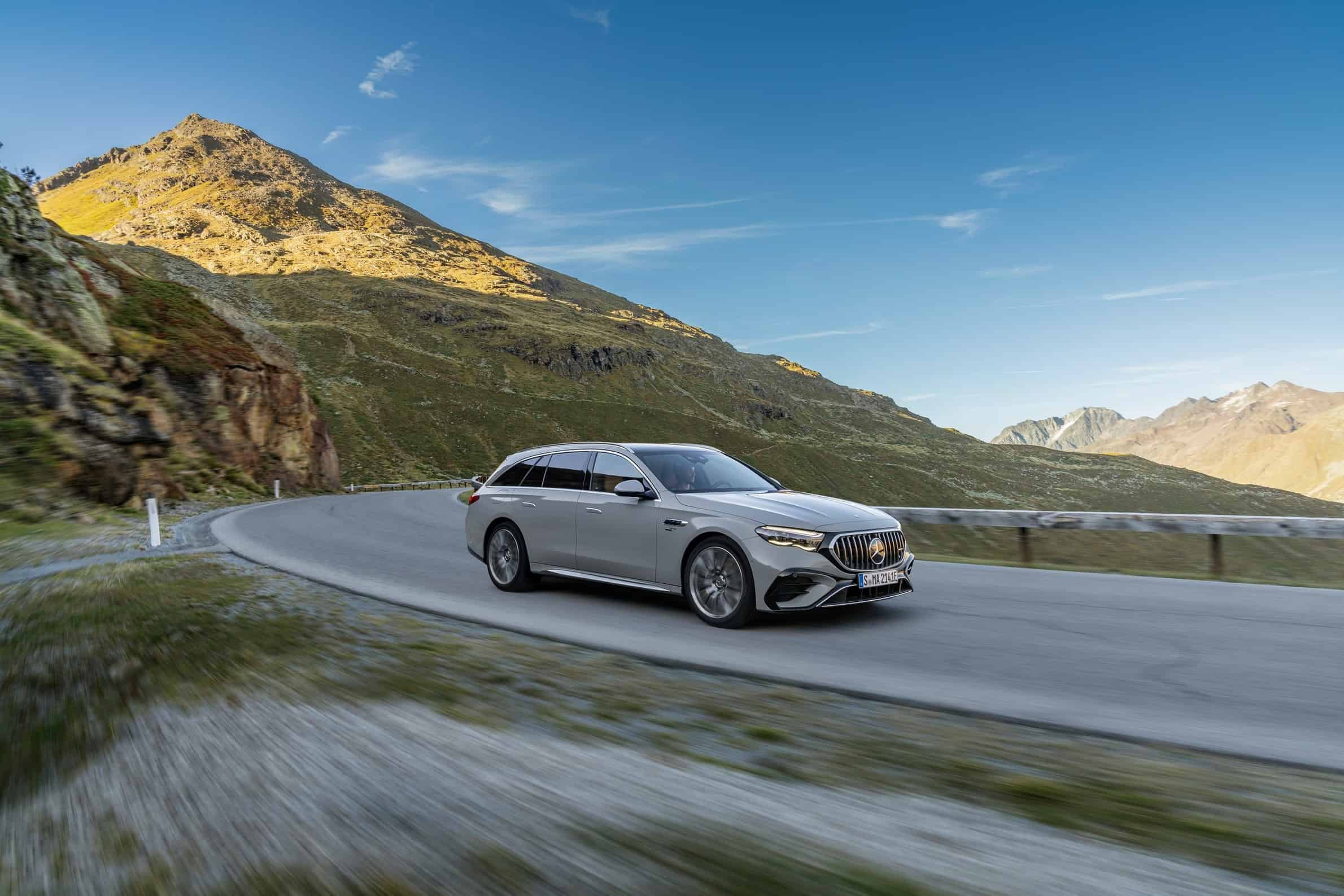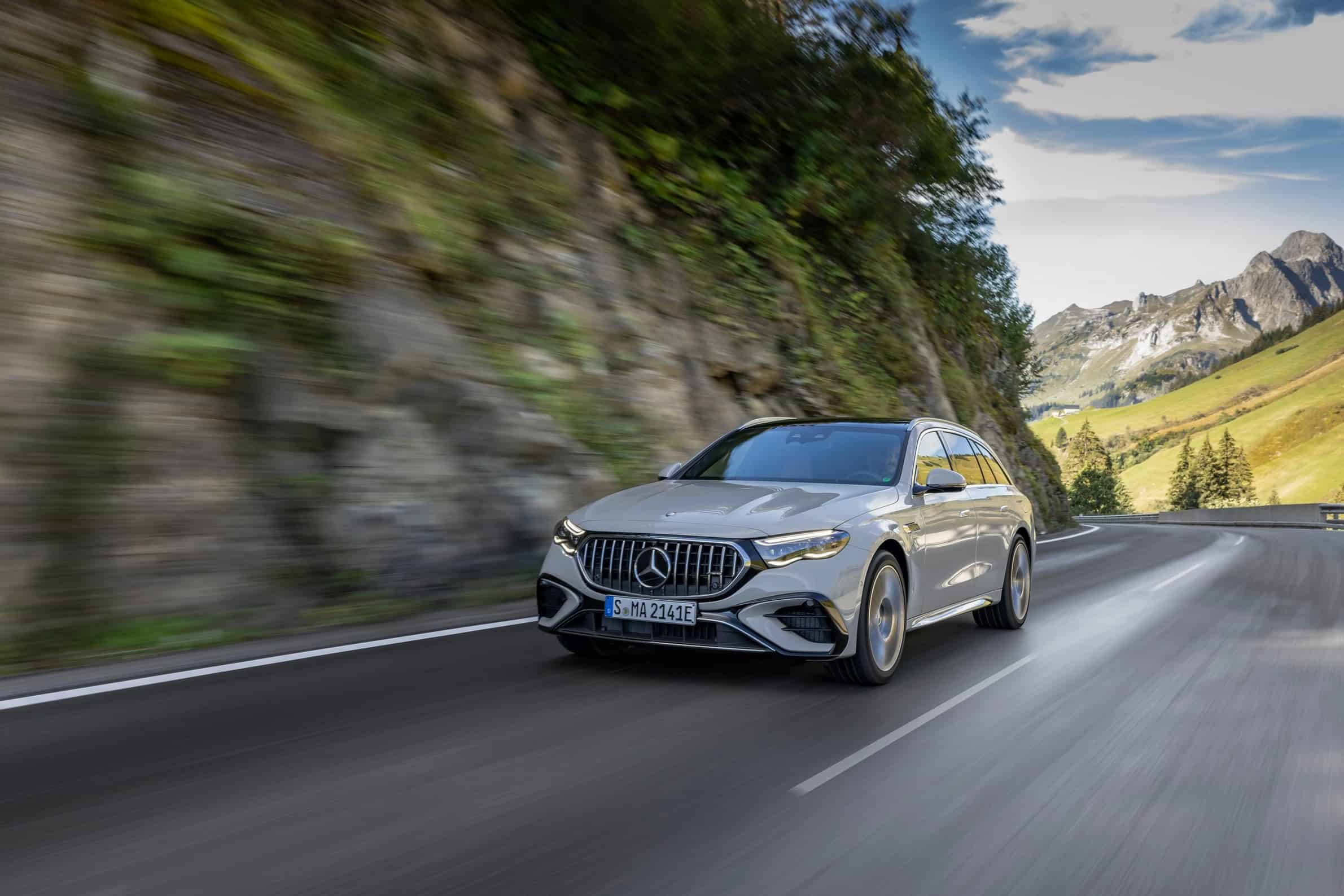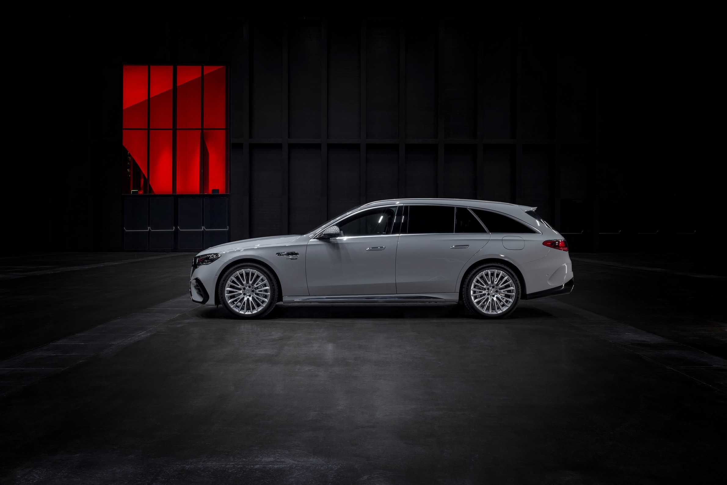 Mercedes will sell the AMG E53 as a more practical wagon as well, with both body styles getting a quad exhaust system, 19-inch wheels (up to 21 inches available), and a meaner front grille design. Because this new generation is a PHEV, there’s a charging port on the driver-side rear fender, mirrored by the gas cap on the other side. As expected, the lesser of the two AMG E-Class models has standard all-wheel drive, all-wheel steering, variable suspension with adjustable damping, extra struts for increased body stiffness, and chunkier brakes.