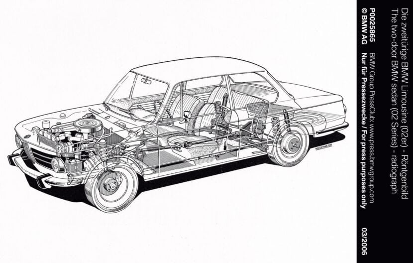 To reduce production costs, the 1800 engine was revised around this time with a capacity change from 1773 cc to 1766 cc, and BMW did this by combining the 2000’s 89 mm bore with the 71 mm crank from the 1600.