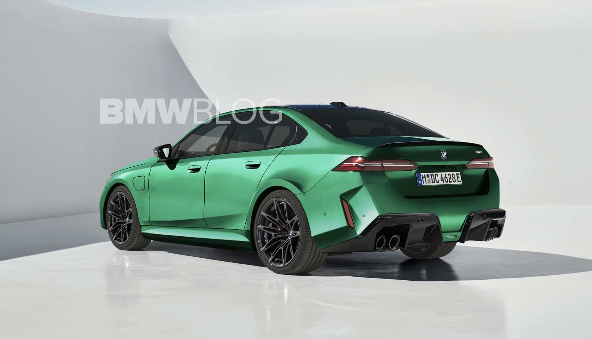 BMW plans to equip the super sedan with staggered wheels, featuring 20-inch ones at the front with 285/40/20 tires and 21-inch ones at the rear with 295/35/21 rubber. The next-generation M5 is rumored to weigh a substantial 2,435 kilograms (5,368 pounds), making it 130 kg (287 lbs) heavier than the fully electric dual-motor i5 M60.