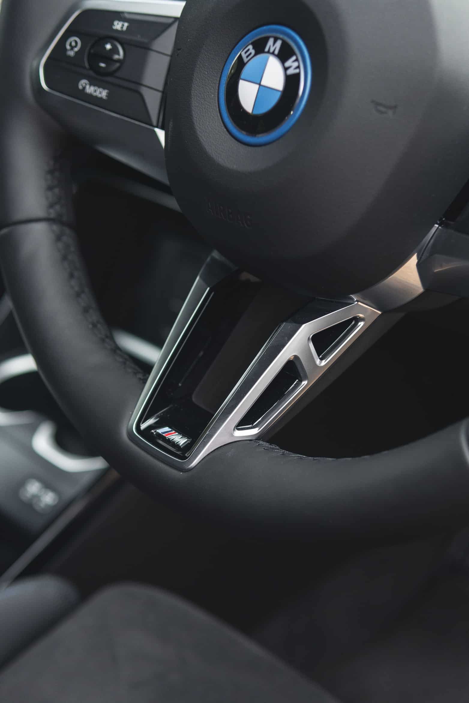 This iX1 is a lesser front-wheel-drive version but it does have the optional M Sport Package, Shadowline dark accents, and 19-inch wheels (871 M Style) featuring a two-tone color.