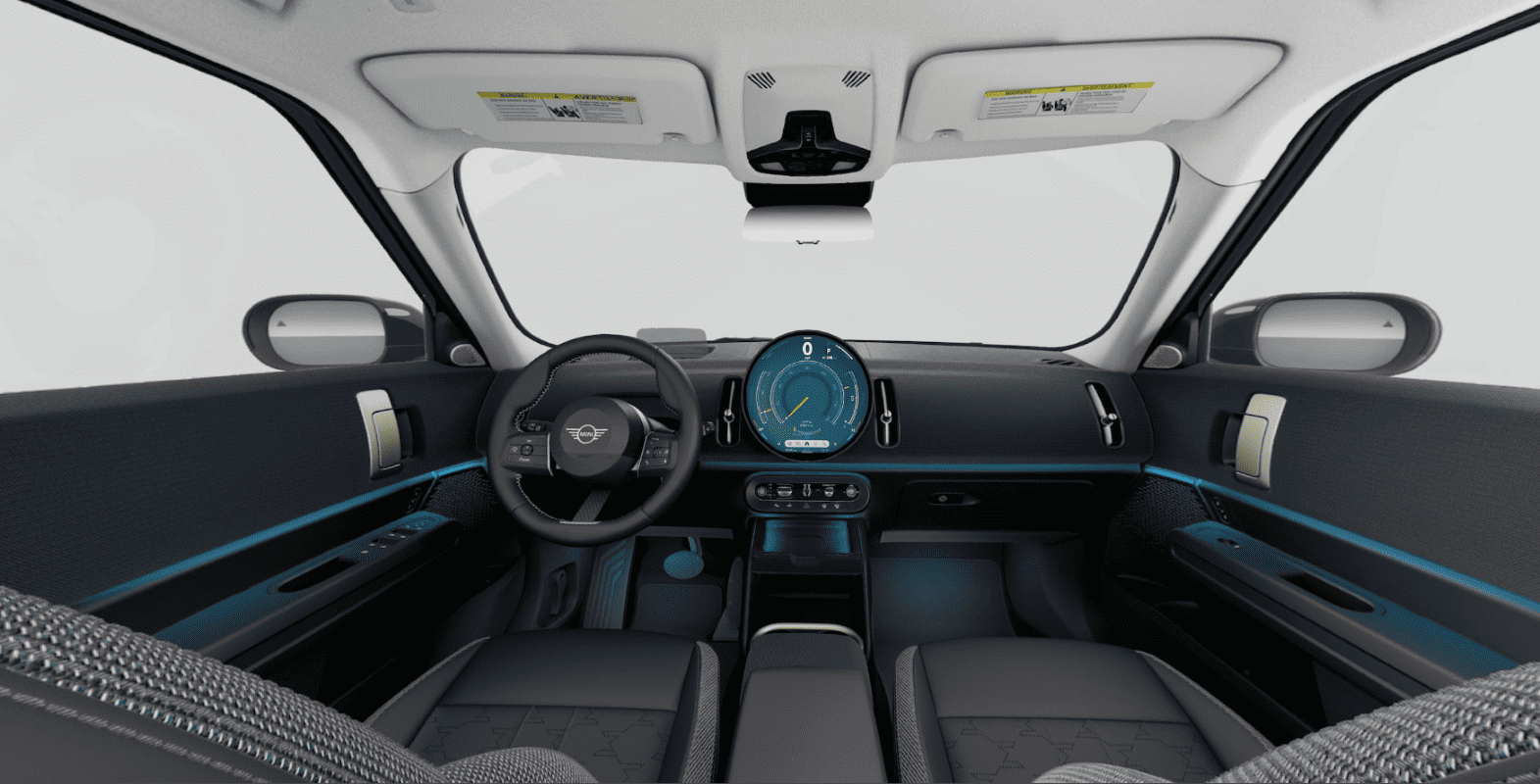 The new interior of the 2025 MINI Countryman is minimalistic but luxurious. The 2025 MINI Countryman S ALL4 has plenty of choices – brown, blue, beige, and black – while the 2025 MINI Countryman JCW ALL4 is only offered in black. Leather isn’t available, but Vescin is standard – think SensaTec or synthetic leather.