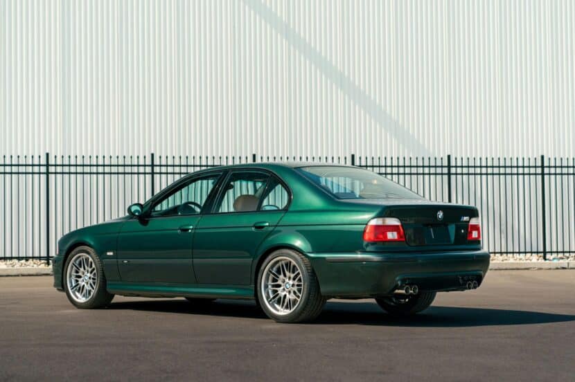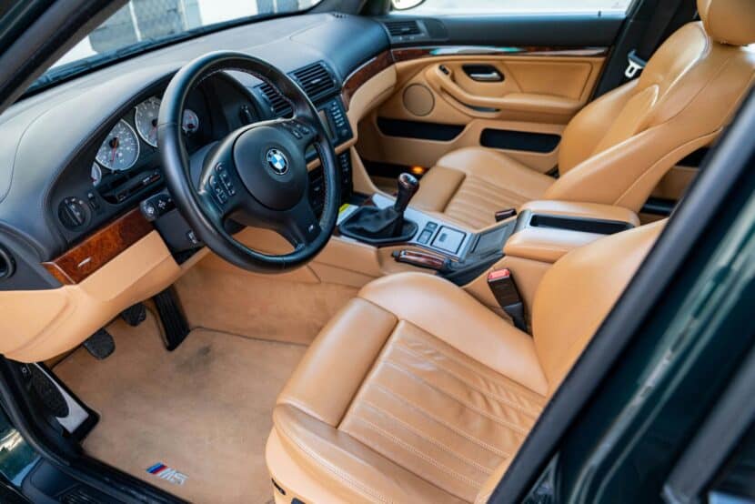 A rare E39 BMW M5 in mint condition, and with low miles, sold at an auction last week. While the final price has yet to be communicated, (likely over $100,000),let’s take a look at what makes this particular E39 M5 so exciting. This 25,000-mile E39 M5 was listed on the LBI Limited website featuring a unique color combination. This model stood out not just for its rarity but for its exquisite Oxford Green hue enveloping a Caramel Leather Interior, a combination graced upon only approximately 71 vehicles.